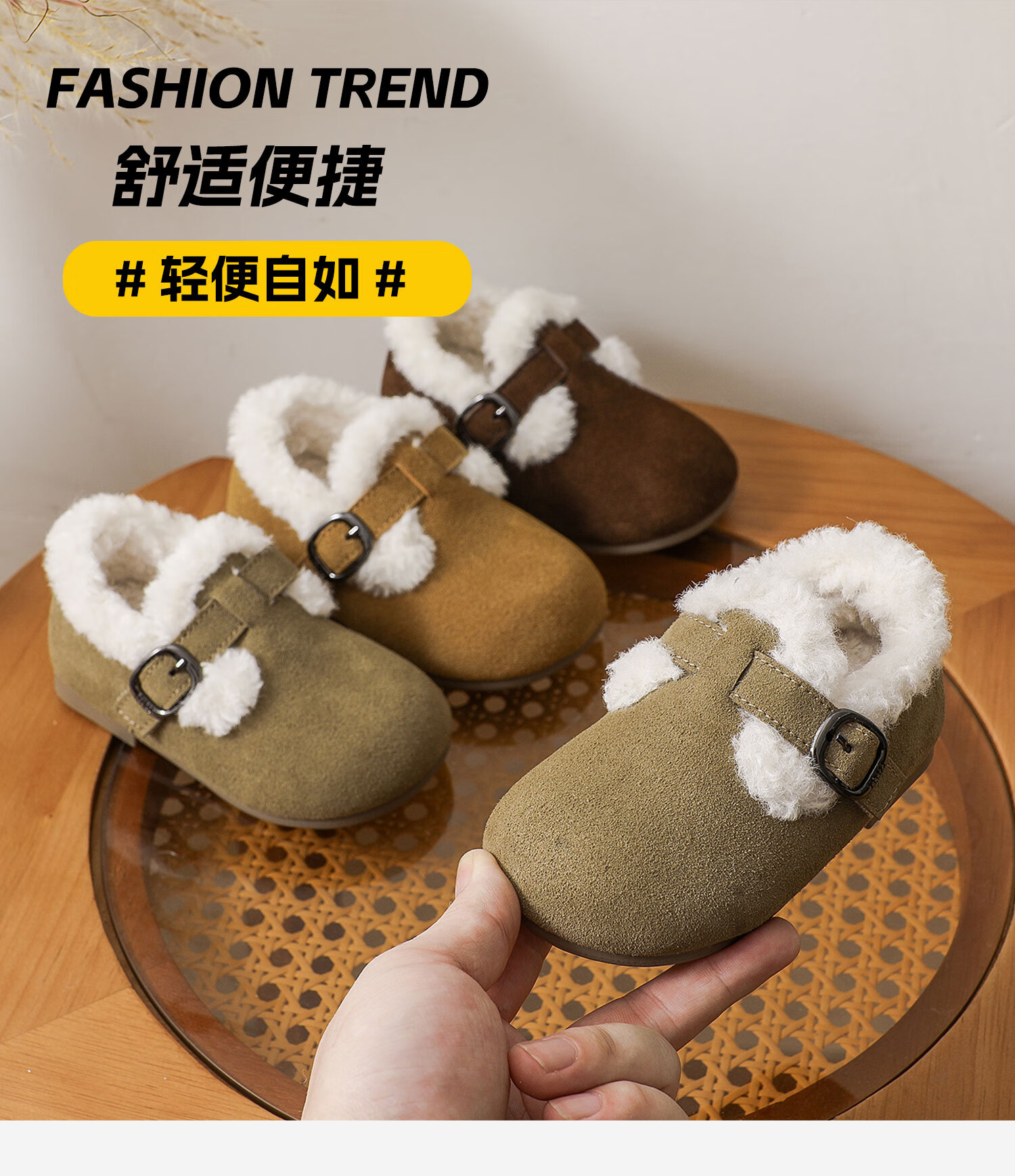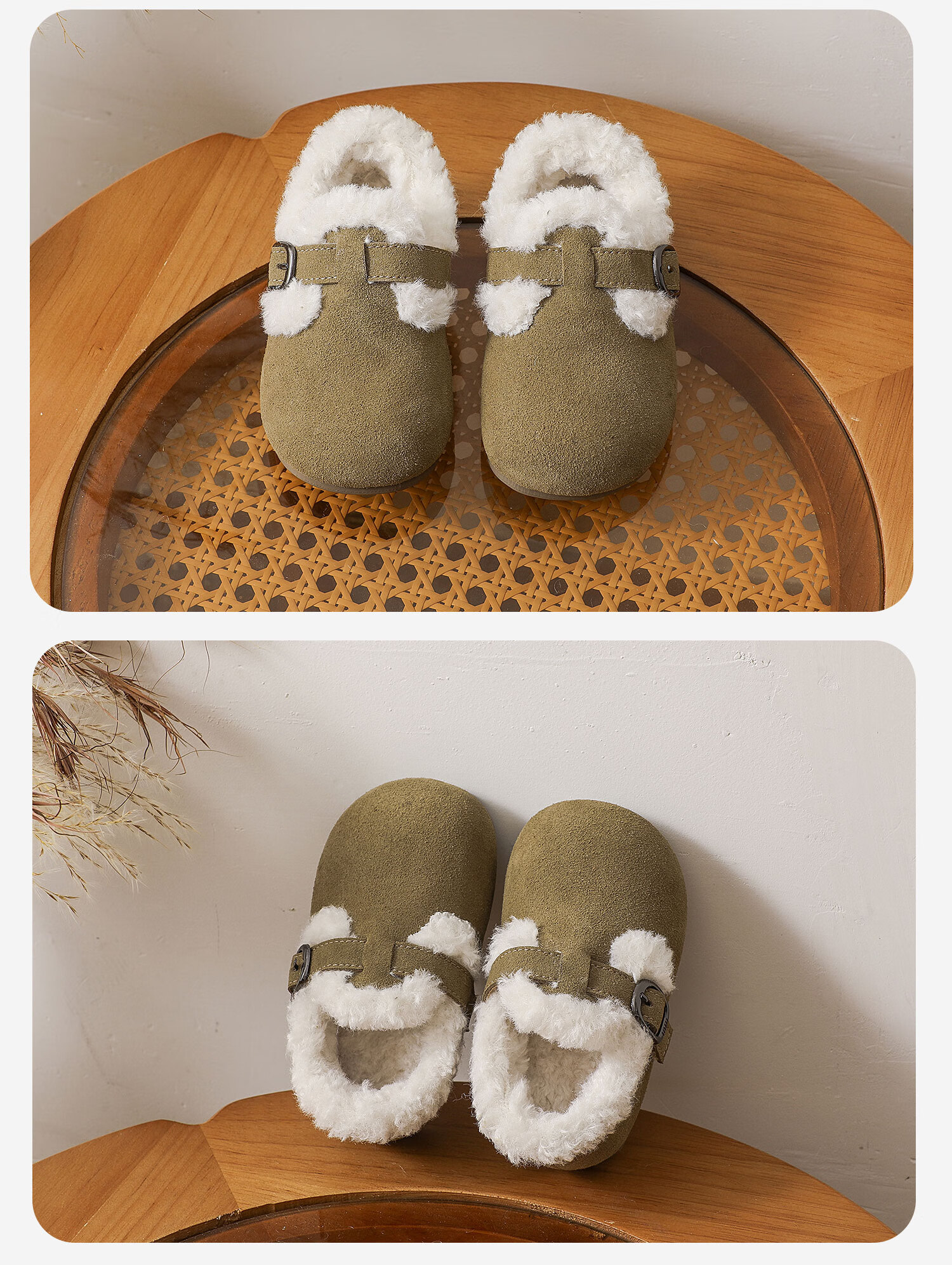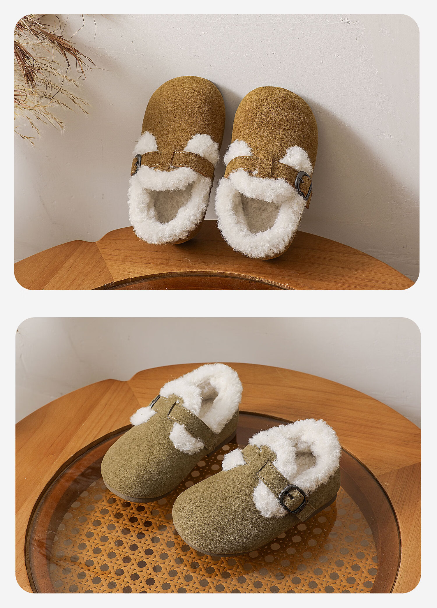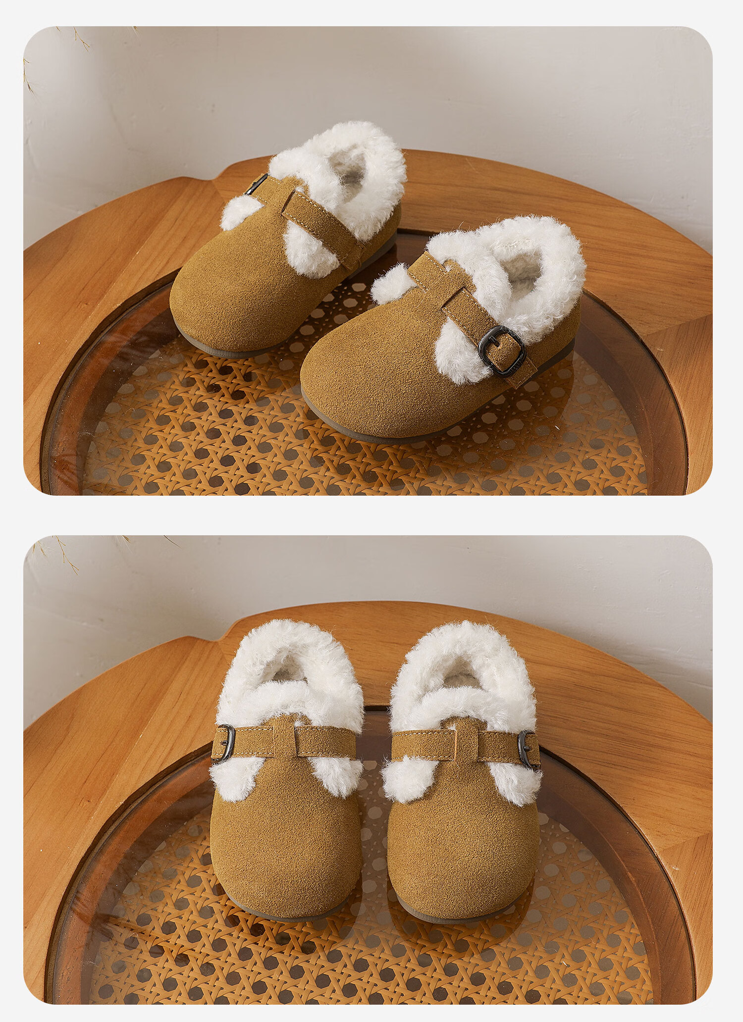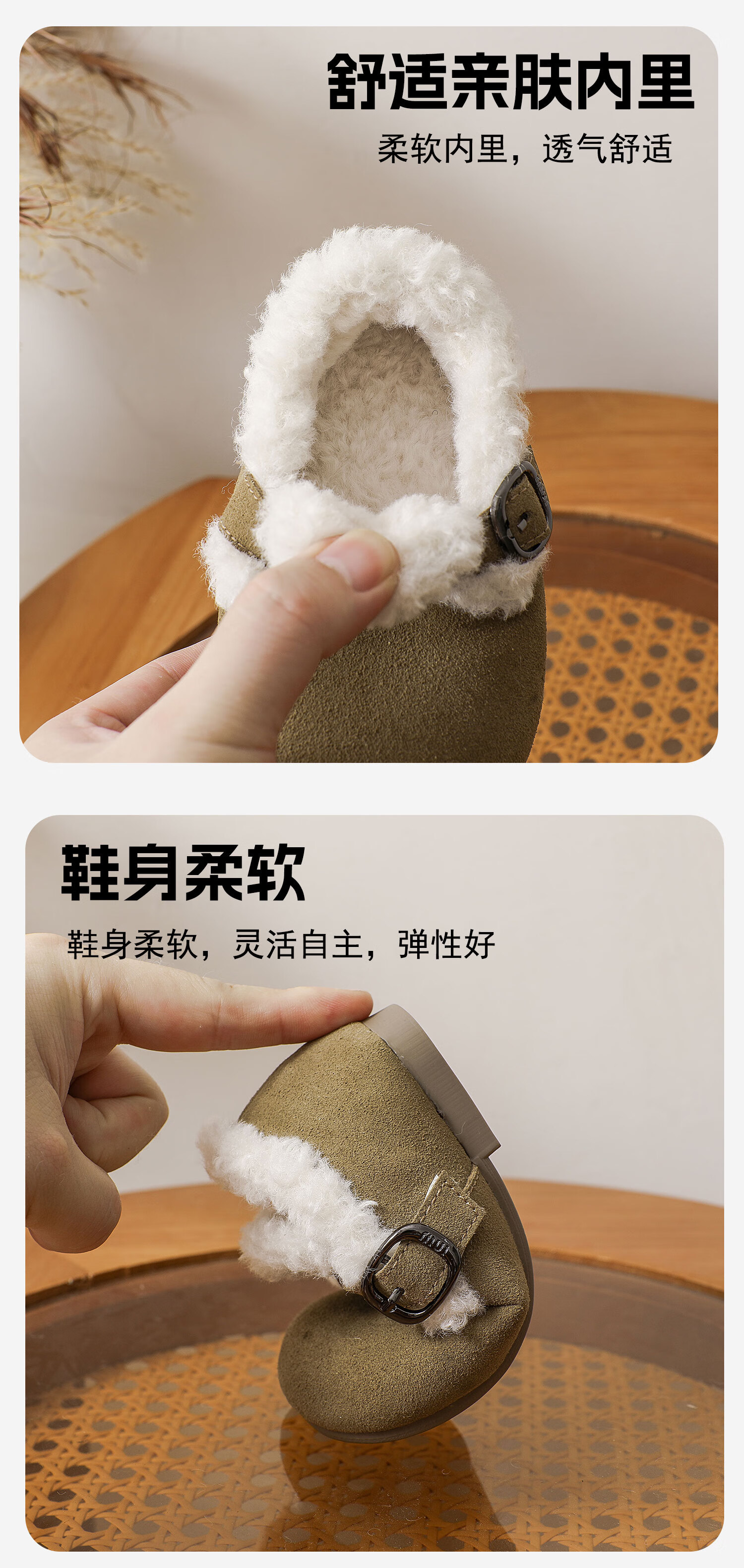Genuine leather cotton shoes Birkenstock shoes autumn and winter new style plus velvet bean shoes for boys and girls, baby suede soft-soled small leather shoes, brown single lining, size 30, inner length 18.5cm