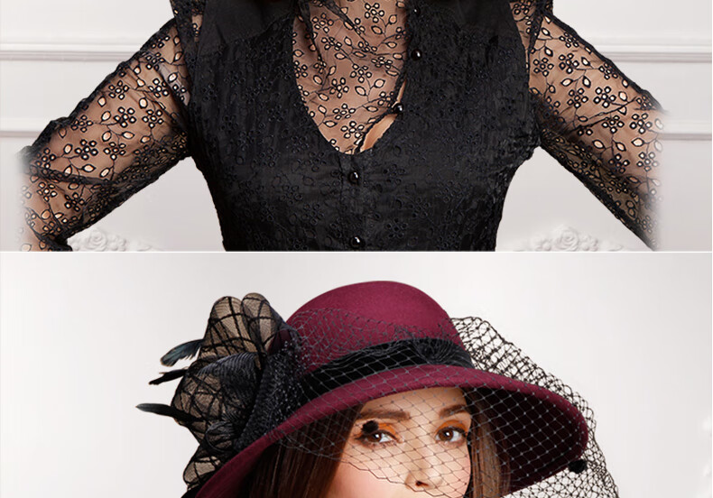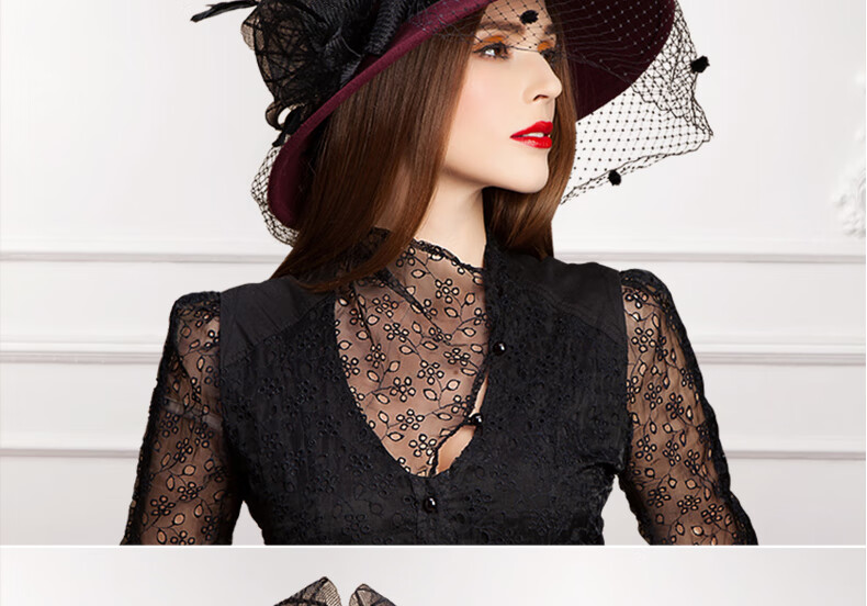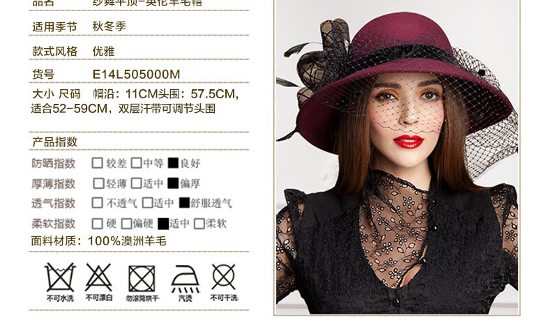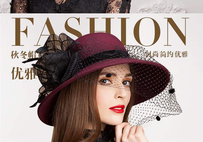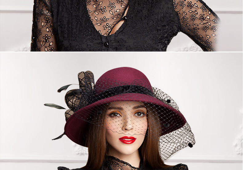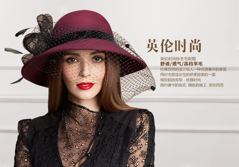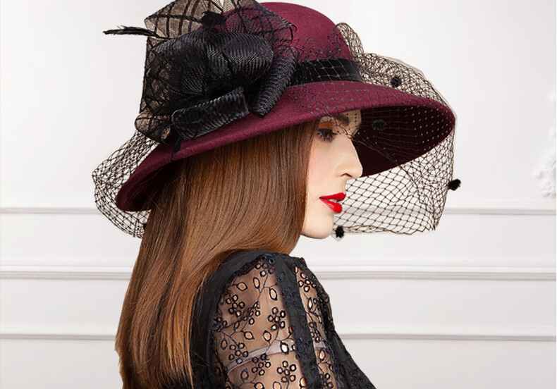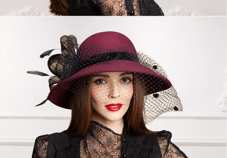EE Invierno Moda británica Sombrero de fieltro de lana para mujer Sombrero de lana de ala grande de malla informal versátil de invierno 5050 Borgoña ajustable (53-58 cm)
