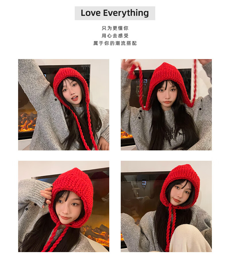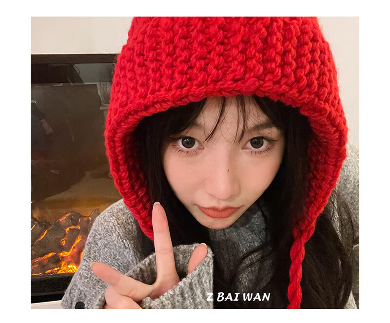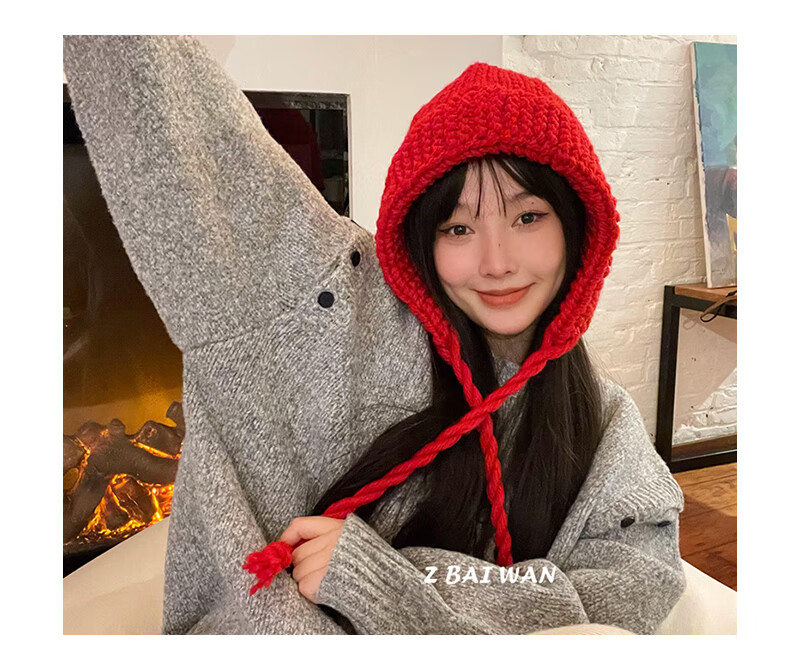 Shang Xuan Korean style autumn and winter Baotou hat women's warm knitted hat woolen hat fashionable face small Japanese trend big red one size