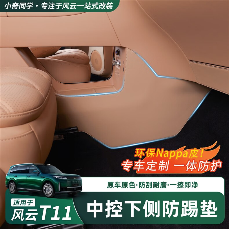 Dianbin is suitable for Chery Fengyun T11 anti-kick pads on both sides of the front row and under the center console. Anti-dirty protection car stickers. Interior supplies. Fengyun T11 amber brown nappa leather anti-kick pads on the lower side of the center console/2-piece set