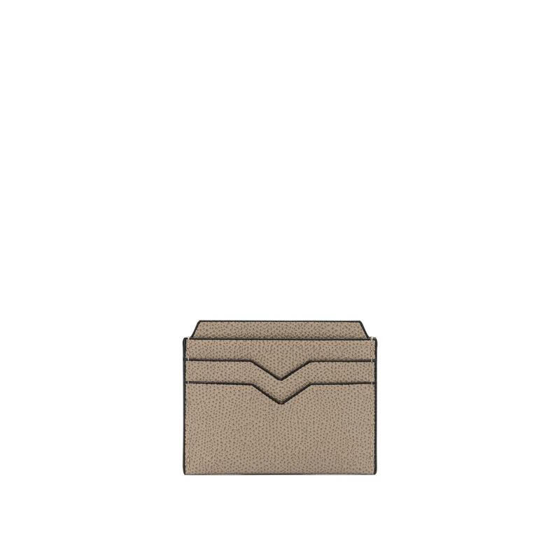 VALEXTRA women's card holder, four card slots, double middle pockets, anti-slip slots, portable storage, calfskin, beige textured leather, thin BEIGE UNI