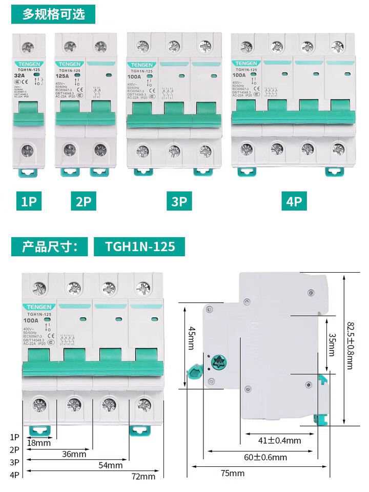 Tianzheng-125 small isolating switch main switch blade (not air switch) 2P4P32A63A125A 32A 1P