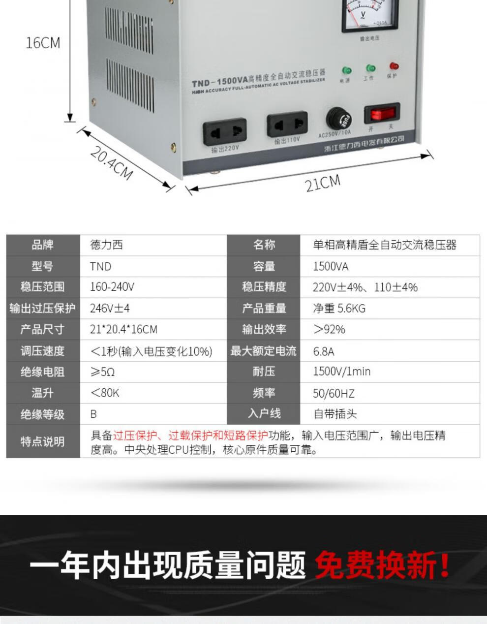 Delixi AC voltage regulator 1500w TND-1500W dedicated automatic voltage regulator