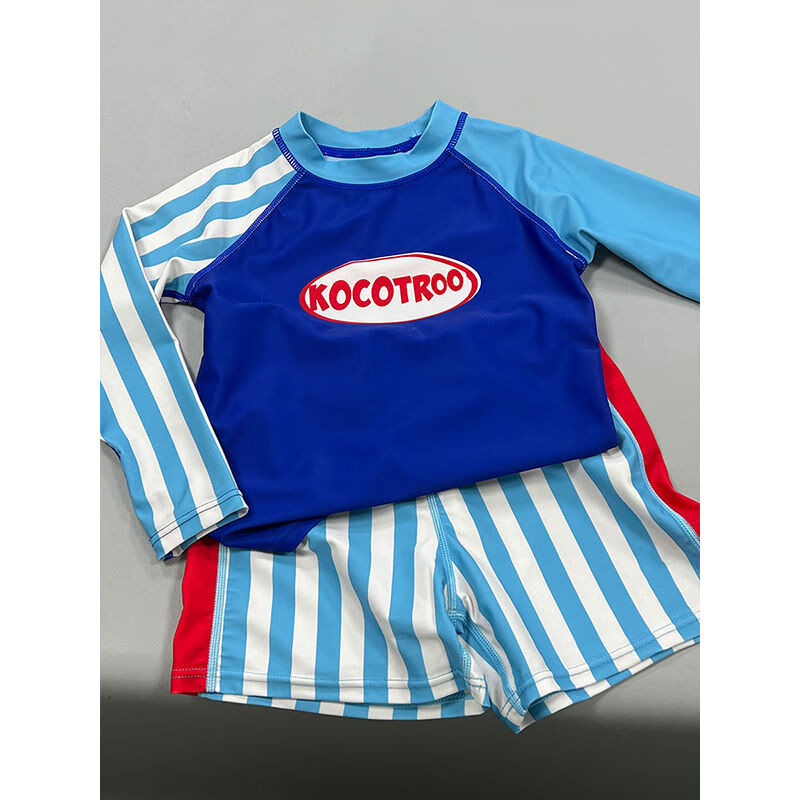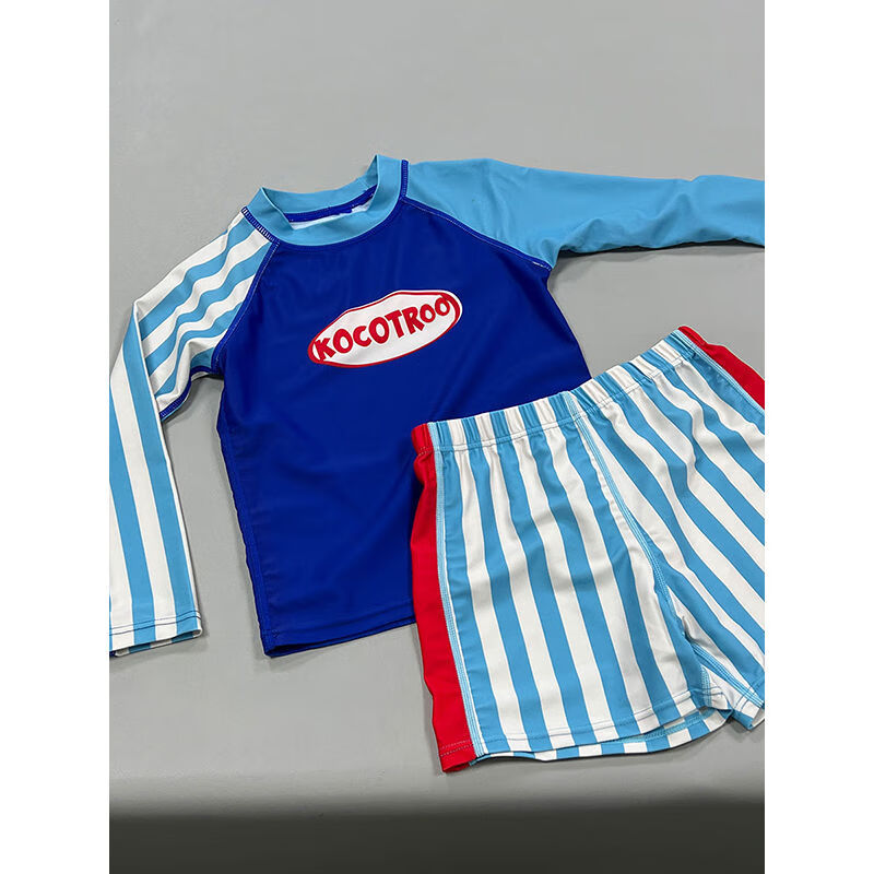 Zailu Boys' Swimsuit 2025 New Summer Medium and Large Children Split Sunscreen Quick-Drying Long-Sleeved Swimsuit Children's Upgraded Blue 100cm
