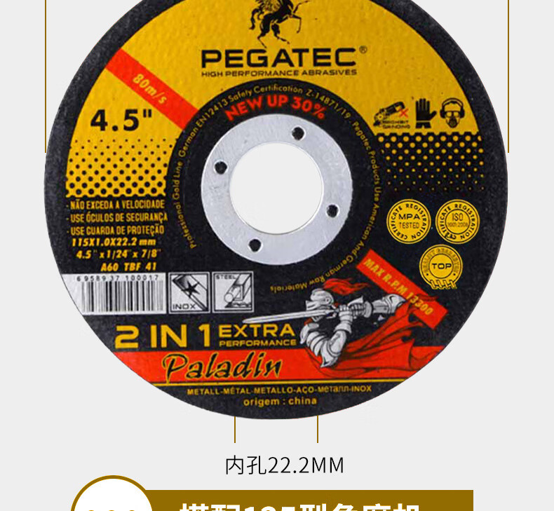 PEGATEC Continental 115 cutting blade foreign trade grade metal stainless steel cutting grinding wheel blade A60TBF grinding wheel saw blade 5 pieces/4.5 inch 115x1x22.2mm Continental
