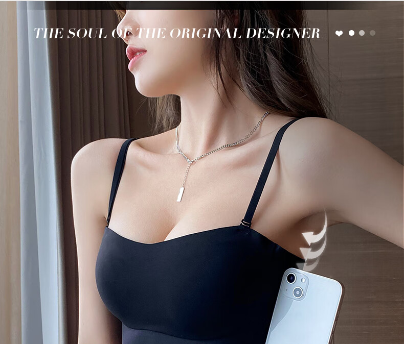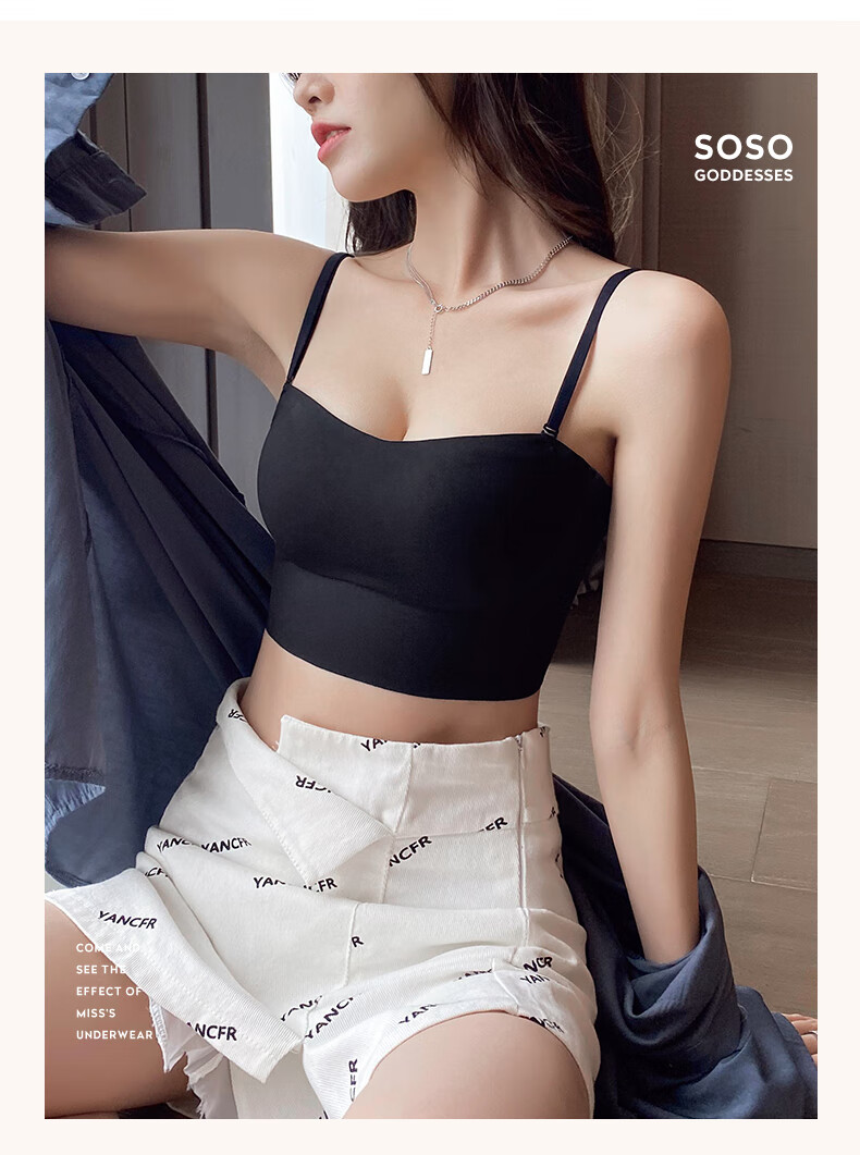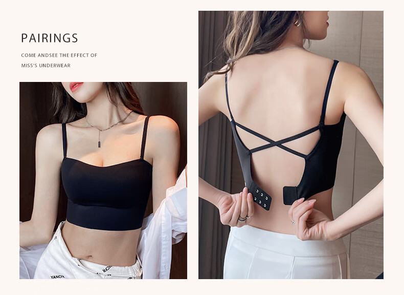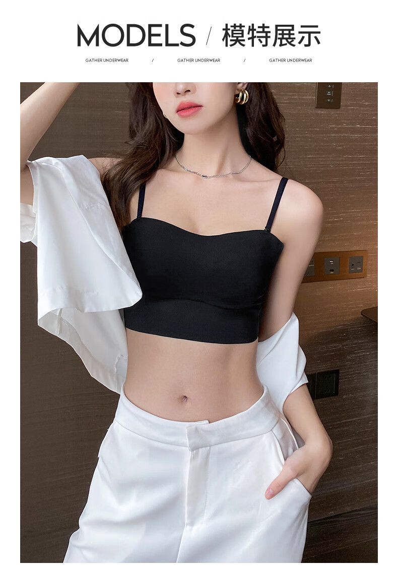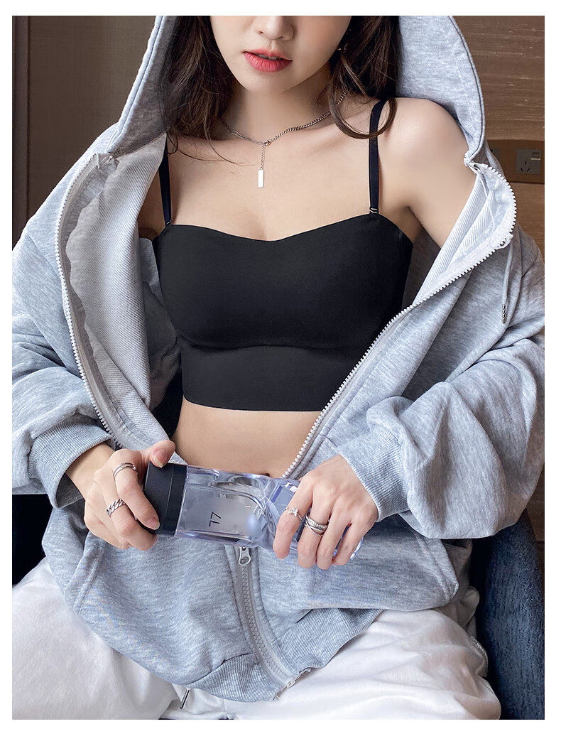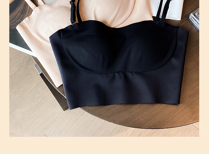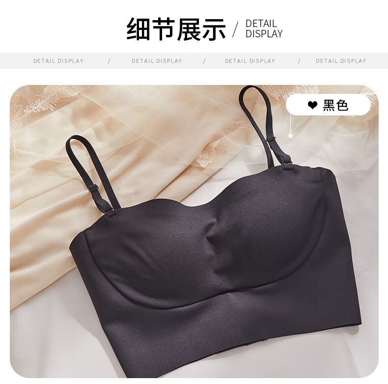 Duoqingmao (DUOQINGMAO) tube top bra for women with small breasts, push-up bra and beautiful back 2025 new one-piece camisole bra black black S (32_70ABC)