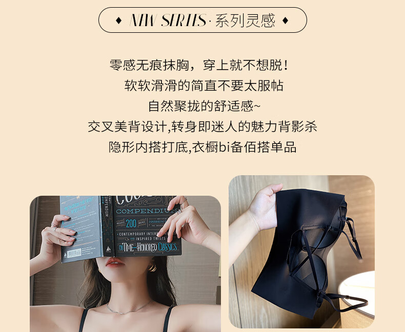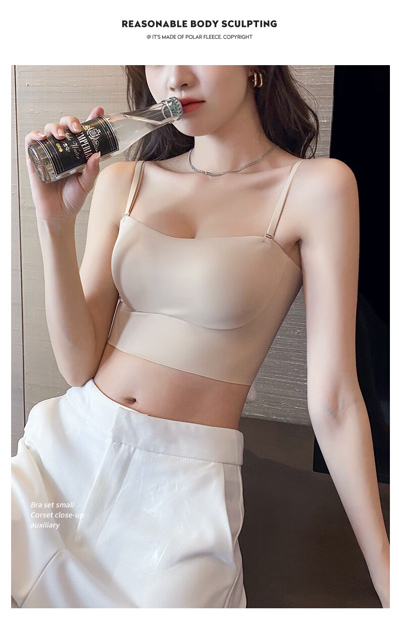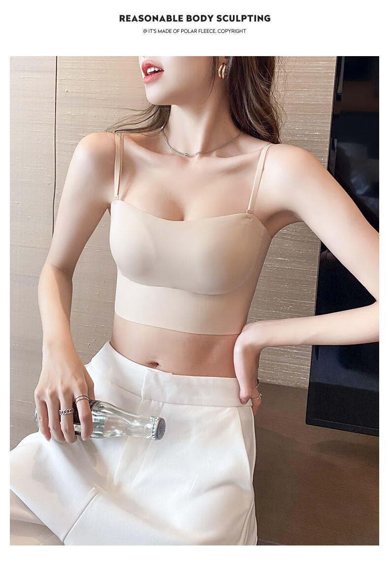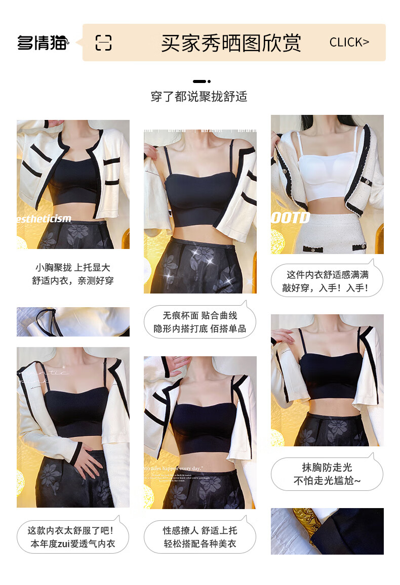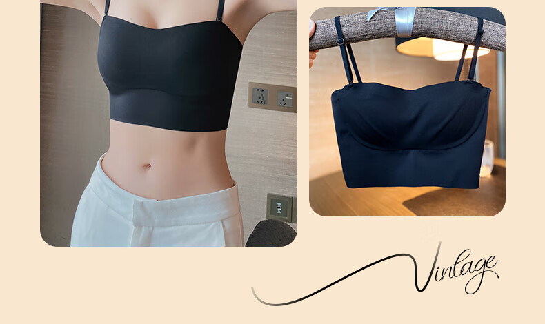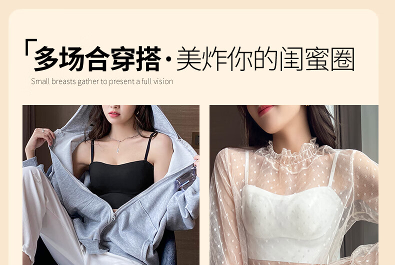 Duoqingmao (DUOQINGMAO) tube top bra for women with small breasts, push-up bra and beautiful back 2025 new one-piece camisole bra black black S (32_70ABC)