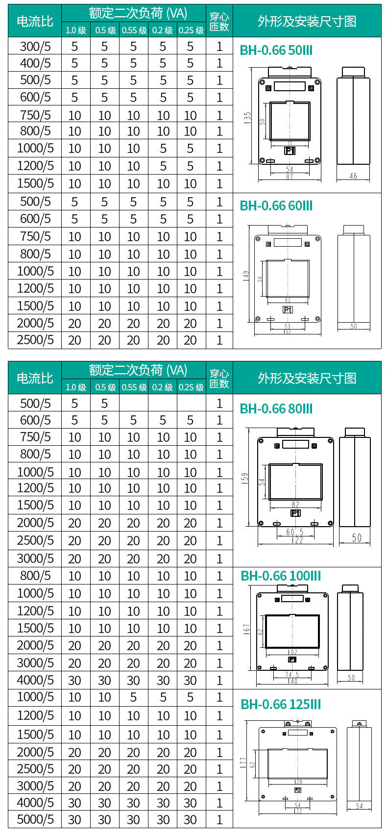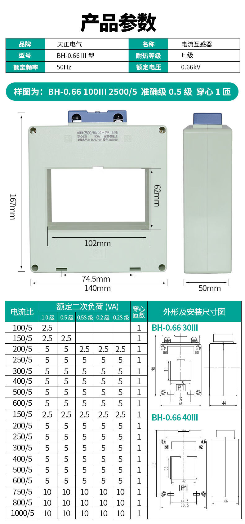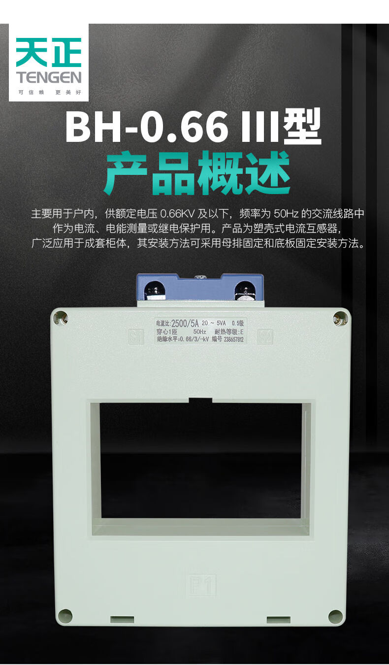 Tianzheng current transformer BH-0.66 three-row III three-phase 380V AC core-type low-voltage current transformer BH-0.66 125III 5000/5 016
