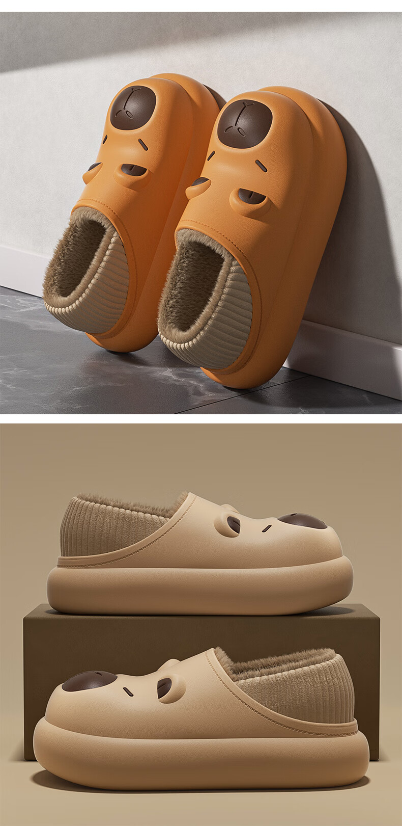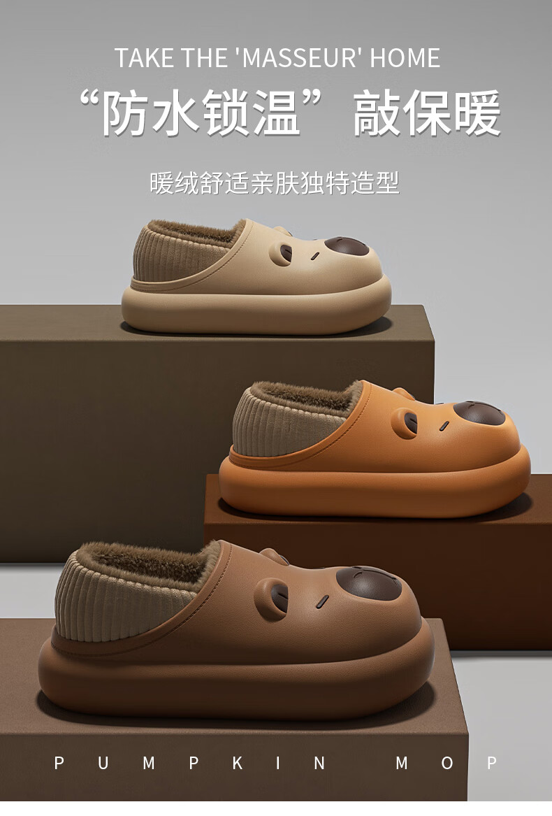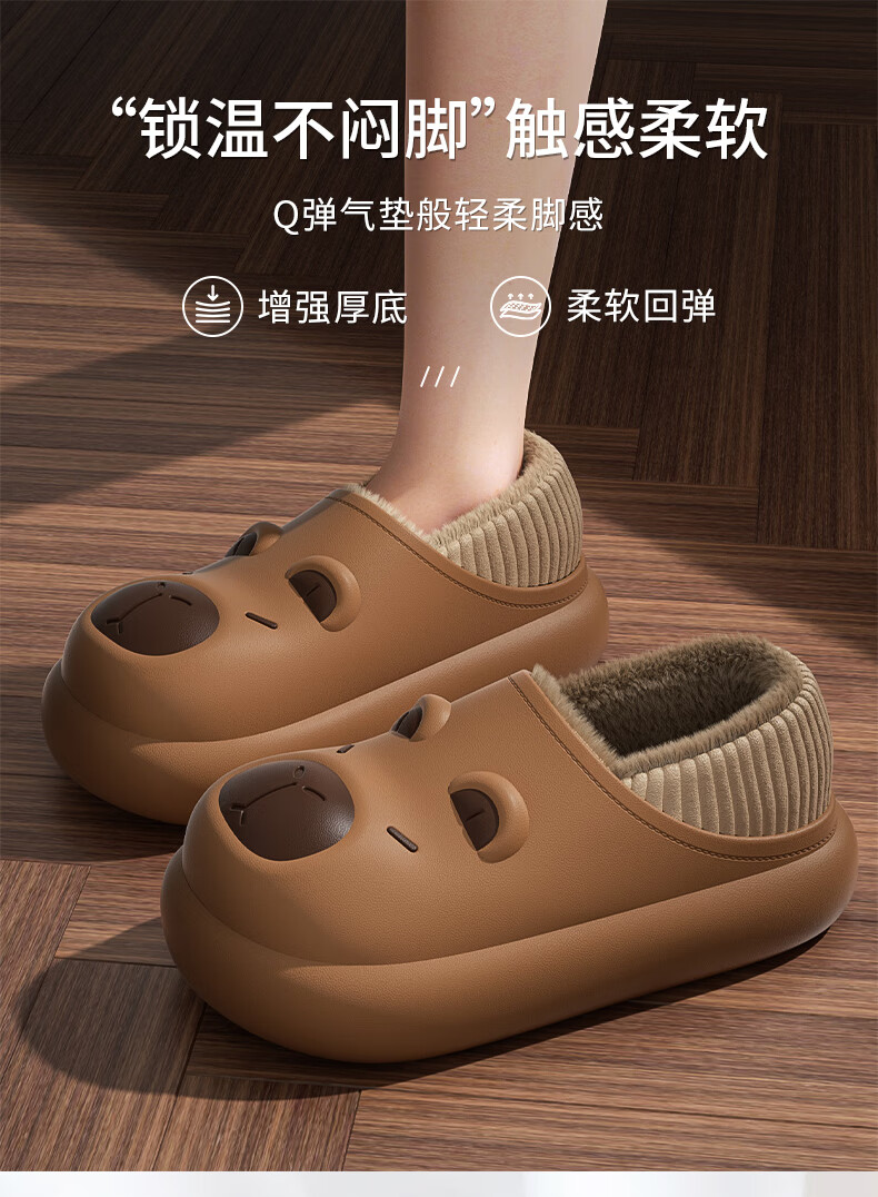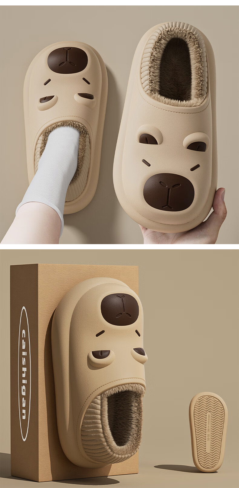 Shiganuka Pibala Children's Cotton Slippers for Boys 2025 New Season Waterproof Outerwear Bag Heel Thick-soled Cute Cotton Shoes for Women Brown Kapibala Warm and Waterproof 30 _31_ Suitable for sizes 29-30
