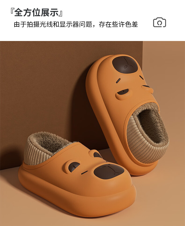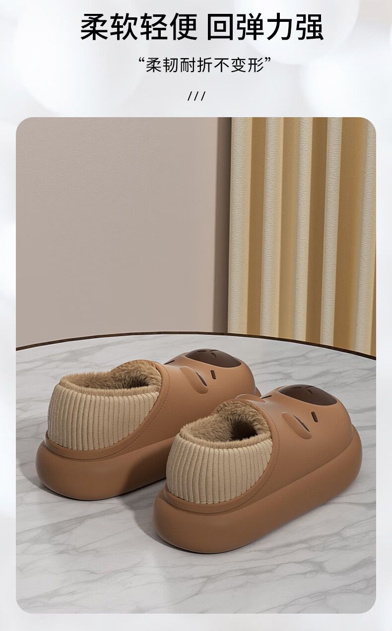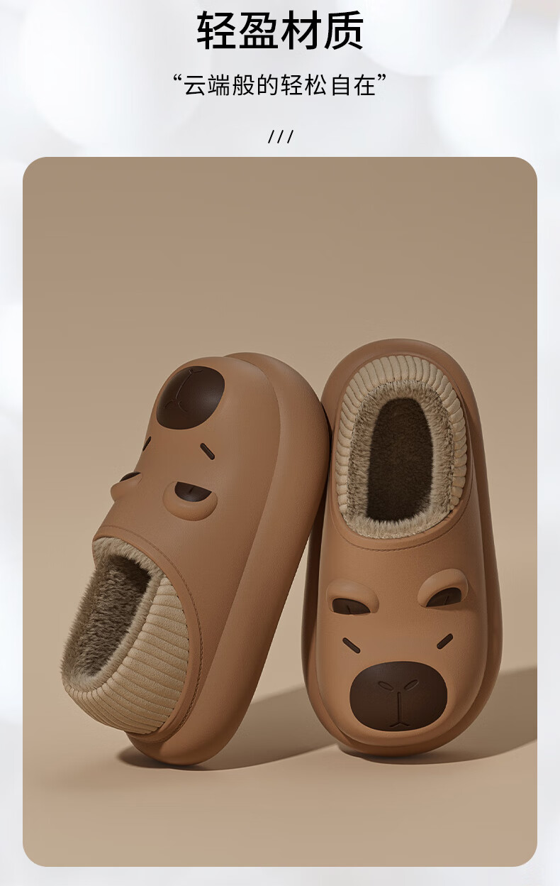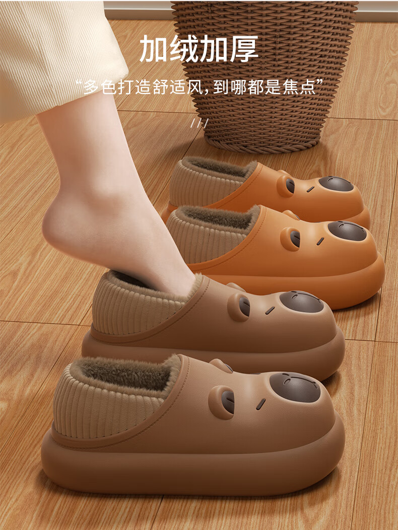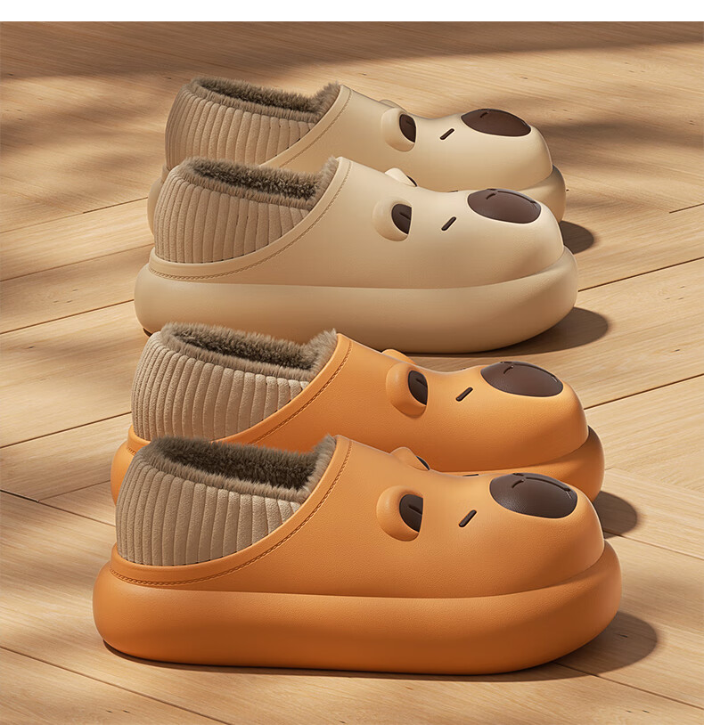 Shiganuka Pibala Children's Cotton Slippers for Boys 2025 New Season Waterproof Outerwear Bag Heel Thick-soled Cute Cotton Shoes for Women Brown Kapibala Warm and Waterproof 30 _31_ Suitable for sizes 29-30