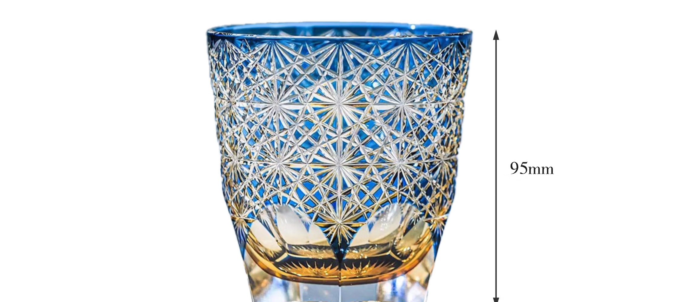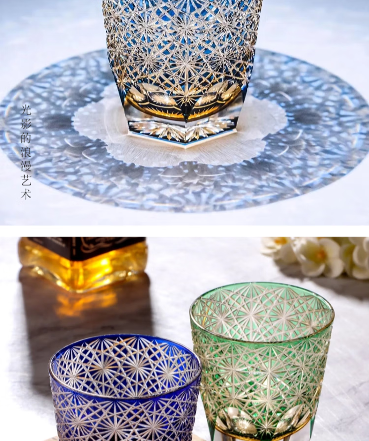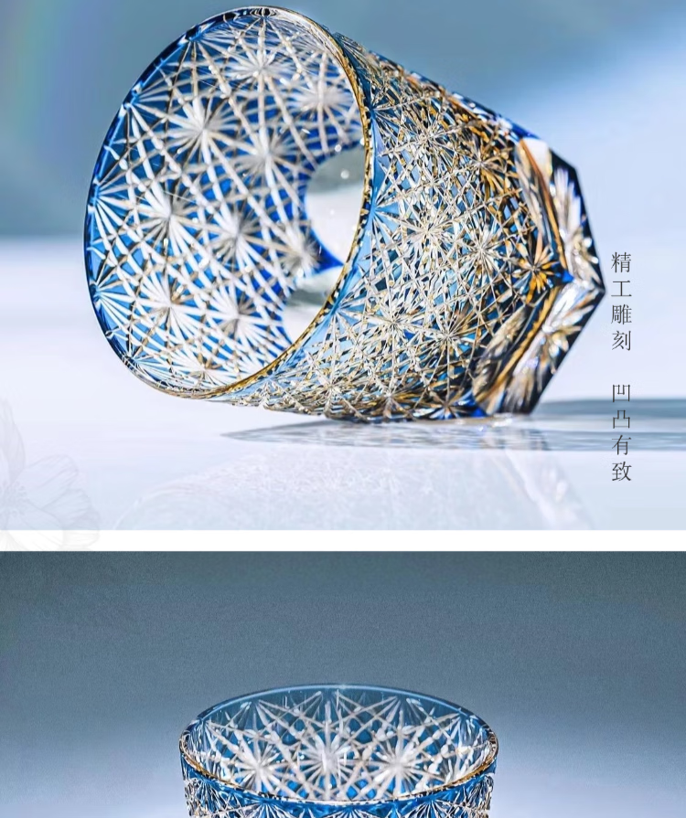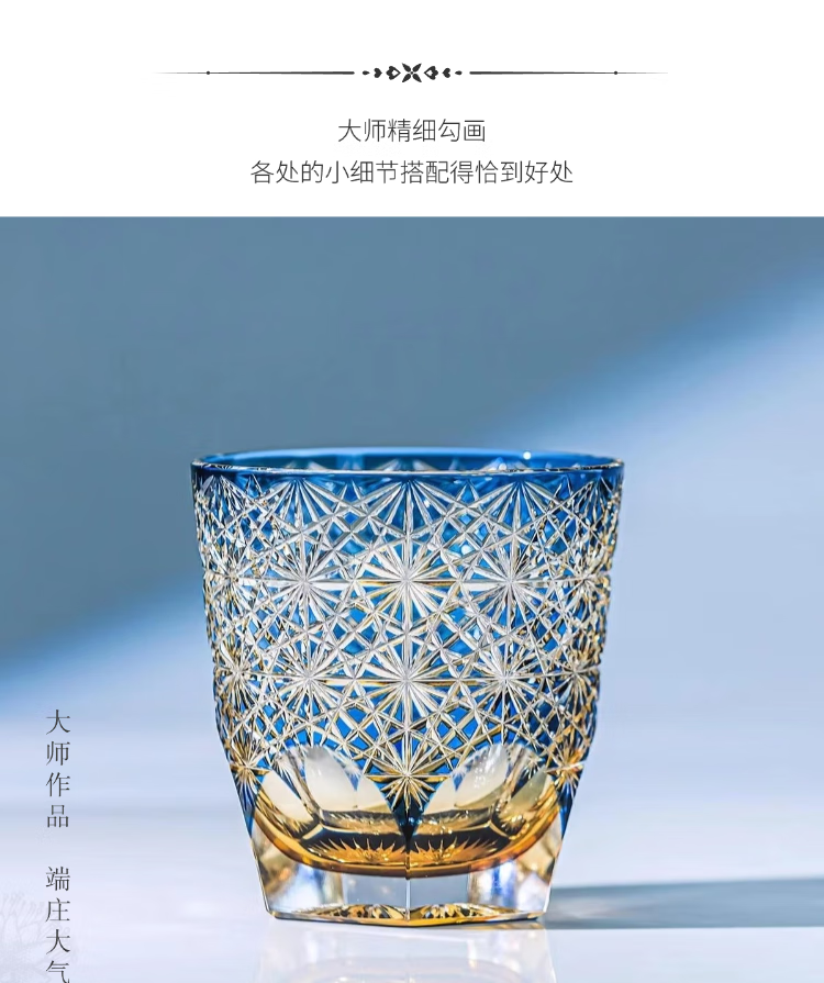 AURA LIFE Edo Kiriko Blue Daisy Crystal Glass High-end Hand-carved Whiskey Cup and Wine Gift Cup Big Blue Daisy Popular Style on the Internet Gift Box 320ml 1 piece