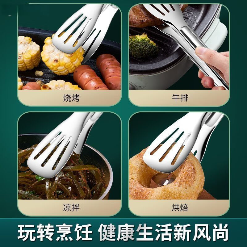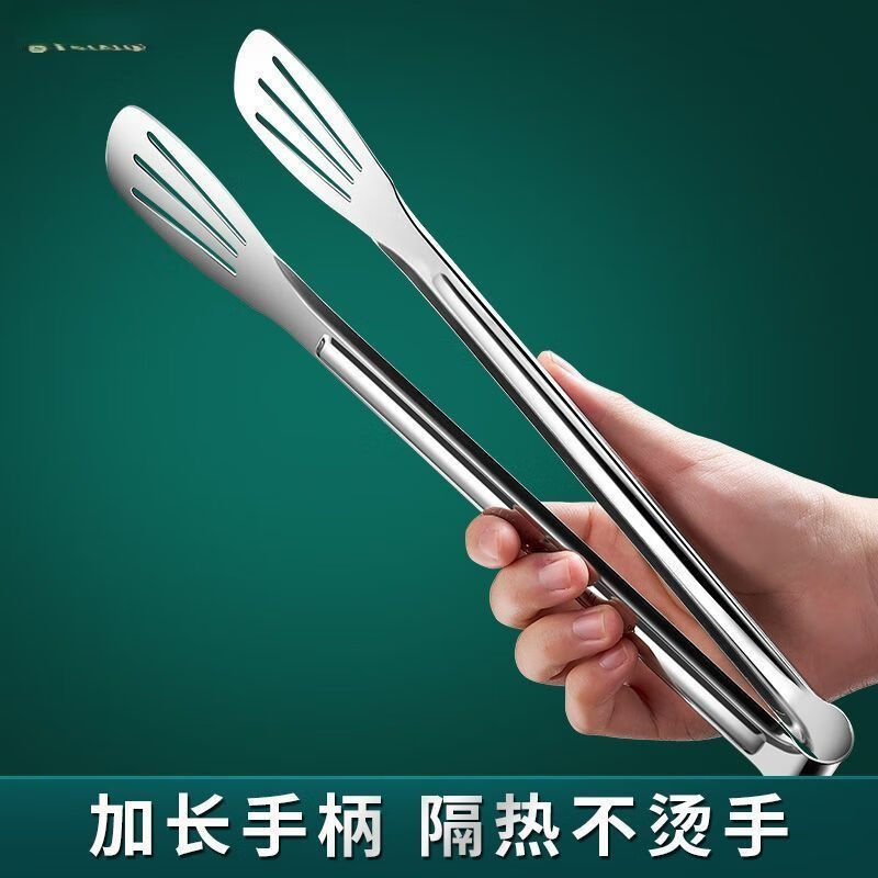 Runhuanian thickened 316 stainless steel three-line food tongs kitchen food tongs baking bread tongs vegetable tongs steak barbecue tongs 201 antibacterial three-line pure steel 15cm