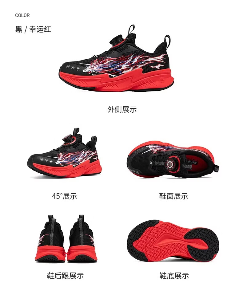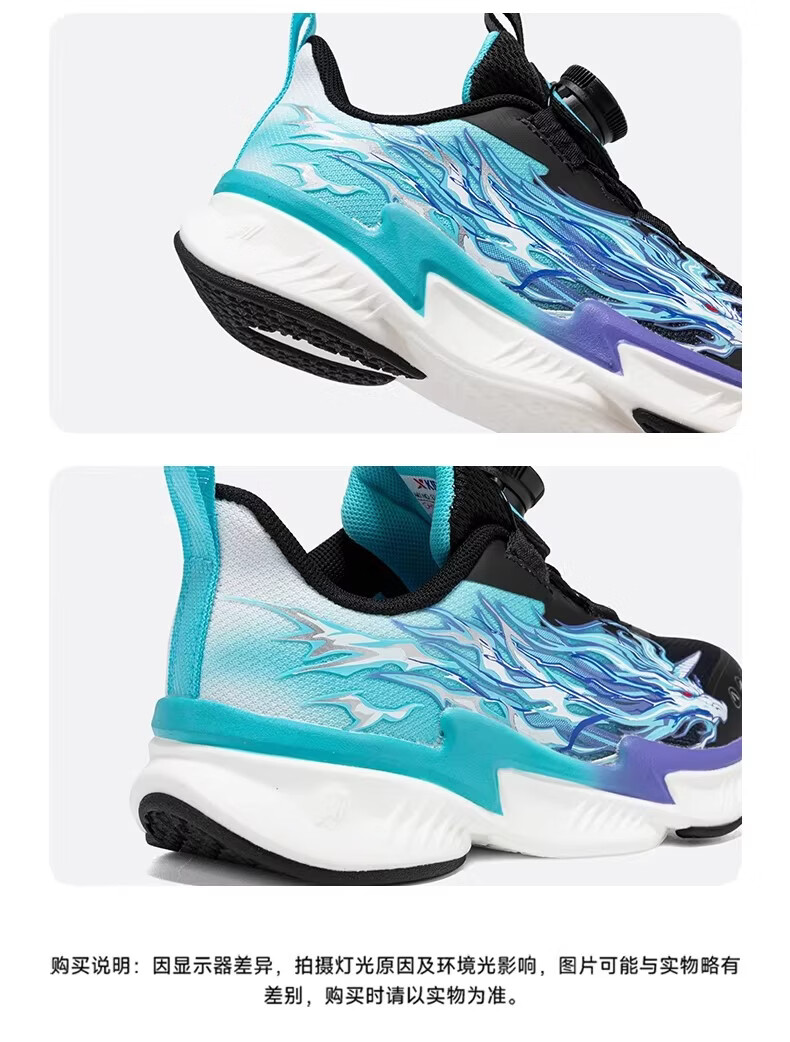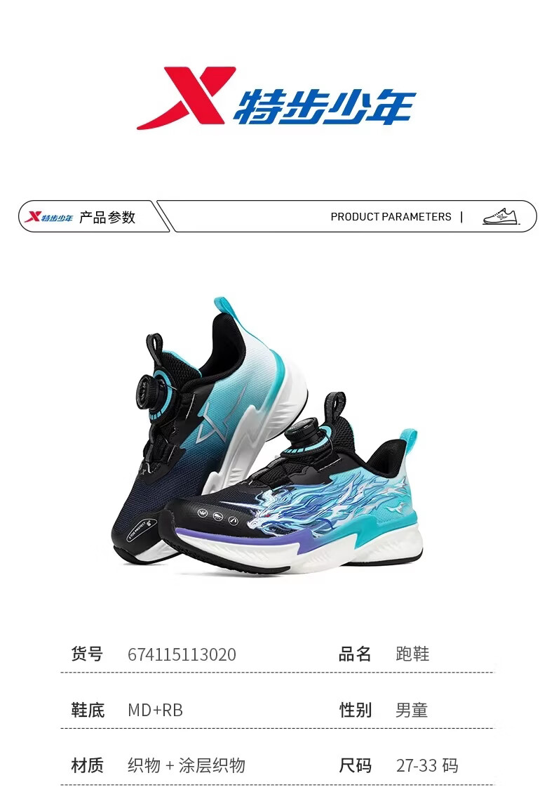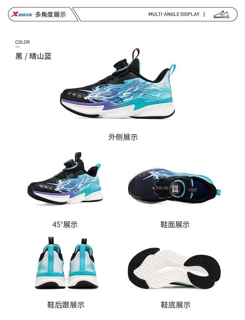 Xtep Children's Ao 2.0 Running Shoes for Boys 2026 Spring New Mesh Leather Cushioning Sports Shoes 674115113020 Black/Sunny Mountain Blue 32