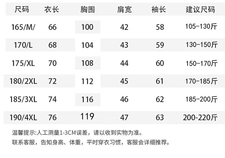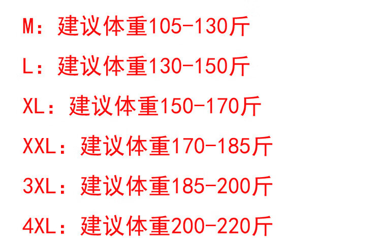 China (cm) 165 / 88-90 170 / 96-98 175 / 108-110 180 / 118-122 185 / 126-130