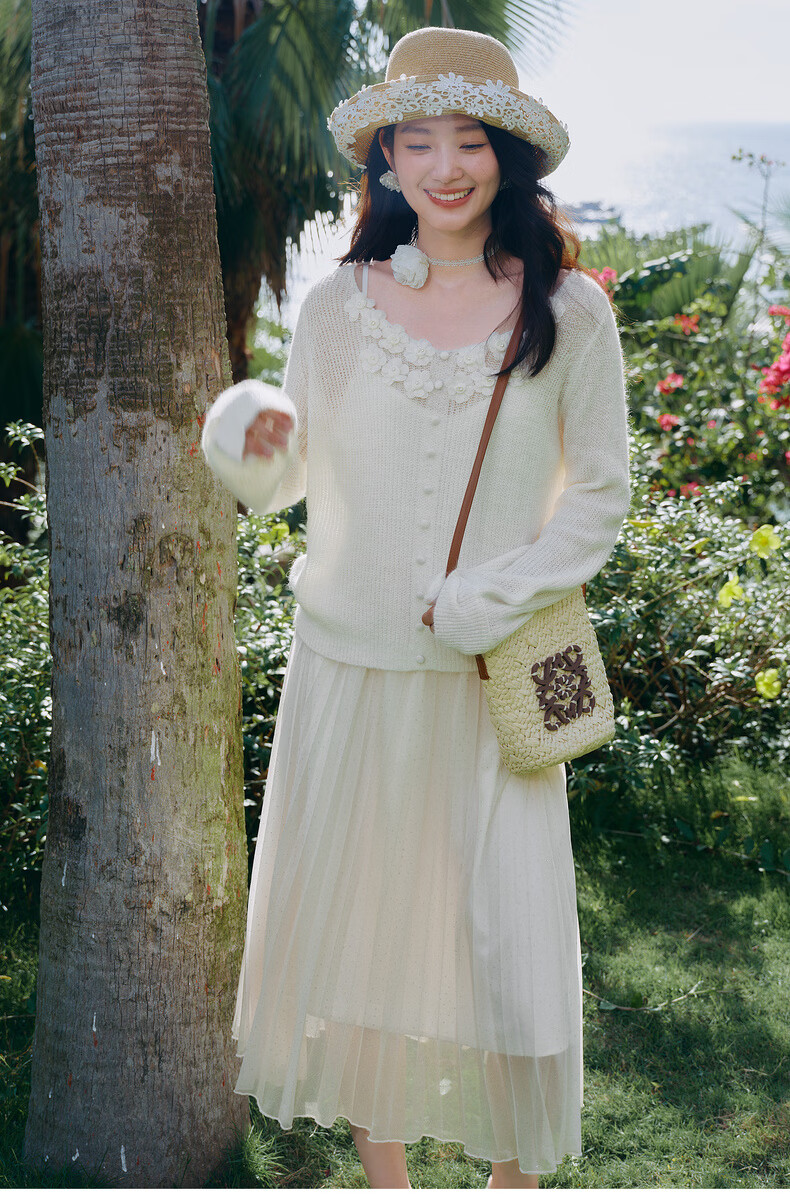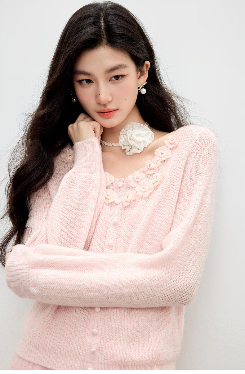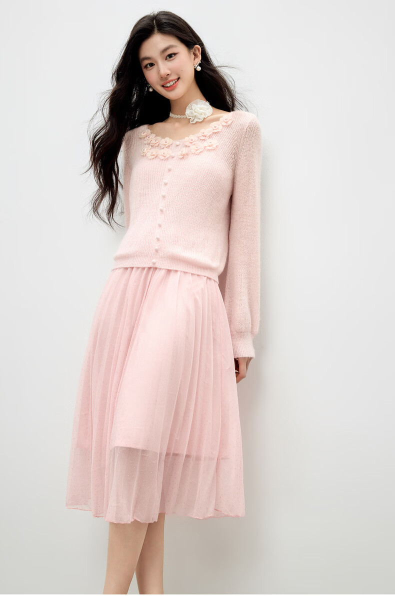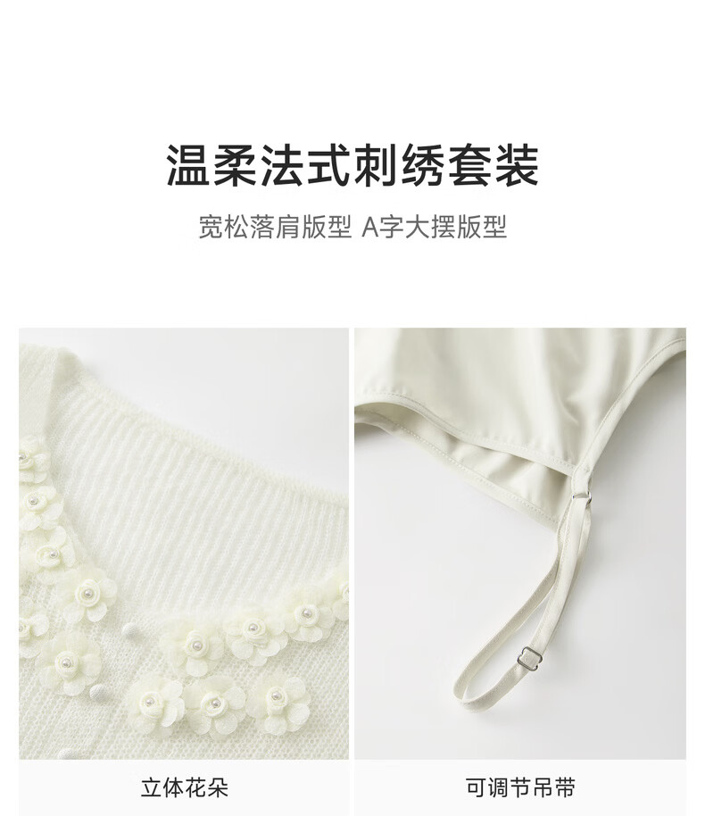 Qiushui Yiren Gentle French Embroidery Suit 2026 Spring New Lazy Cardigan Suspender Skirt Two-piece Set Light Pink XL