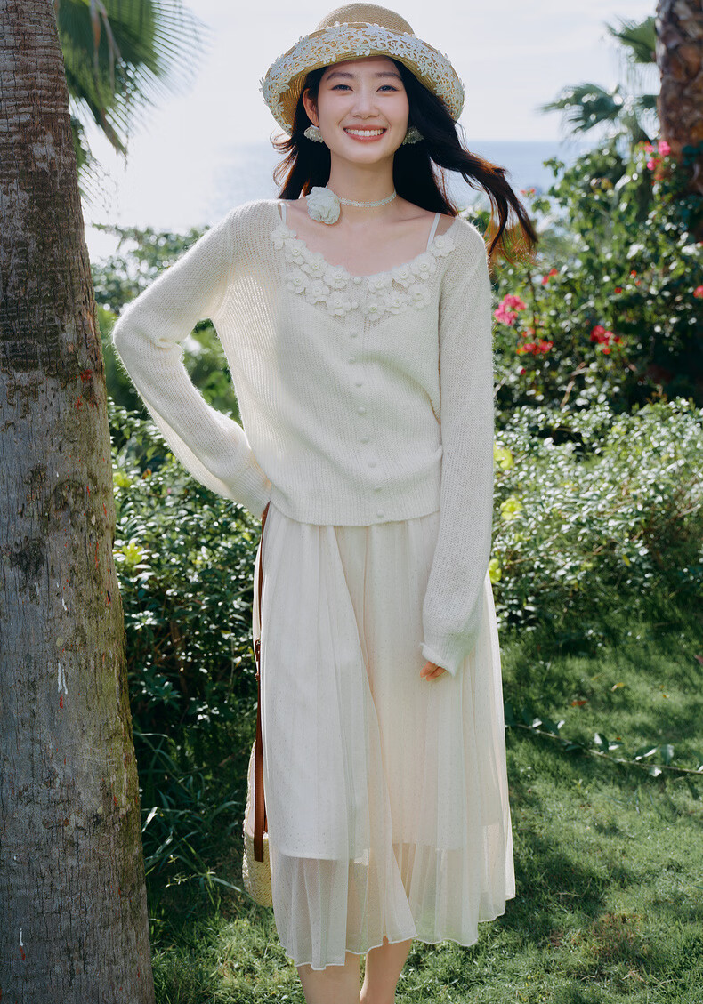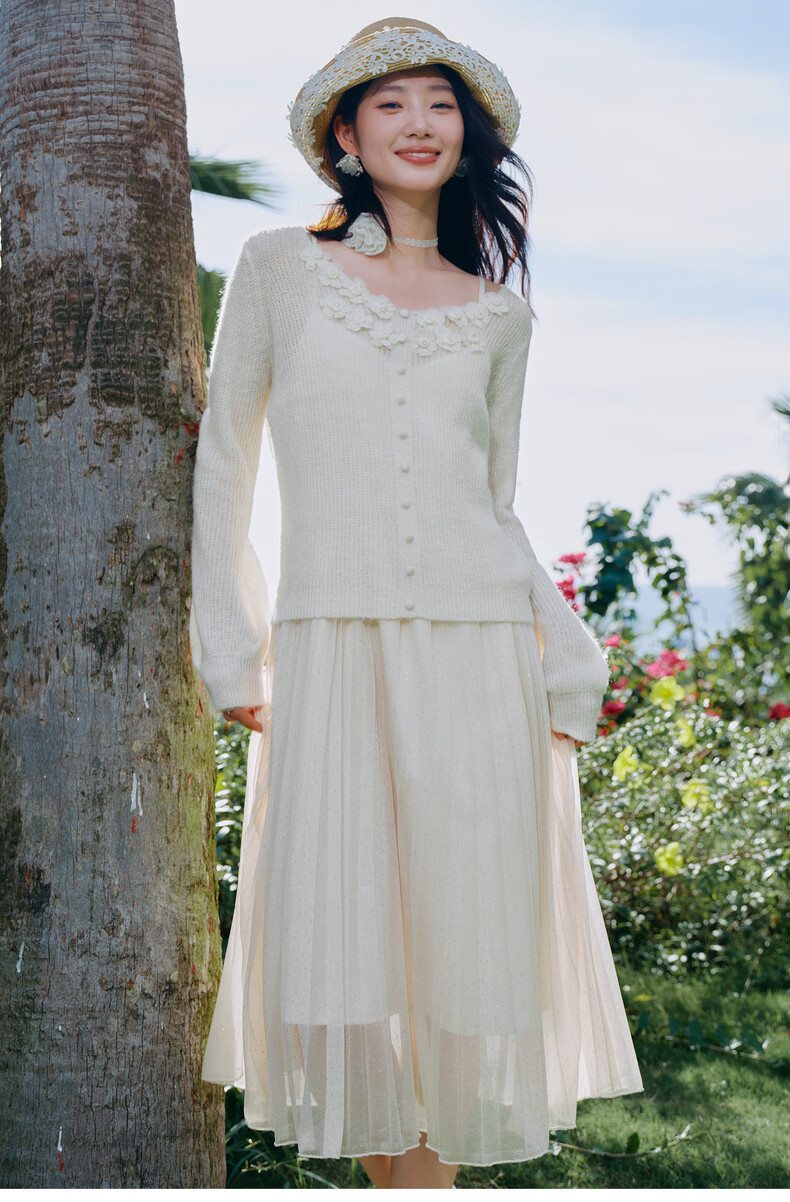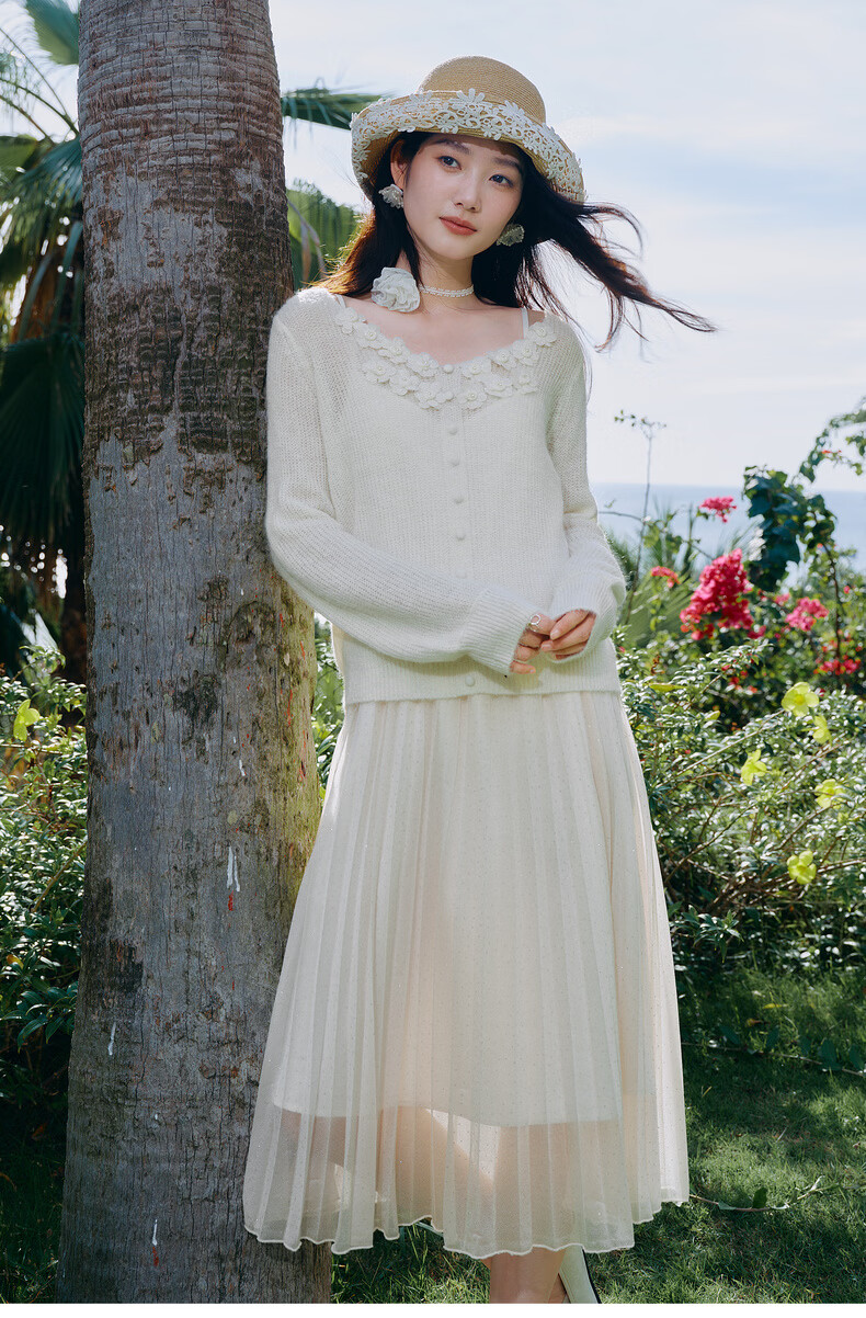 Qiushui Yiren Gentle French Embroidery Suit 2026 Spring New Lazy Cardigan Suspender Skirt Two-piece Set Light Pink XL