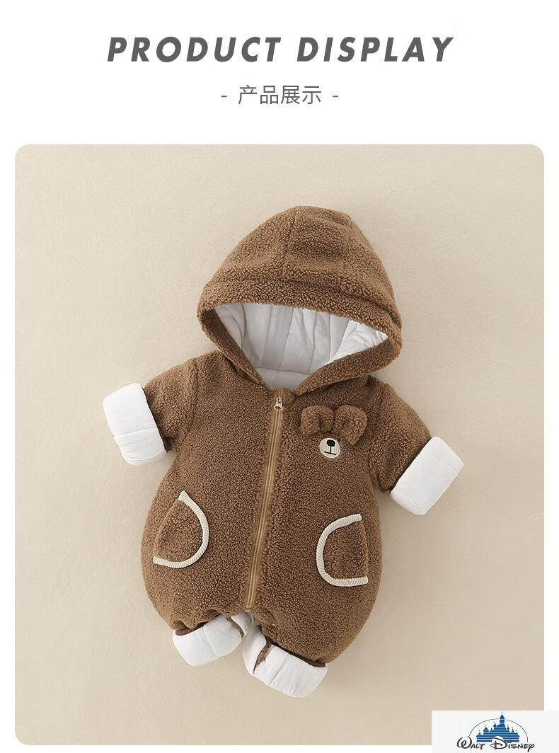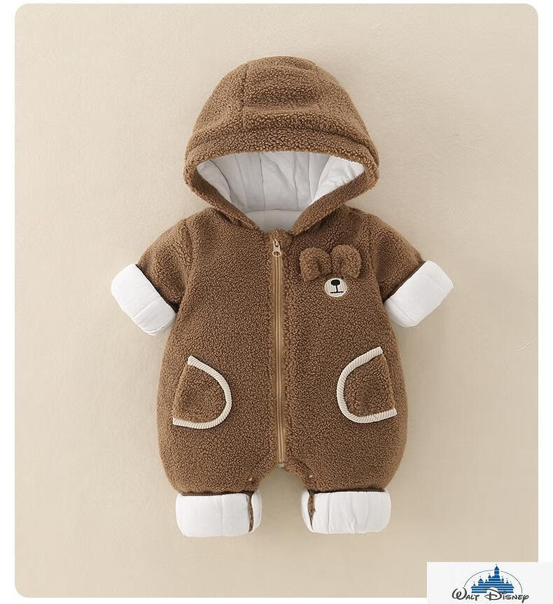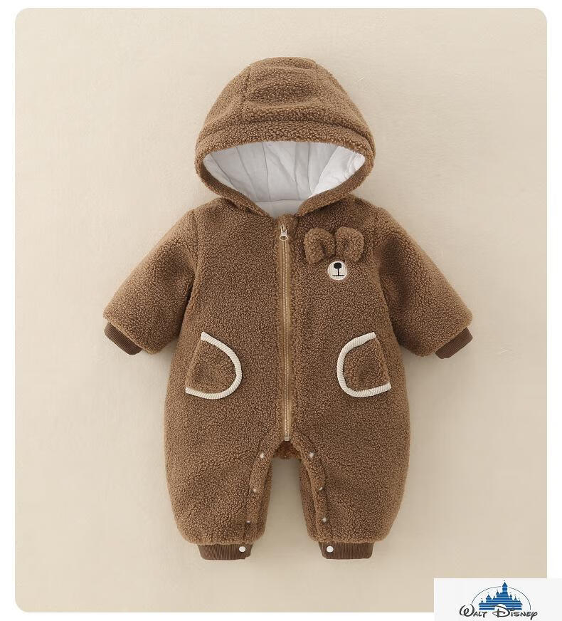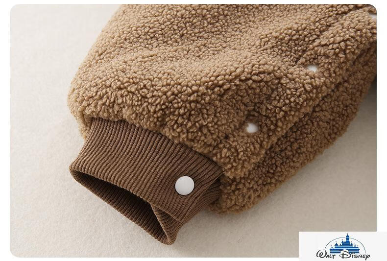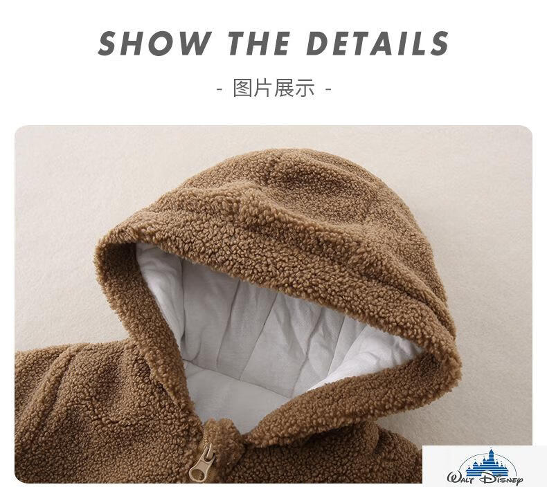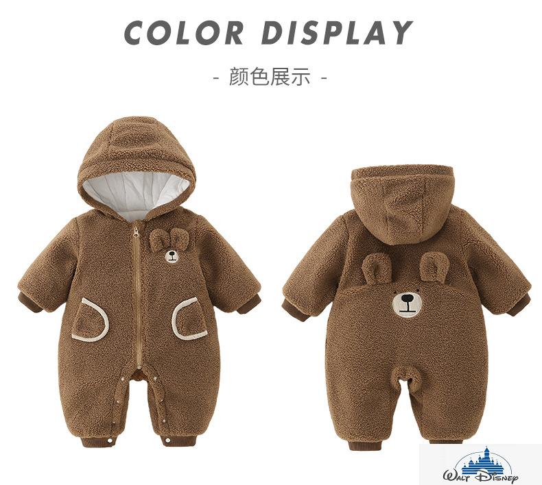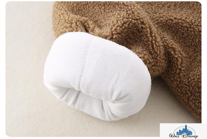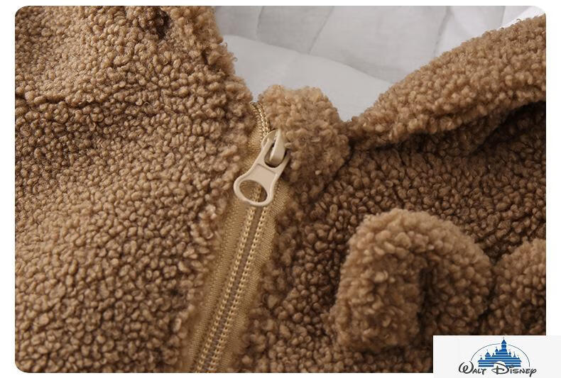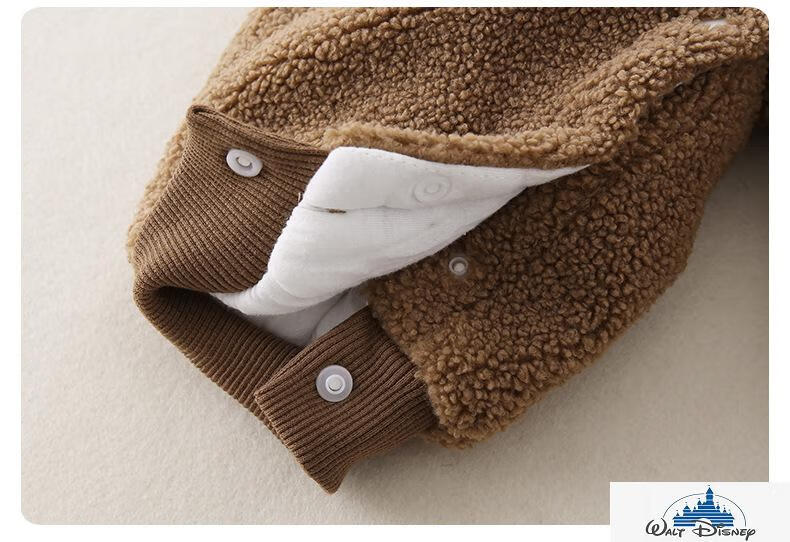 Disney (Disney) baby autumn and winter rompers for boys, thickened lamb wool clothes, baby thin cotton outing clothes, hooded open crotch jumpsuit, khaki color 36cm 66