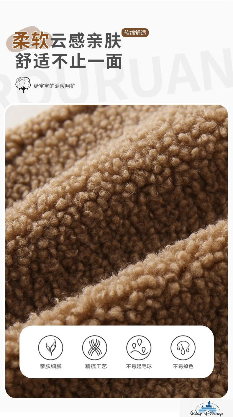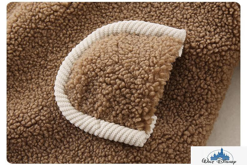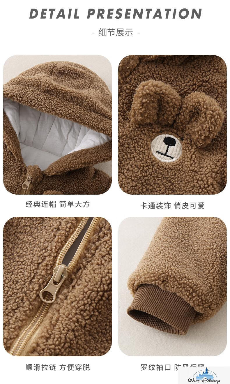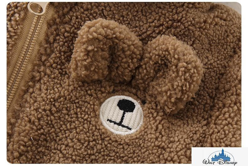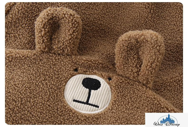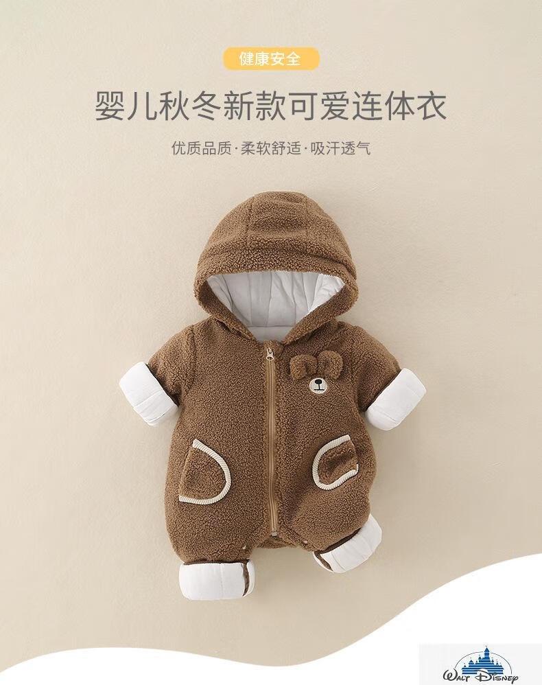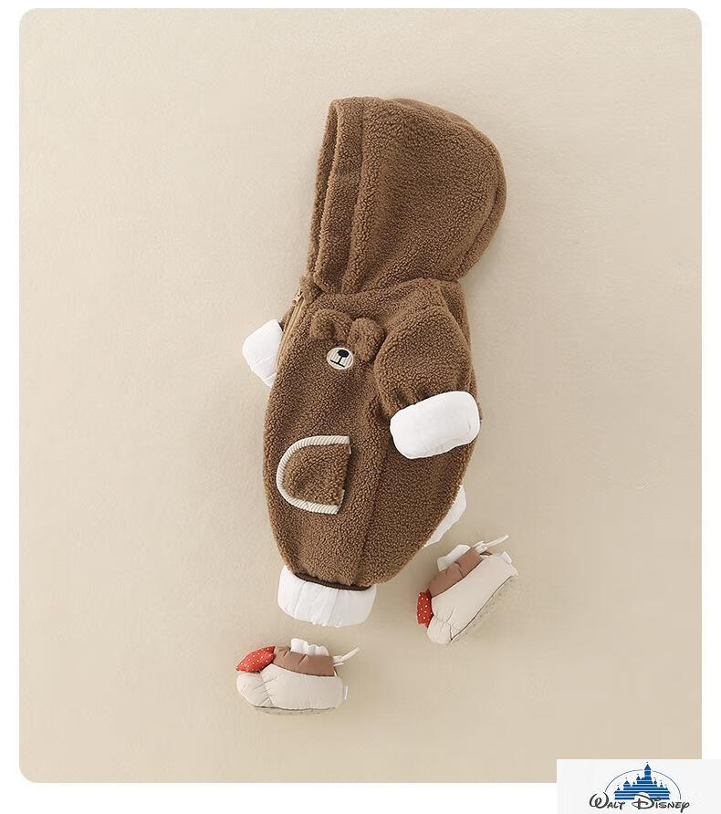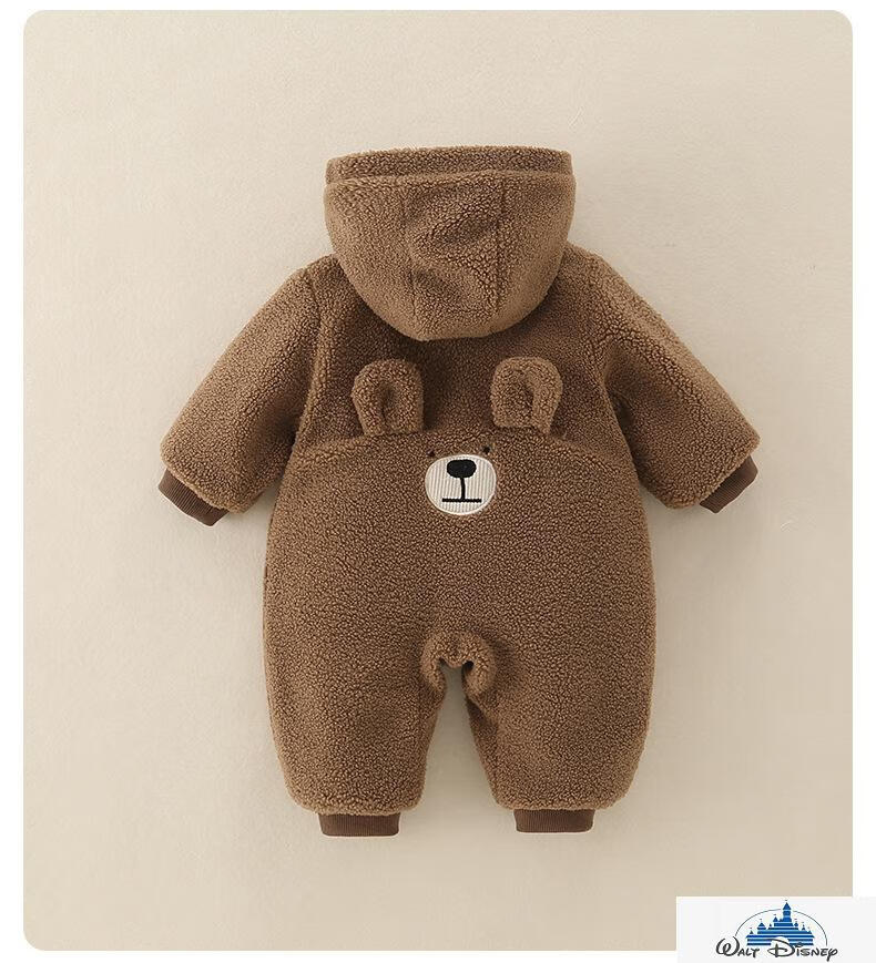 Disney (Disney) baby autumn and winter rompers for boys, thickened lamb wool clothes, baby thin cotton outing clothes, hooded open crotch jumpsuit, khaki color 36cm 66