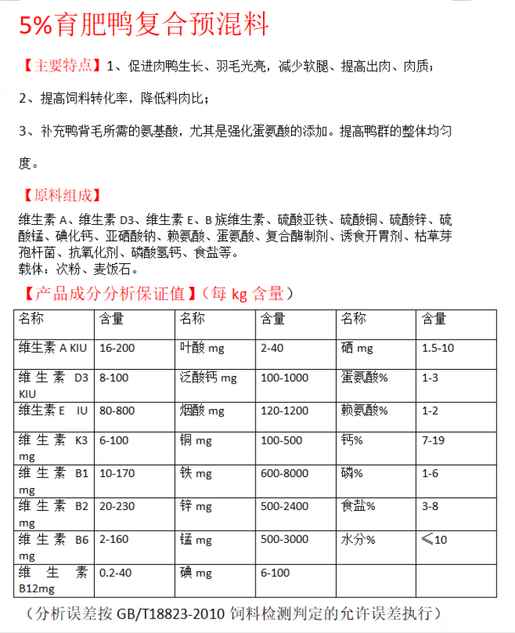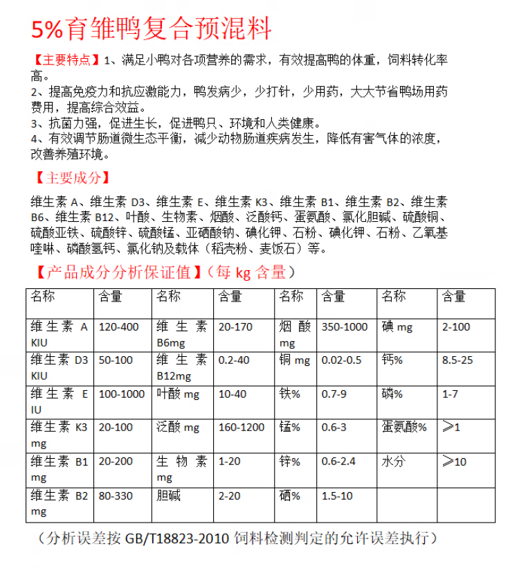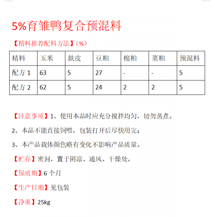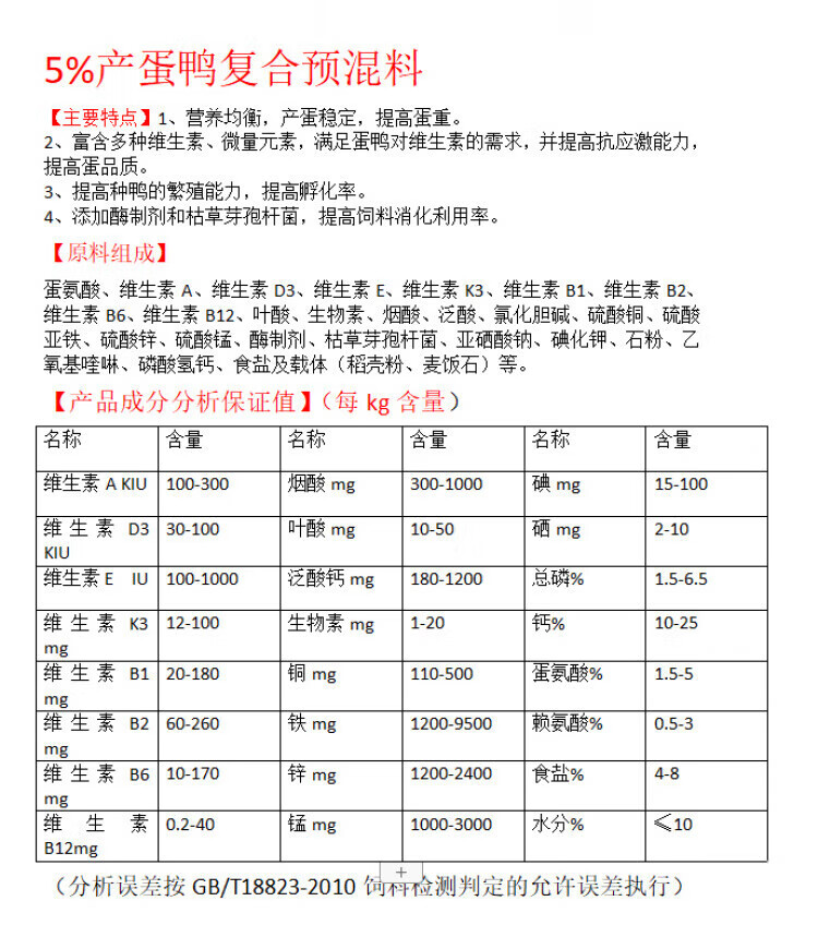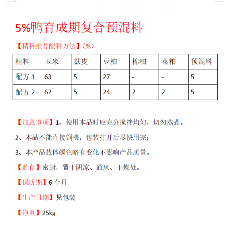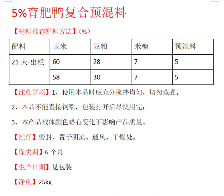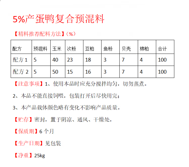 Compound premix for fattening ducks, ducklings and egg-laying ducks stabilizes egg production, improves hatchability and promotes feed digestion and utilization. Fattening duck premix