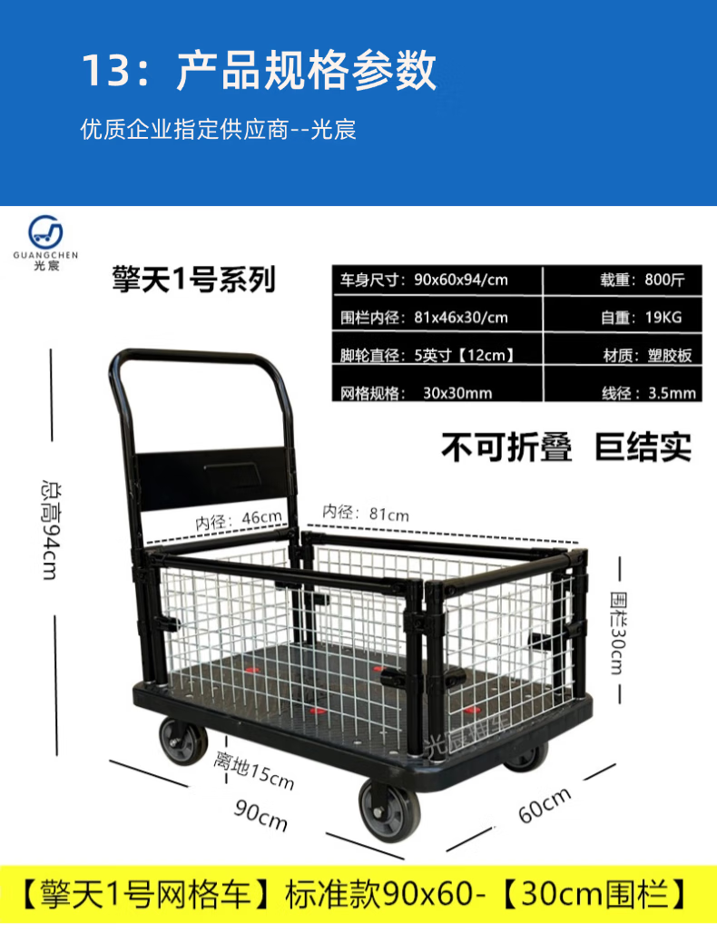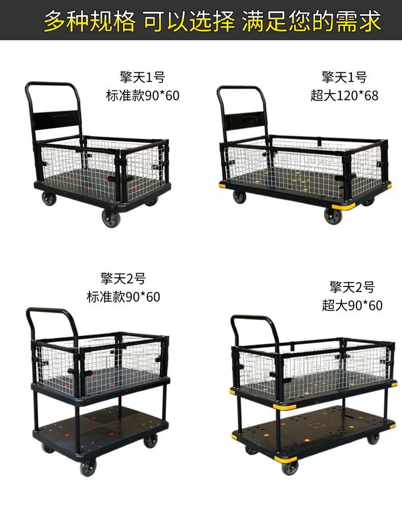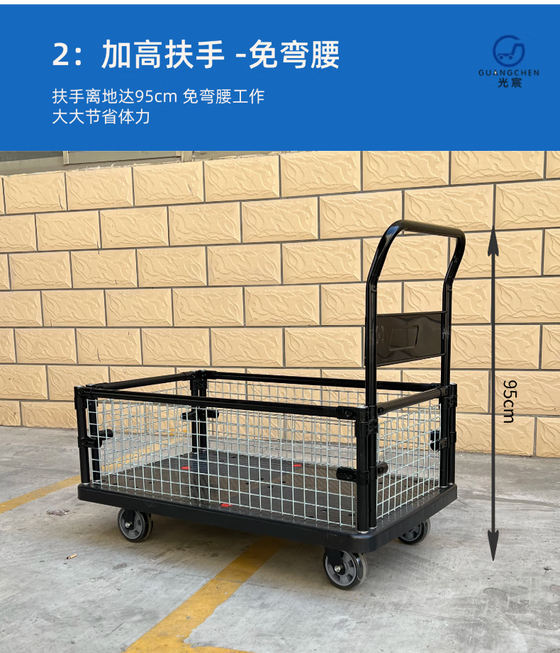 Guangchen Qingtian Grid Cart Flatbed Trolley Cage Car Warehouse Turnover Fence Car Cargo Truck Tool Car Qingtian No. 2 Grid Car Double-Large 6 Wheels_120x68 Load 1