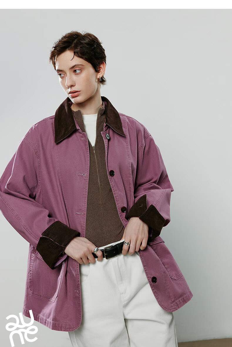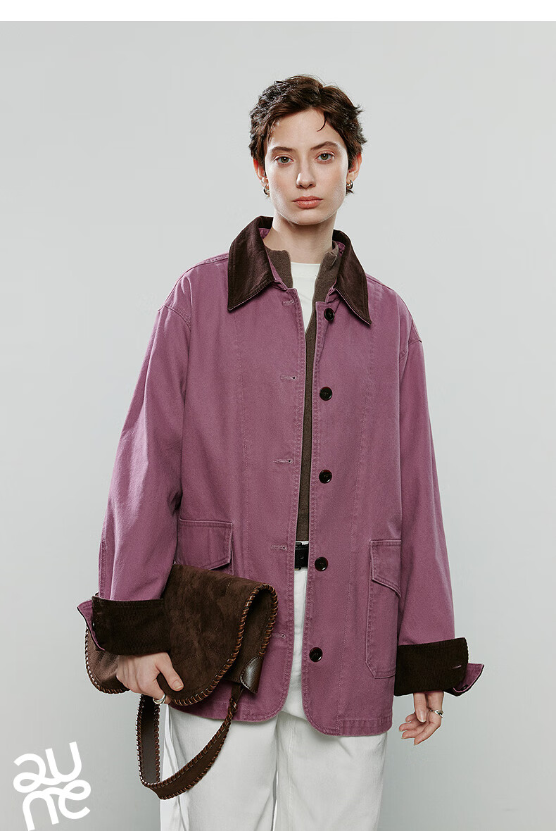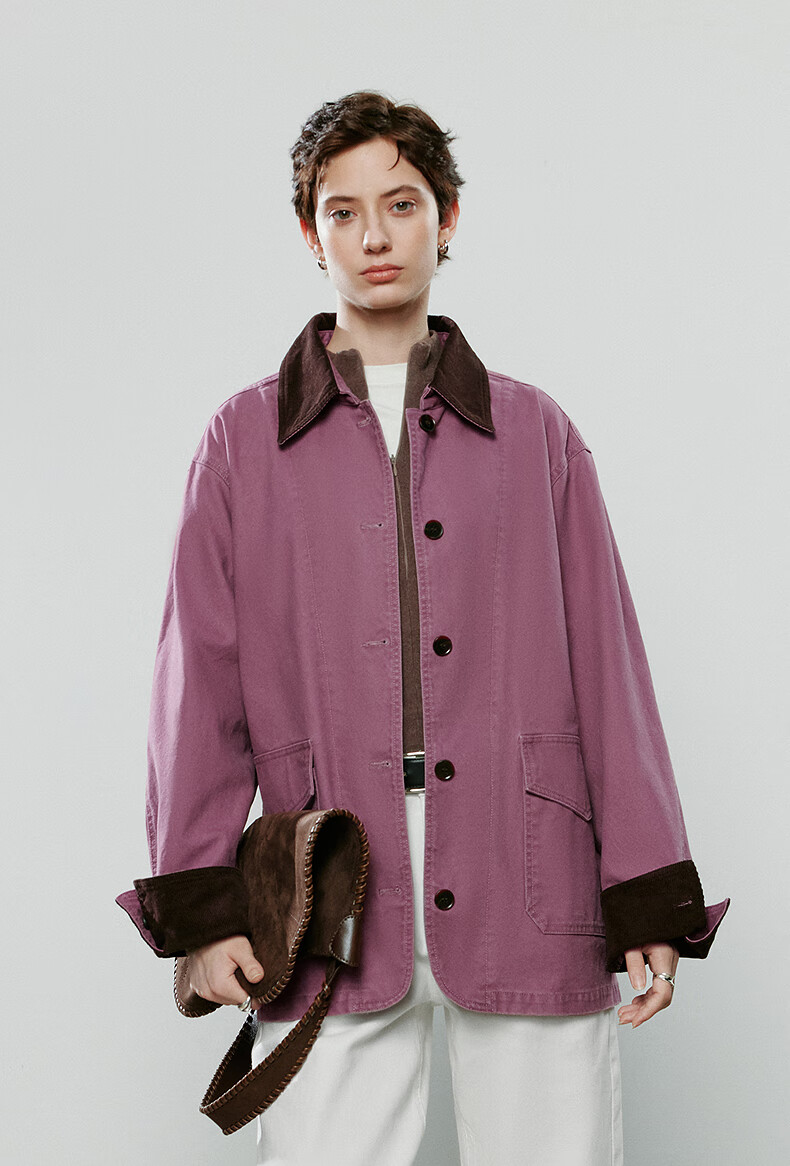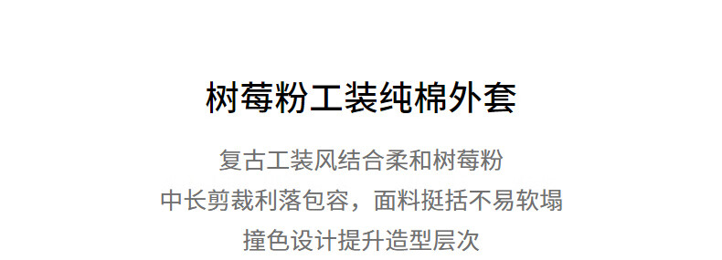 Chuyu Jacket Women's 2025 Winter New Mid-Length Raspberry Pink Cotton Retro Workwear Style Contrast Color Splicing Top Raspberry Pink M