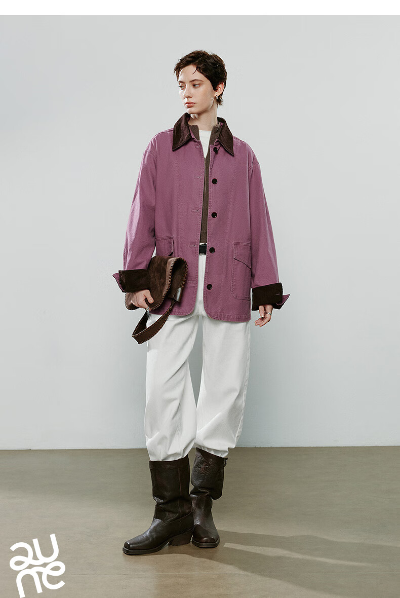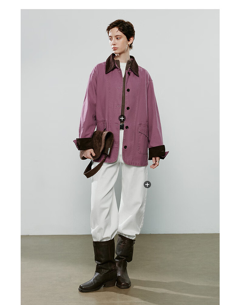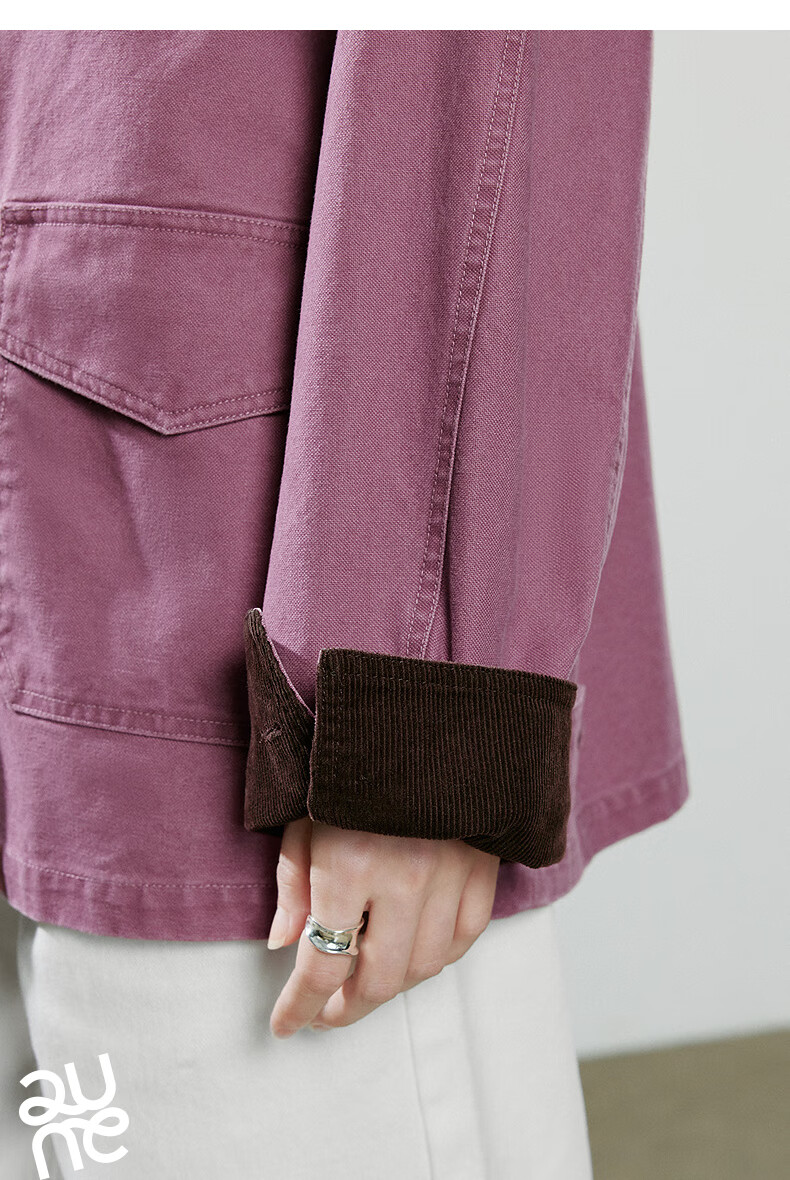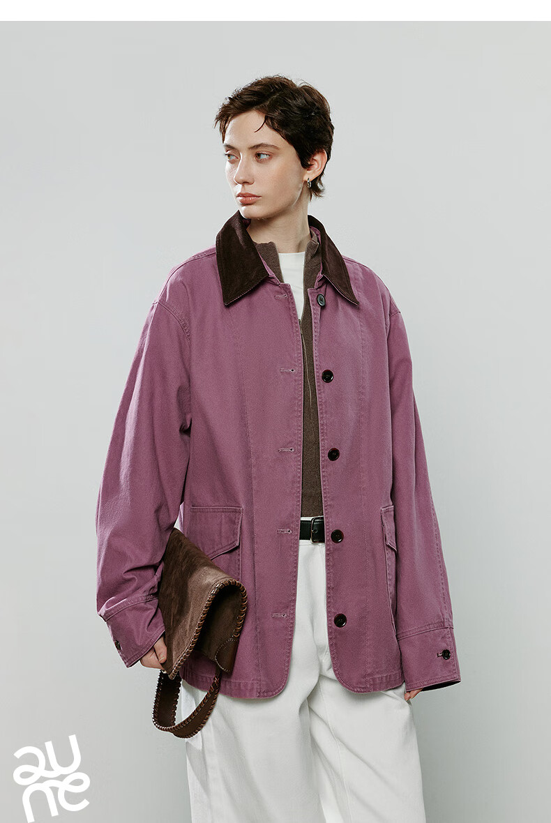 Chuyu Jacket Women's 2025 Winter New Mid-Length Raspberry Pink Cotton Retro Workwear Style Contrast Color Splicing Top Raspberry Pink M