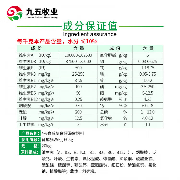4% medium pig premix pig feed additive fattening pig feed fast 95 animal husbandry Zhenqi green