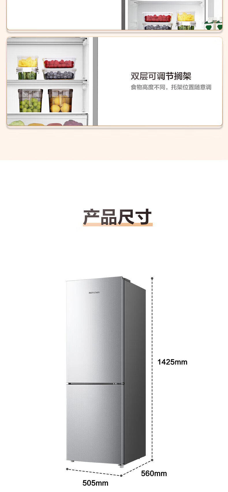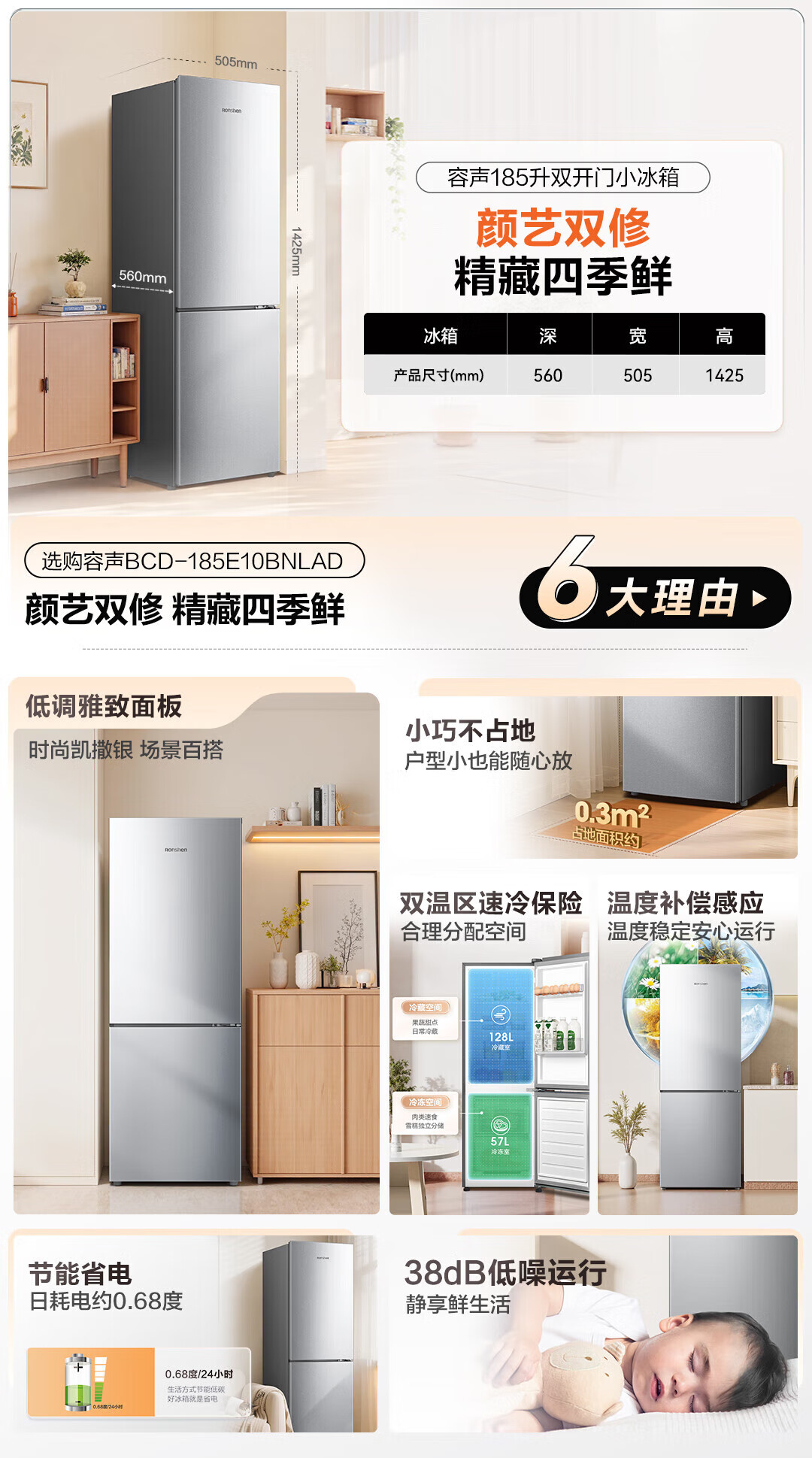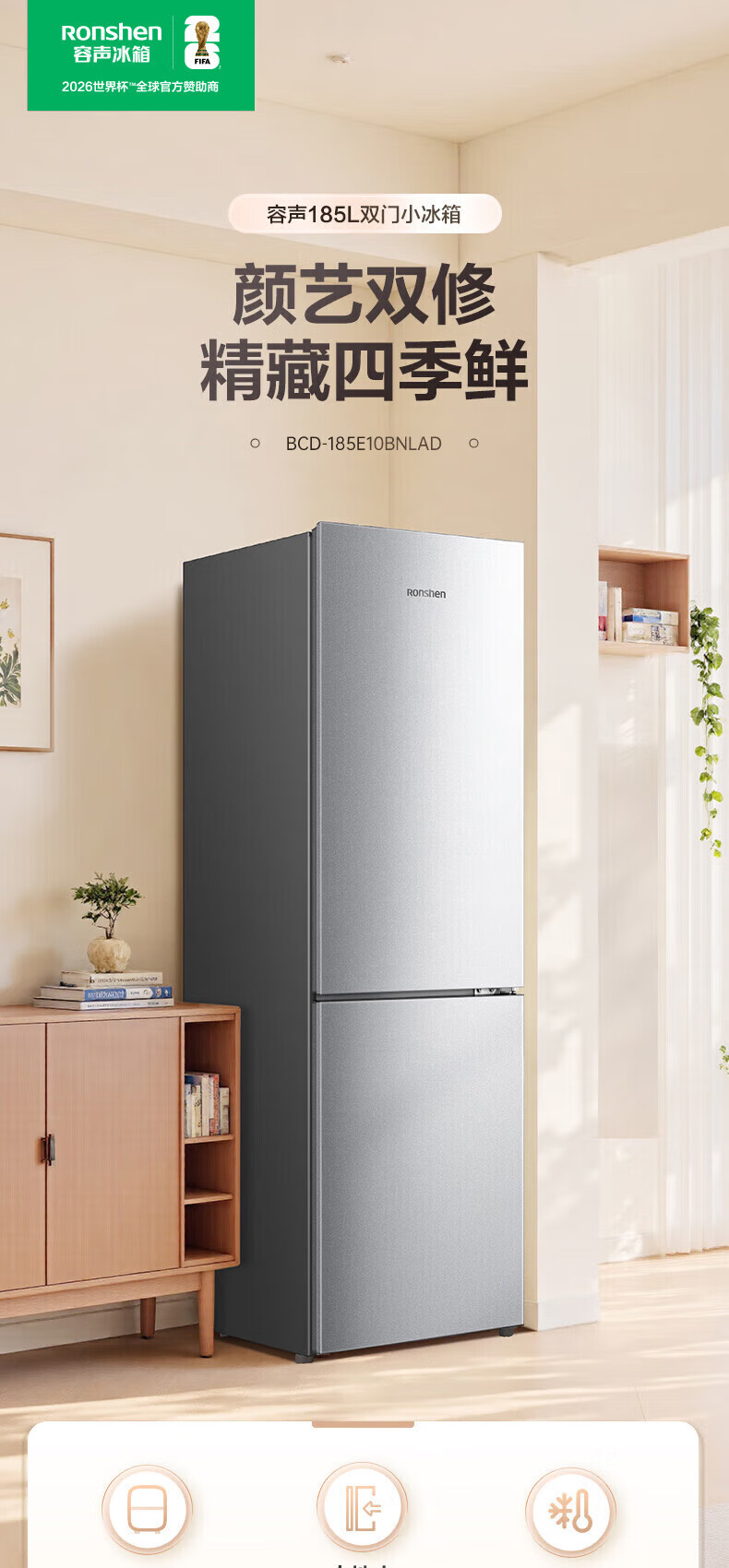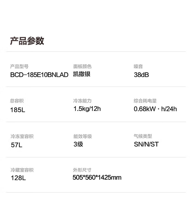 Rongsheng 185 liter double-door two-door household refrigerator small energy-saving thin refrigerated freezer dual-purpose dormitory rental room fresh-keeping official flagship store BCD-185E10BNLAD Caesar Silver