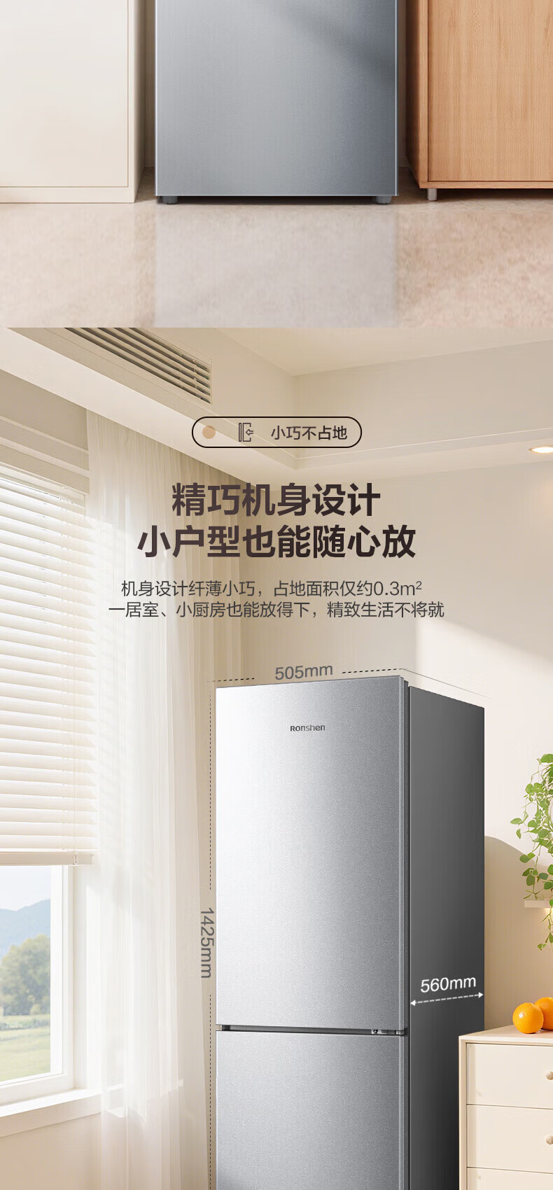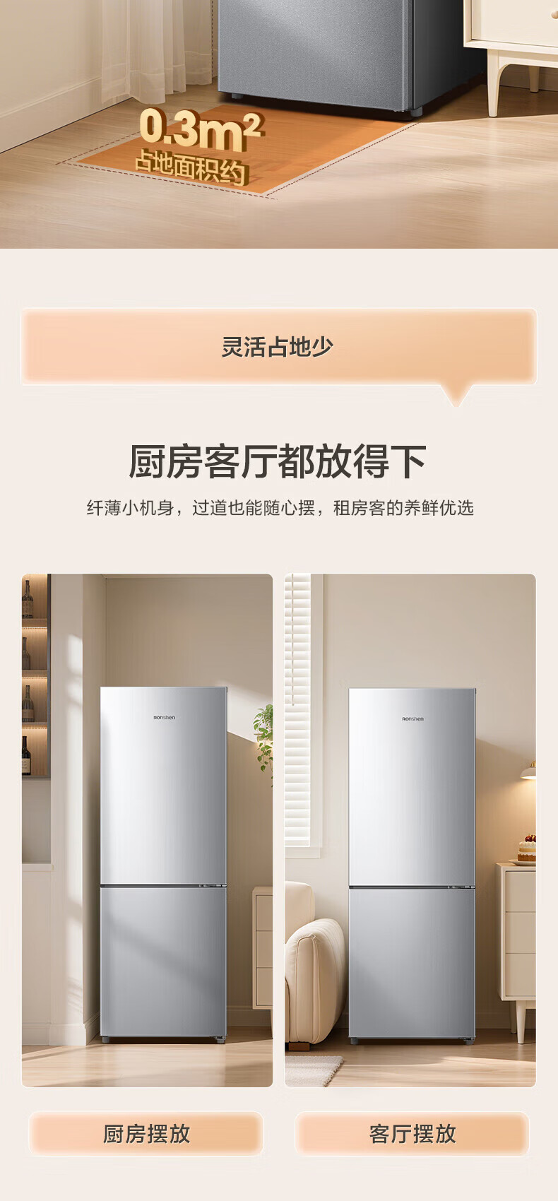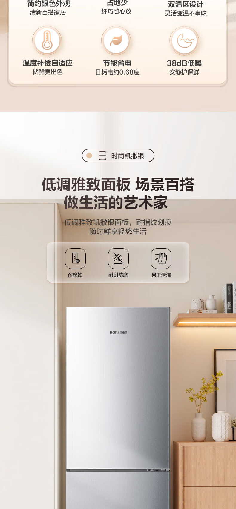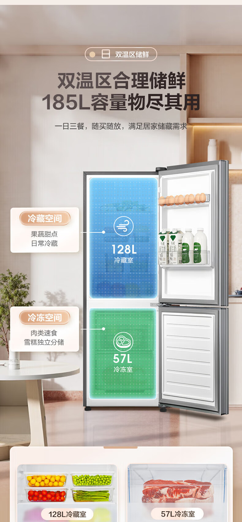 Rongsheng 185 liter double-door two-door household refrigerator small energy-saving thin refrigerated freezer dual-purpose dormitory rental room fresh-keeping official flagship store BCD-185E10BNLAD Caesar Silver
