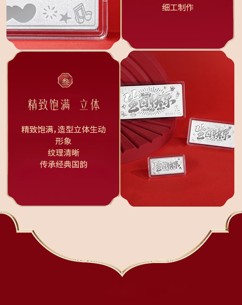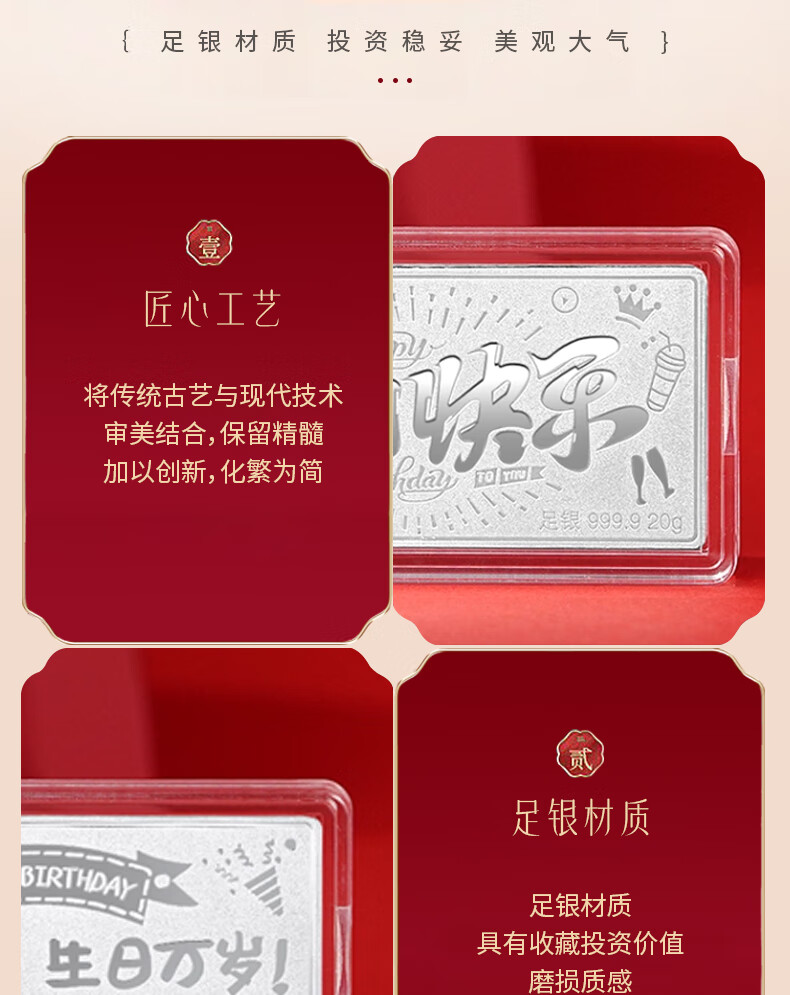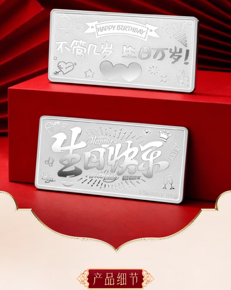 Liuguifu jewelry pure silver 9999 happy birthday silver bars silver investment raw materials silver bricks silver ingots silver nuggets broken silver collection stored value pure silver happy birthday silver bars 10g
