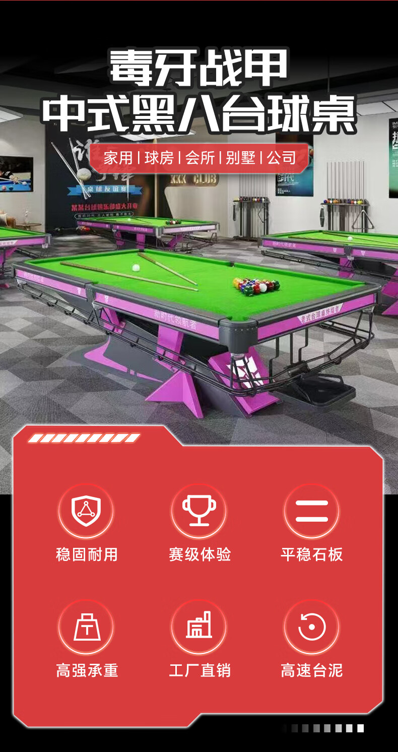Venomous fang billiard table billiard table standard black eight adult standard commercial steel warehouse ball room ball room competition complete set Venomous fang armor advanced version 1.2 steel warehouse (full set of accessories)