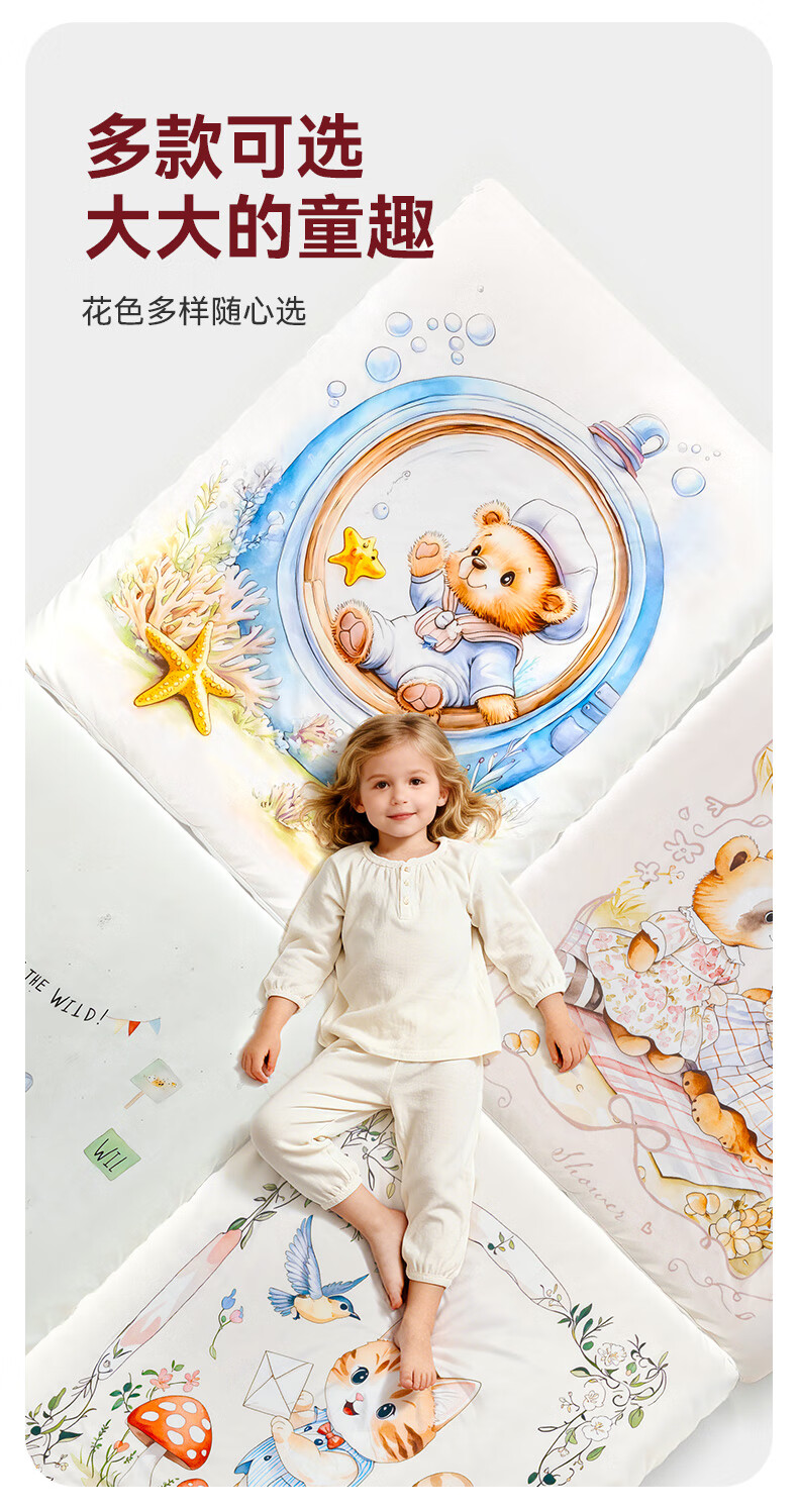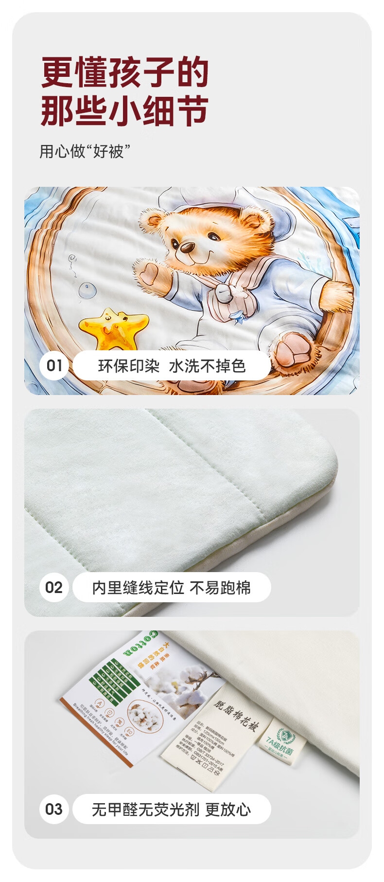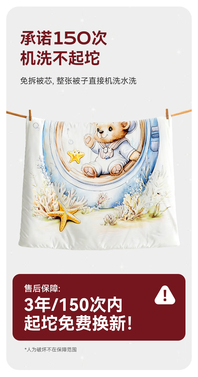 Beishus 100% cotton children's pure cotton quilt autumn and winter thickened 120x150 winter kindergarten primary school pure cotton machine washable quilt 1.2x1.5 meters/undersea bear/machine washable 100% Xinjiang long-staple cotton