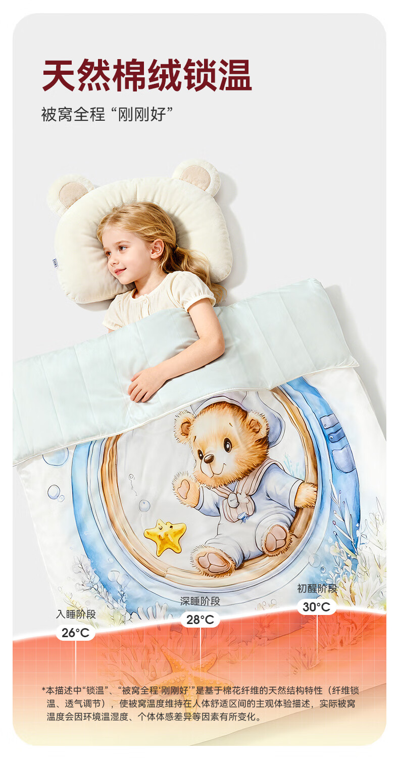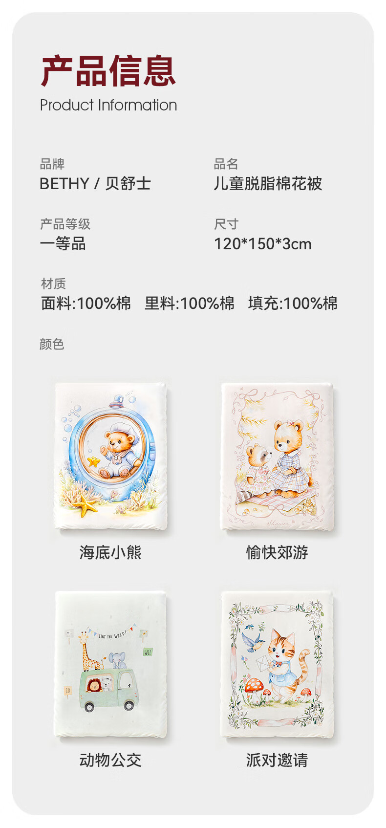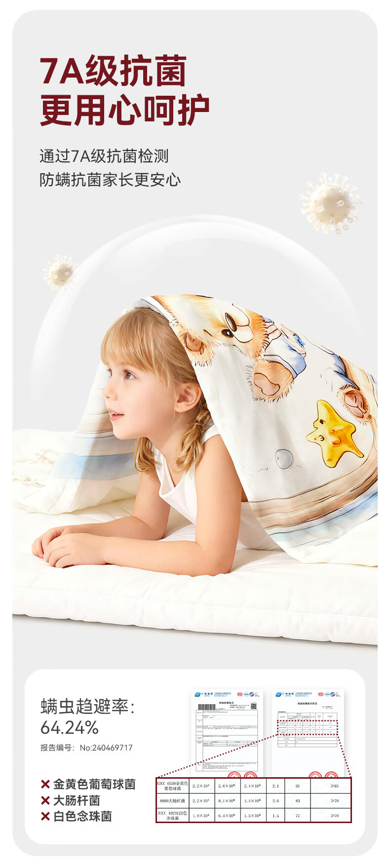 Beishus 100% cotton children's pure cotton quilt autumn and winter thickened 120x150 winter kindergarten primary school pure cotton machine washable quilt 1.2x1.5 meters/undersea bear/machine washable 100% Xinjiang long-staple cotton