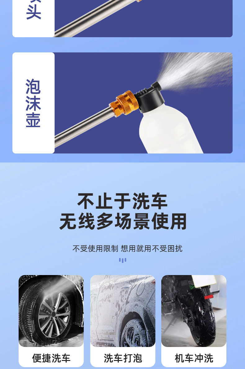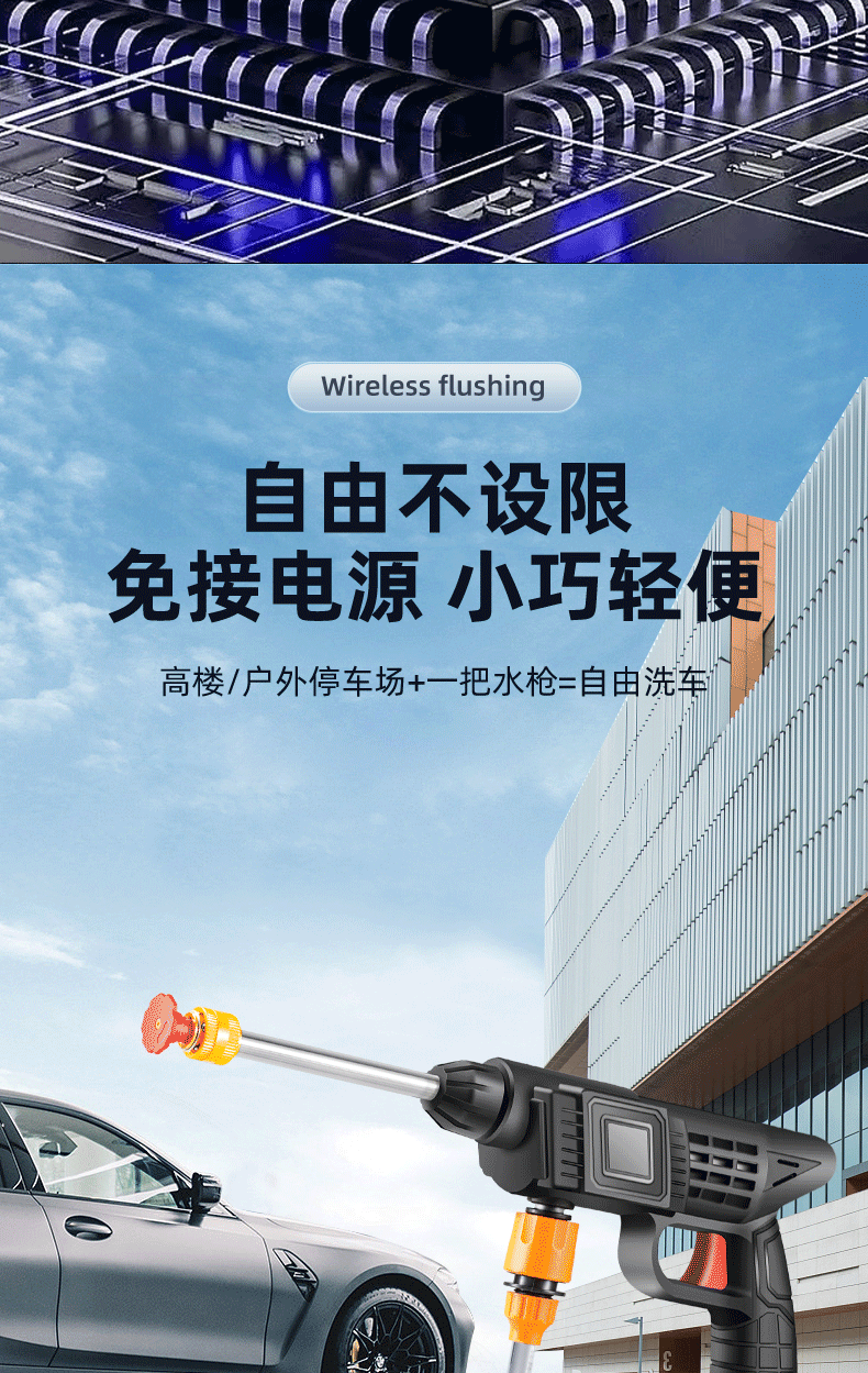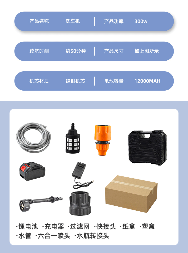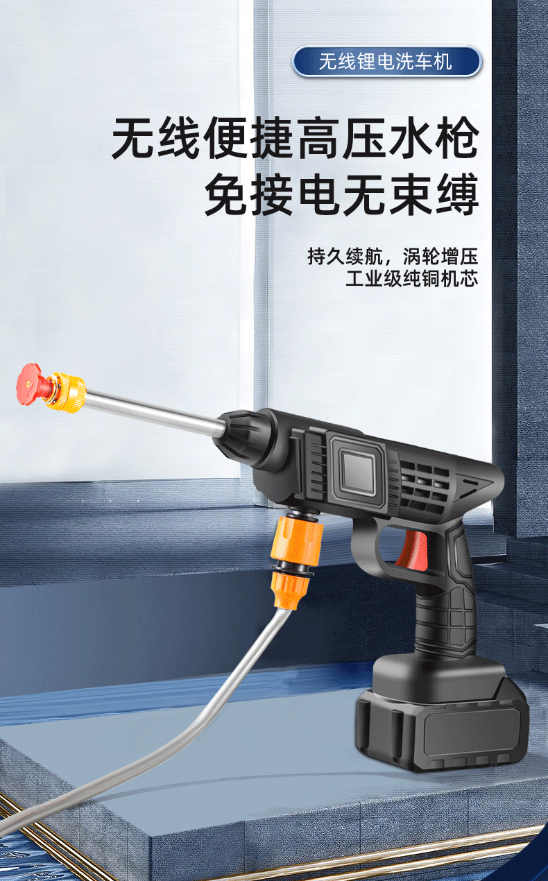 Wireless electric car wash water gun artifact to flush high-pressure powerful water to wash cars and motorcycles with household lithium battery for car brushing lithium battery car washing machine five cells two batteries one charge plastic box