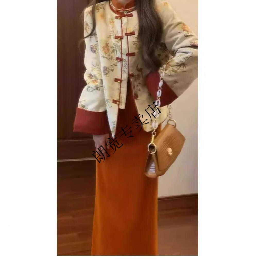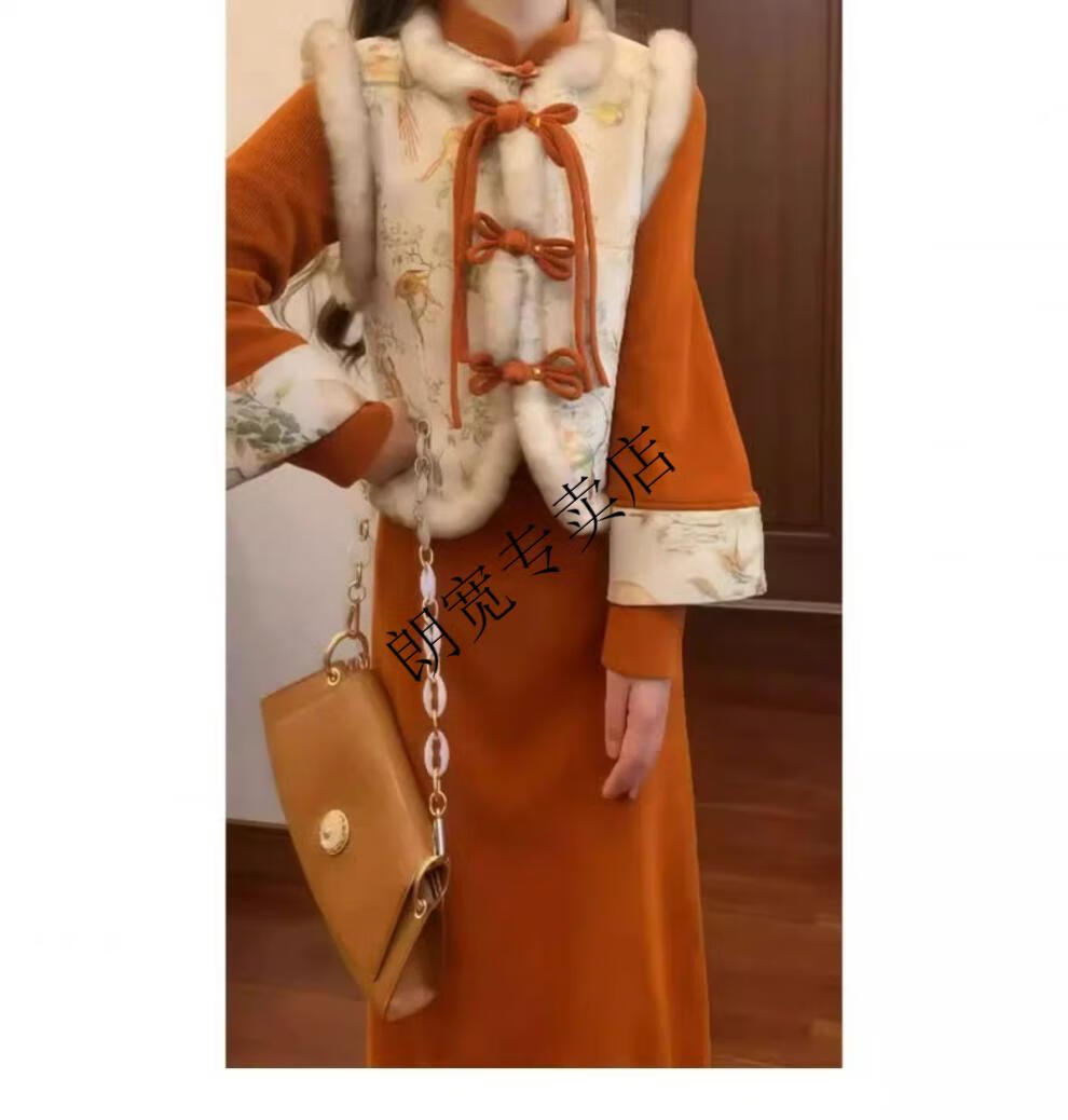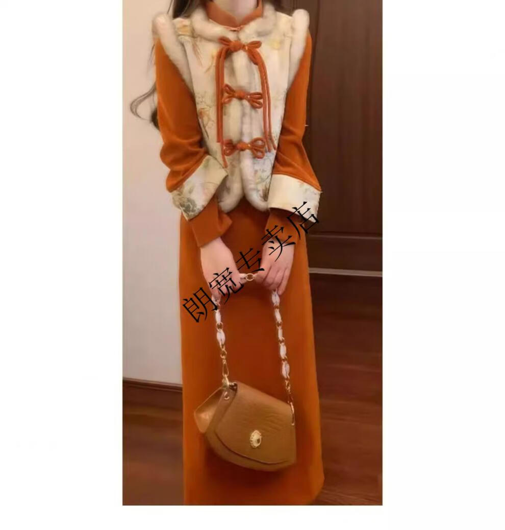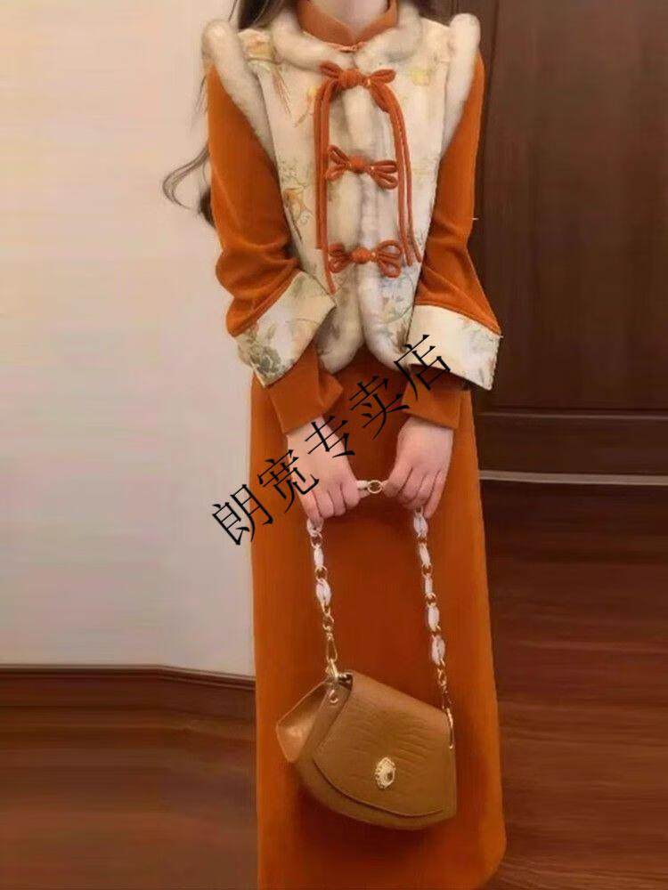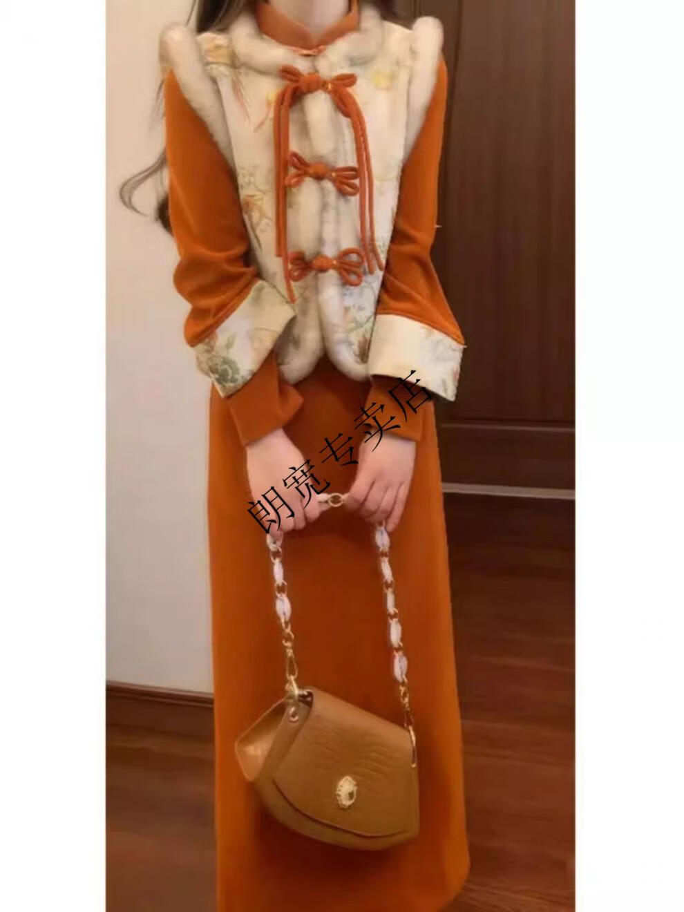 Pierre Cardin 2025 New Year's shirt New Chinese style Chinese style cheongsam quilted vest dress two-piece set women's New Year's greetings winter style vest + cheongsam suit M
