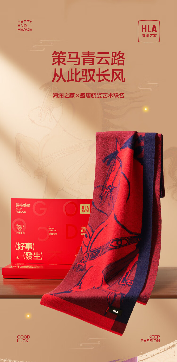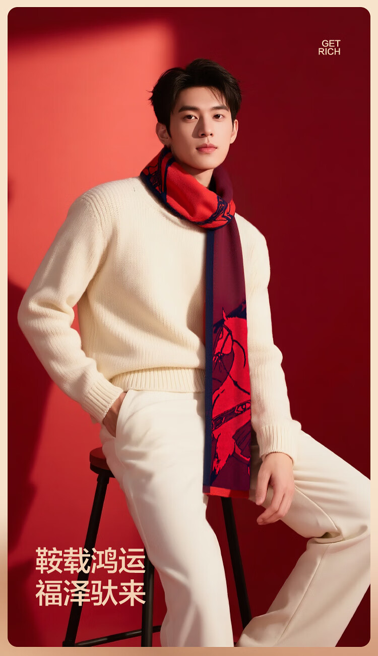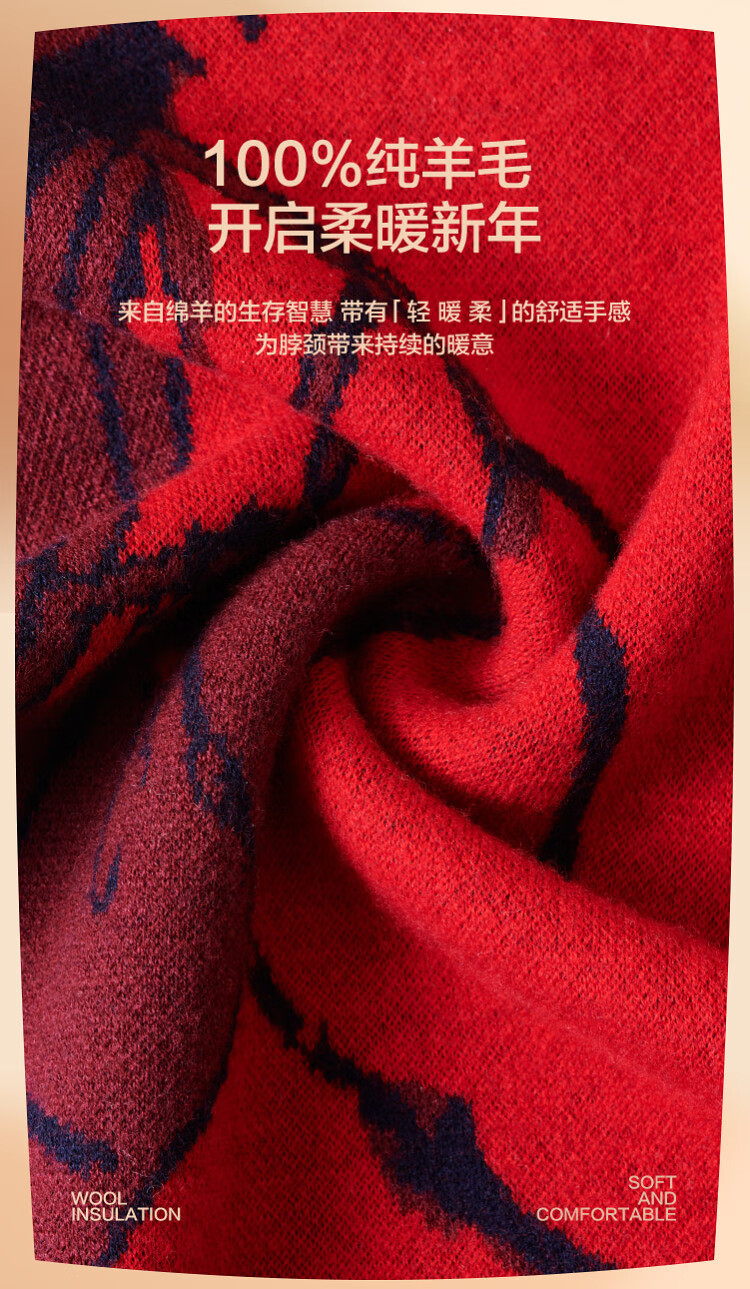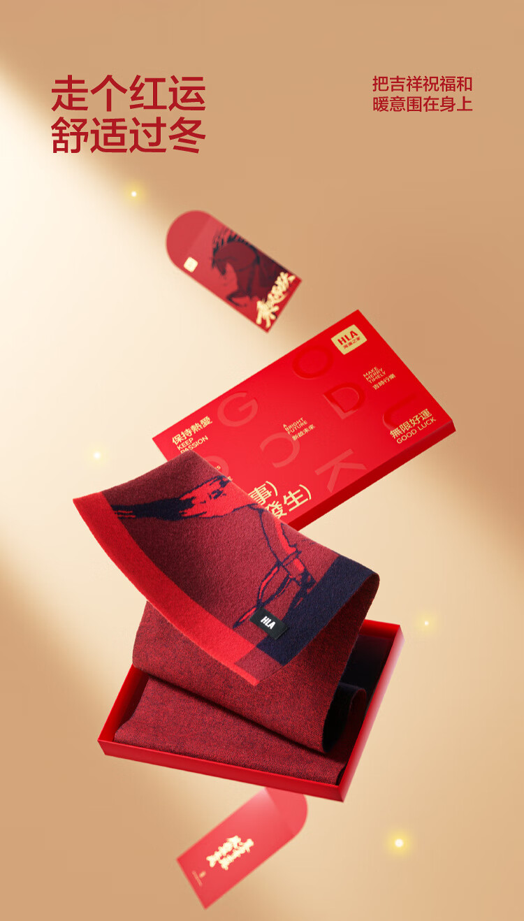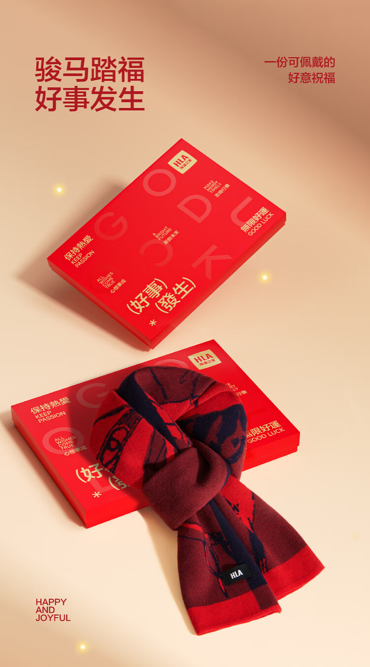 Heilan House (HLA) pure wool scarf for men and women, winter warm and festive gift box, neck scarf, birthday gift, RR Chinese Red 180 30cm