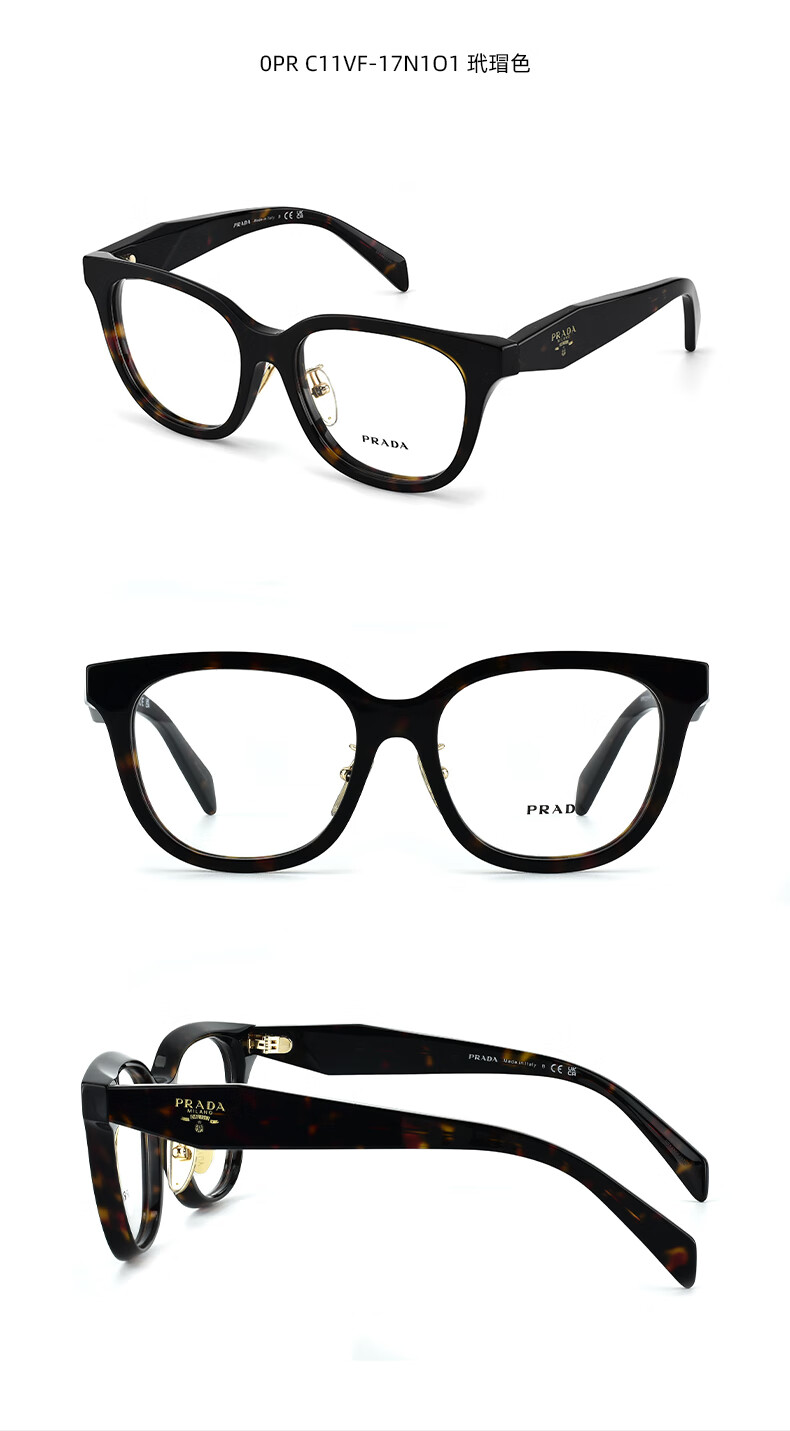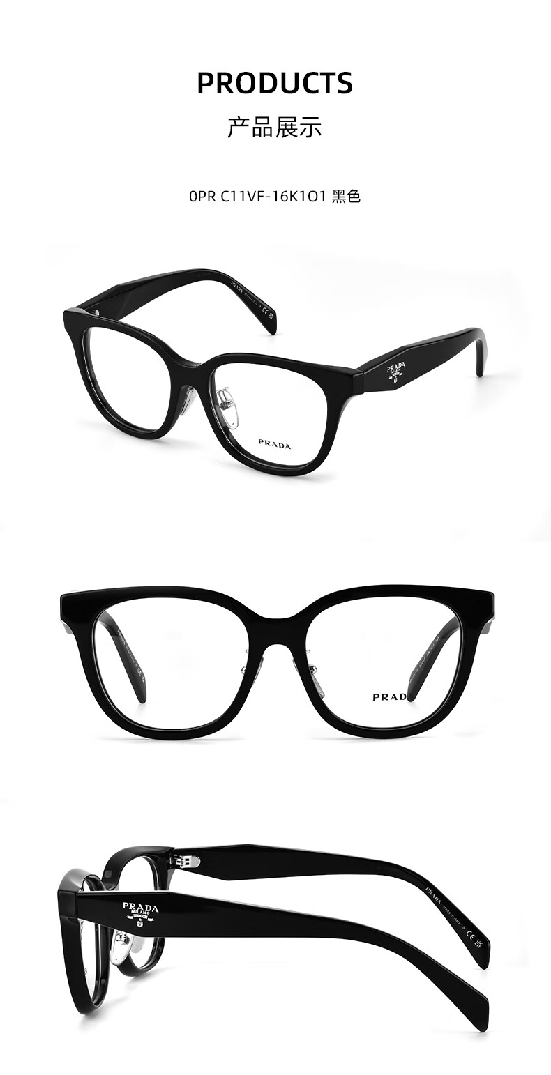 PRADA Prada glasses frame men's high-end plain black square frame myopia glasses frame for women 0PR C11VF 0PR C11VF-17N1O1