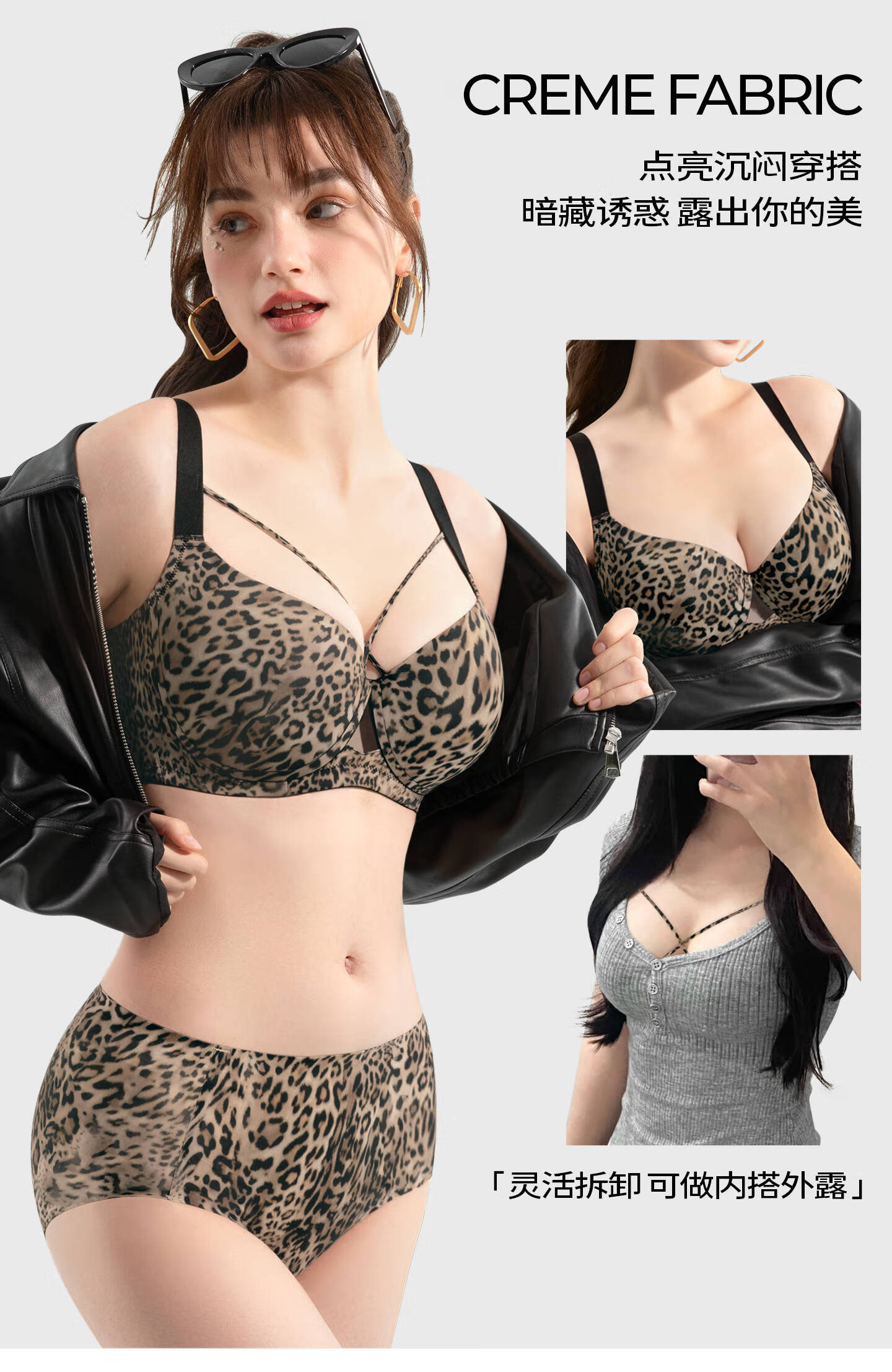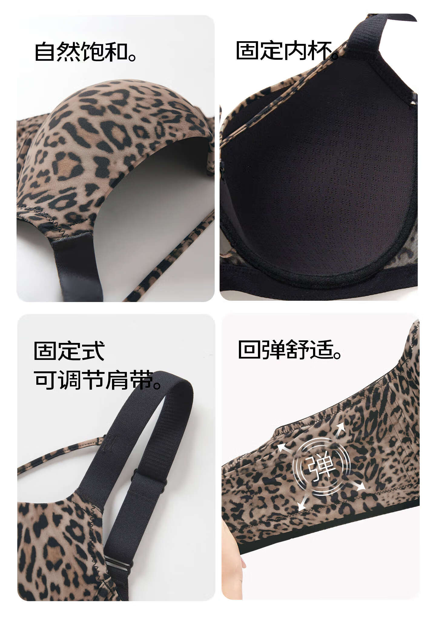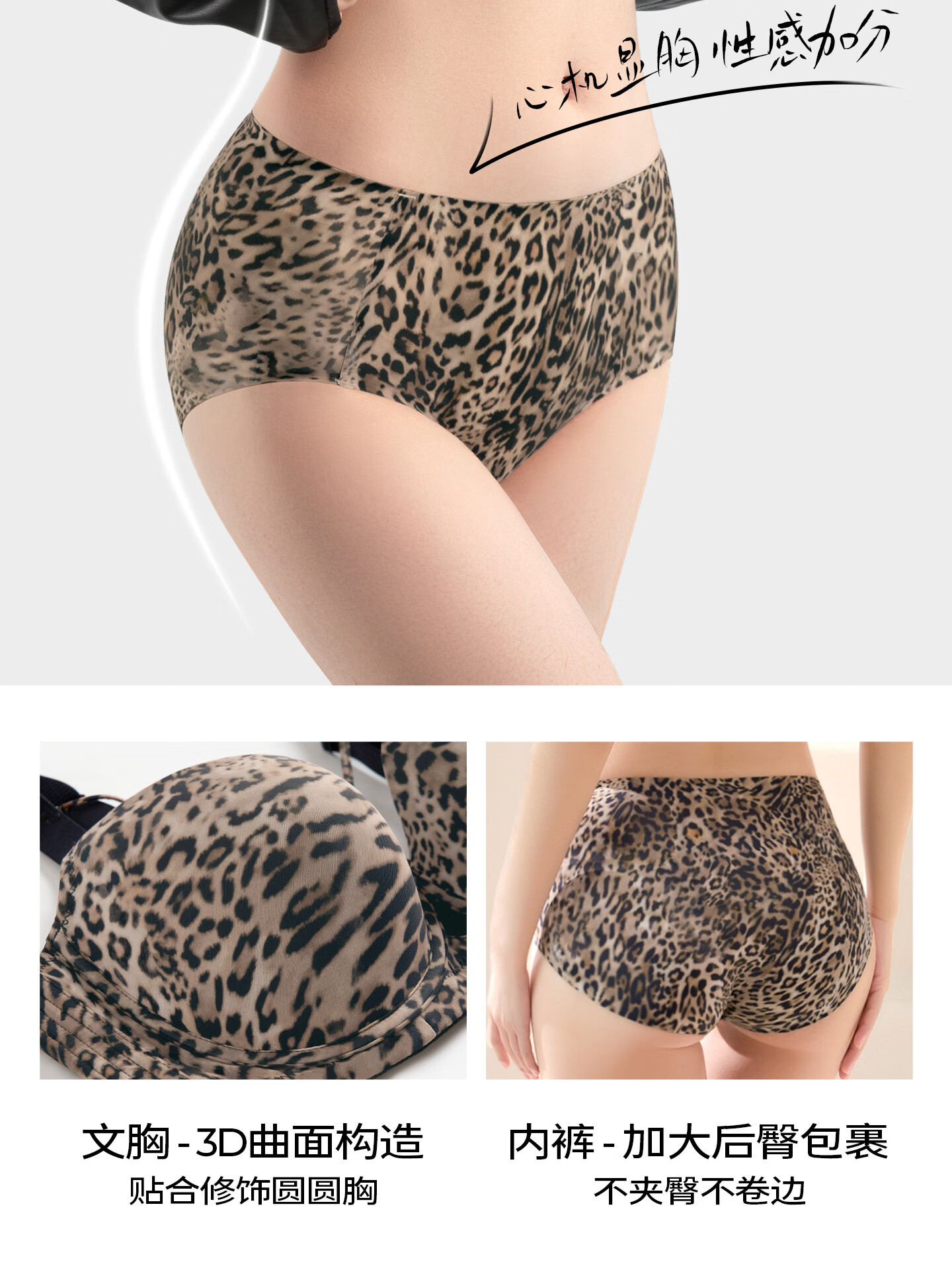 Sugar-grained seamless leopard print underwear set for large breasts to look smaller for large sizes and fat mm, push-up breast-retracting anti-sagging bra with thin leopard print color set with detachable breast strap 80C + underwear XL