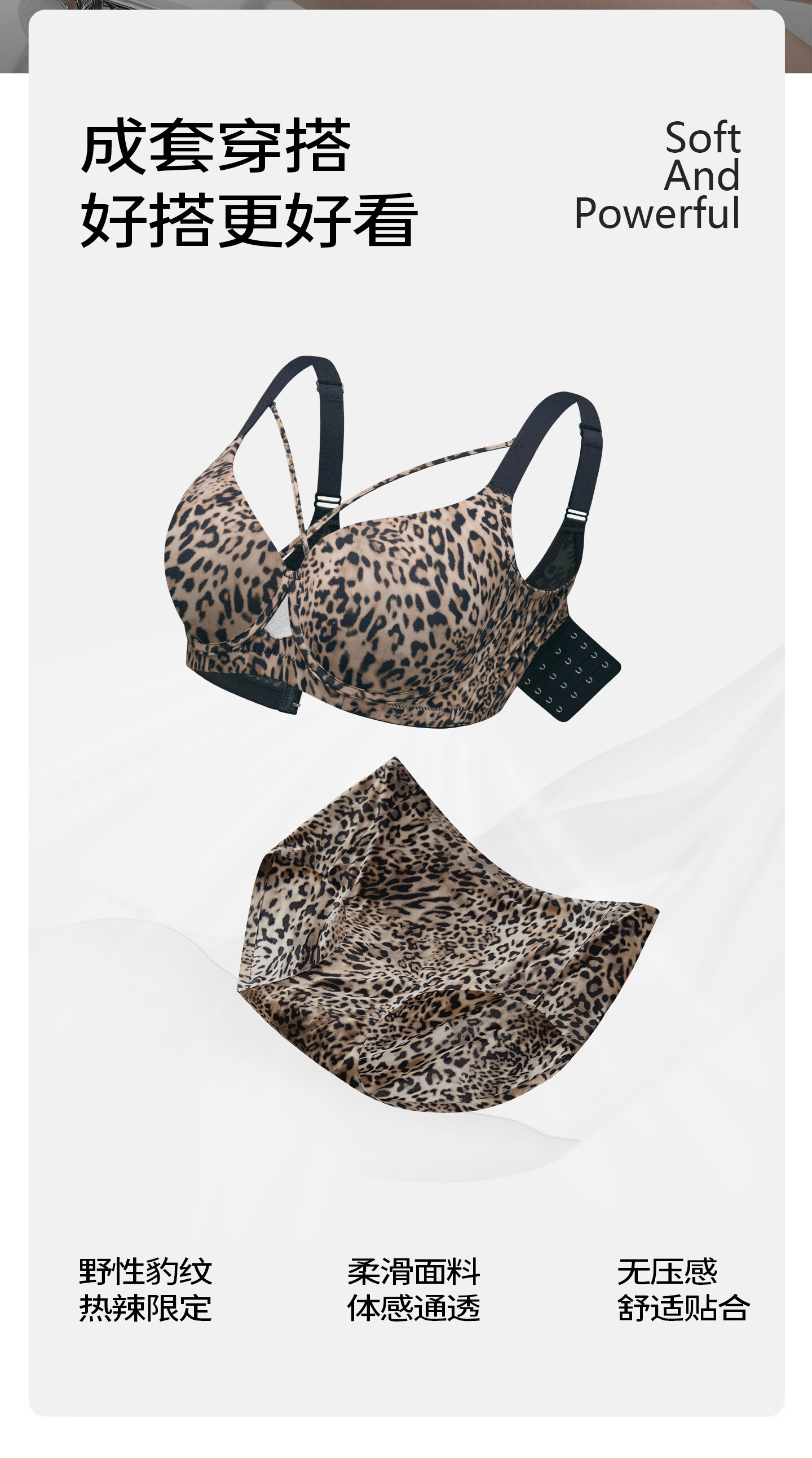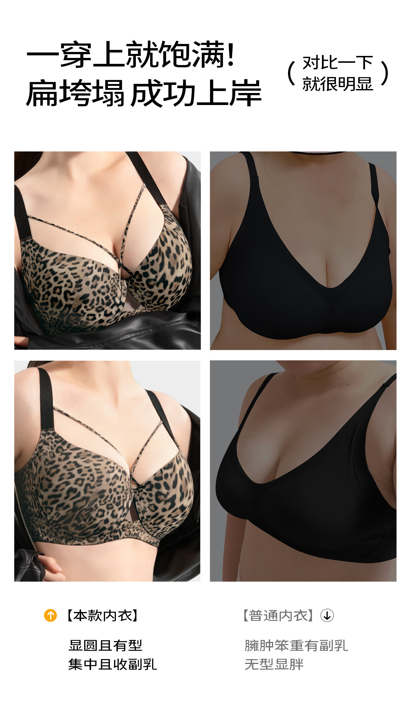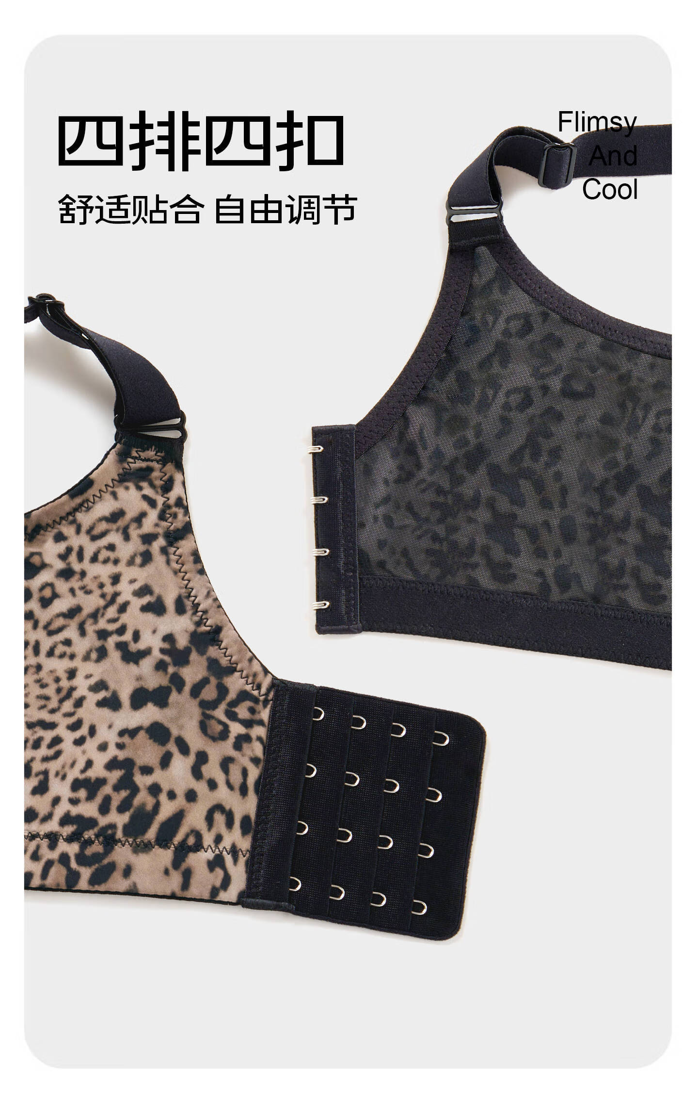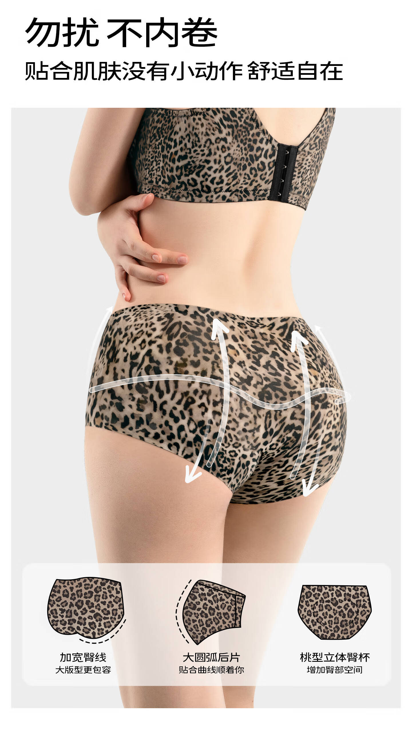 Sugar-grained seamless leopard print underwear set for large breasts to look smaller for large sizes and fat mm, push-up breast-retracting anti-sagging bra with thin leopard print color set with detachable breast strap 80C + underwear XL