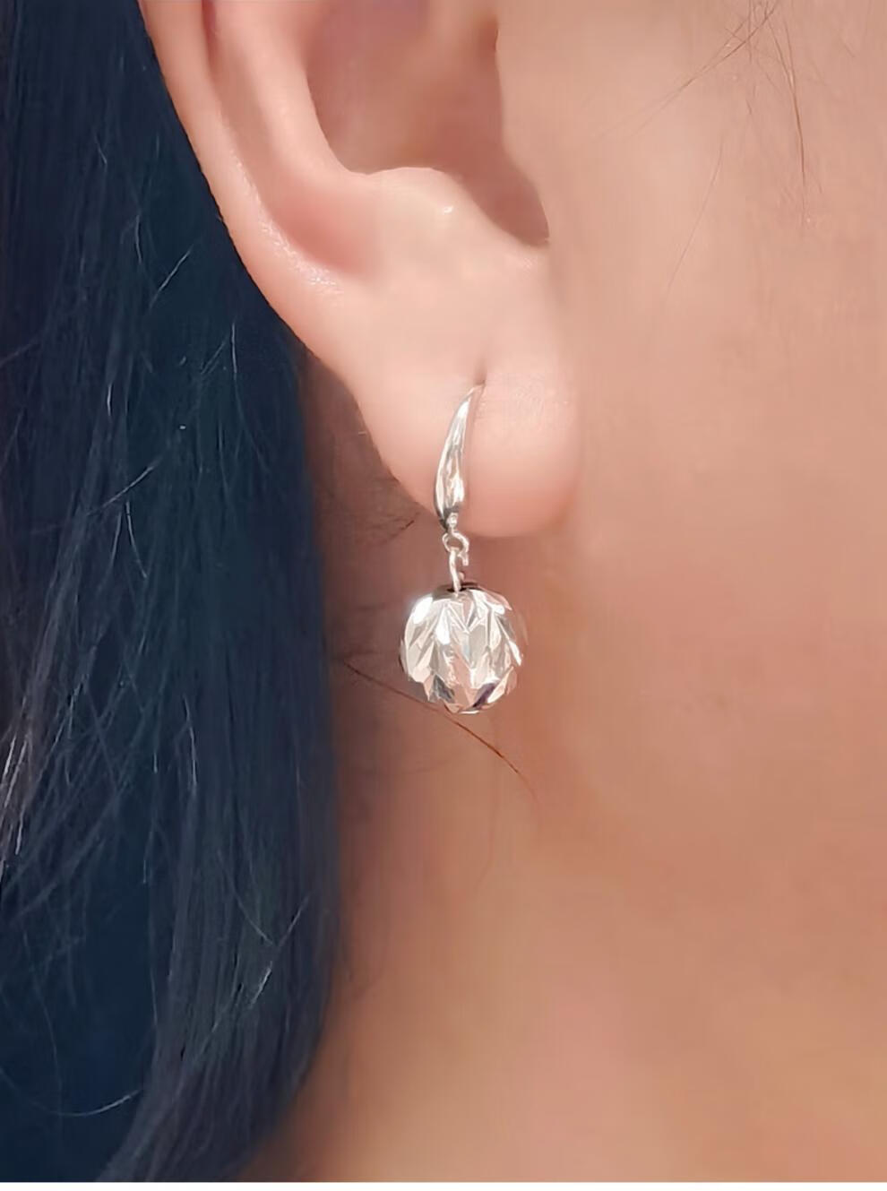 Fat Donglai's same type of transfer bead silver earrings, whole body S925 silver platinum-plated earrings, women's round ball earrings, silver ornaments, a pair of transfer bead ear hooks, whole body 925 silver