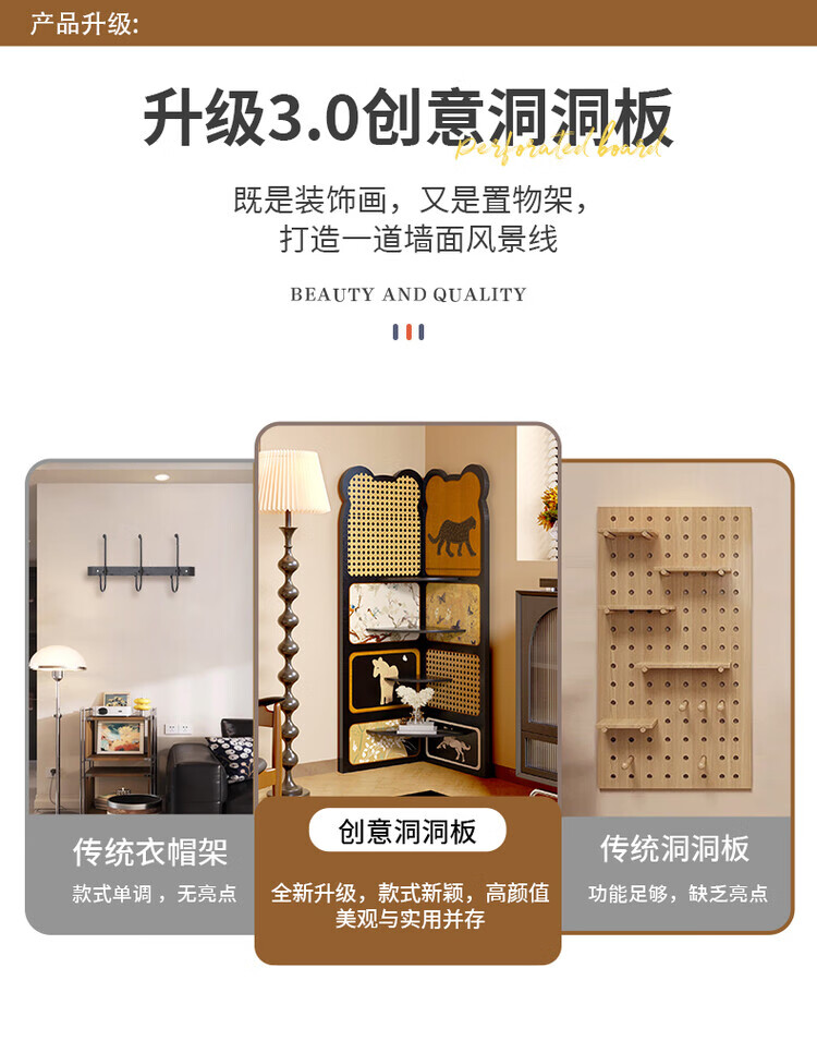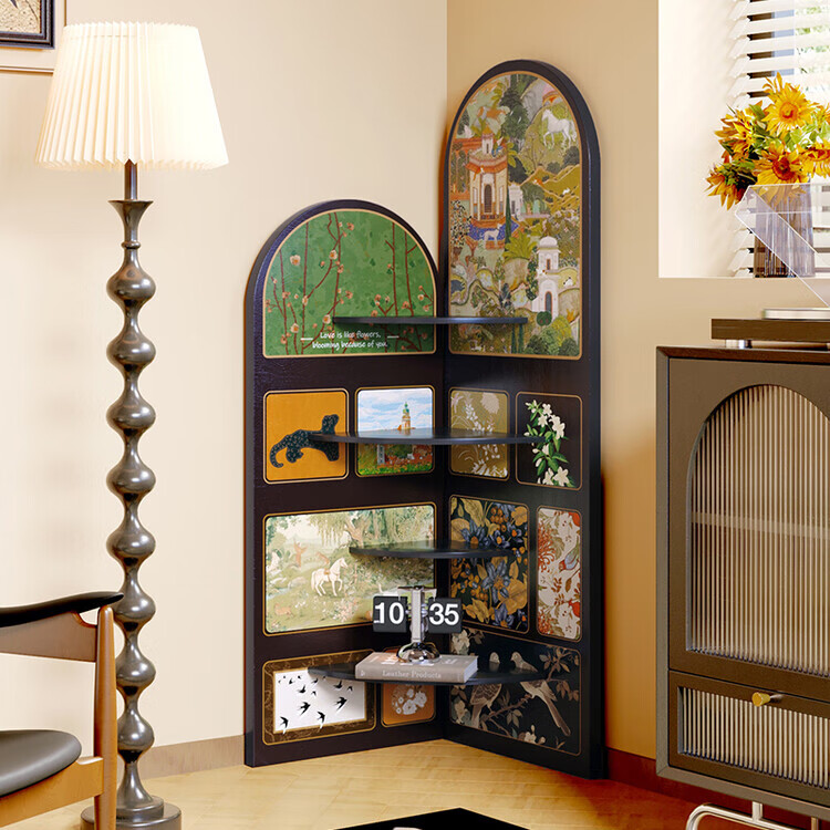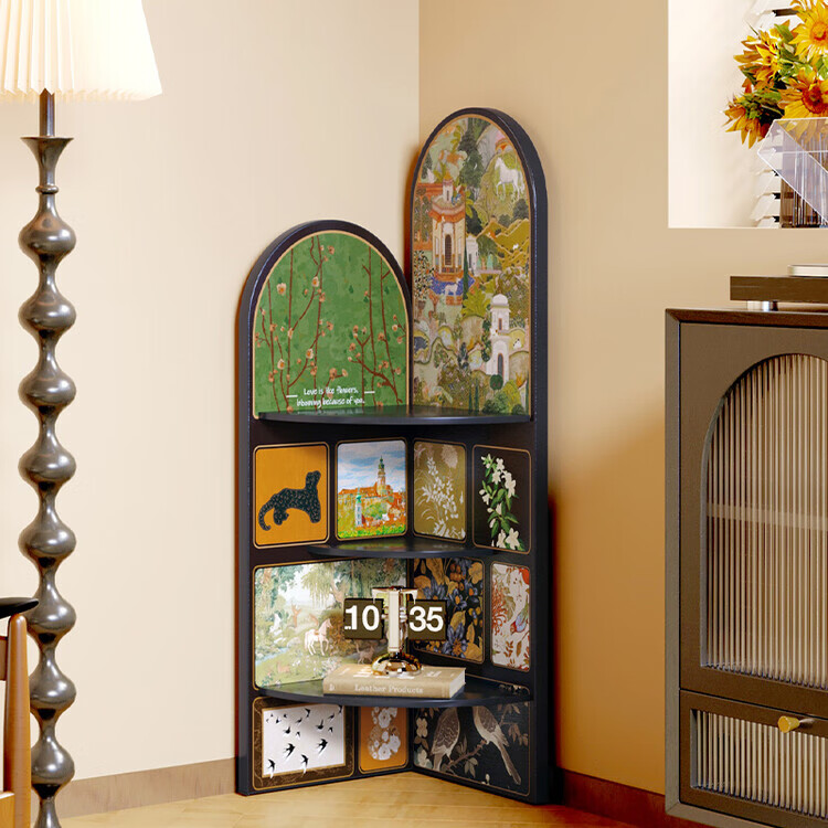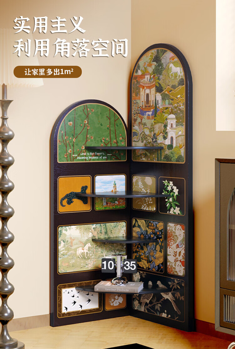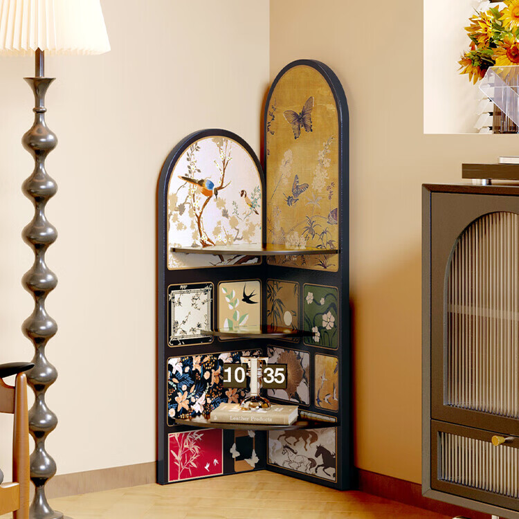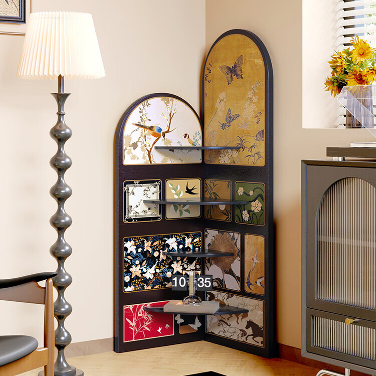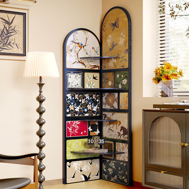 Nanyang retro style corner cabinet hole board storage rack bedside floor-standing ornaments living room storage rack integrated screen rack corner cabinet Tingwuqi Gumeng four layers 150*40cm+170*40cm