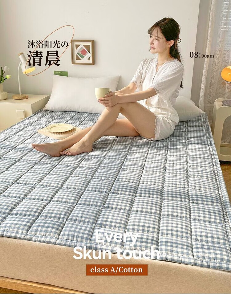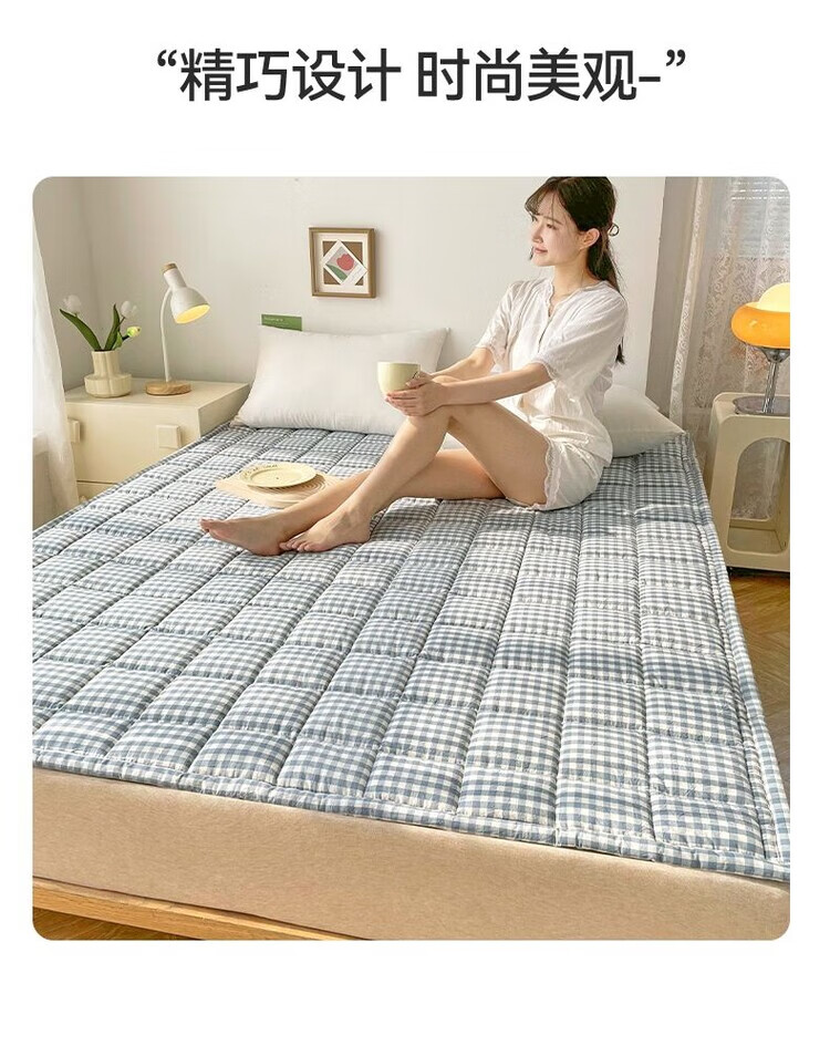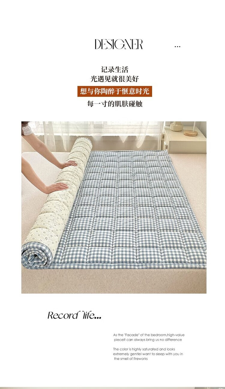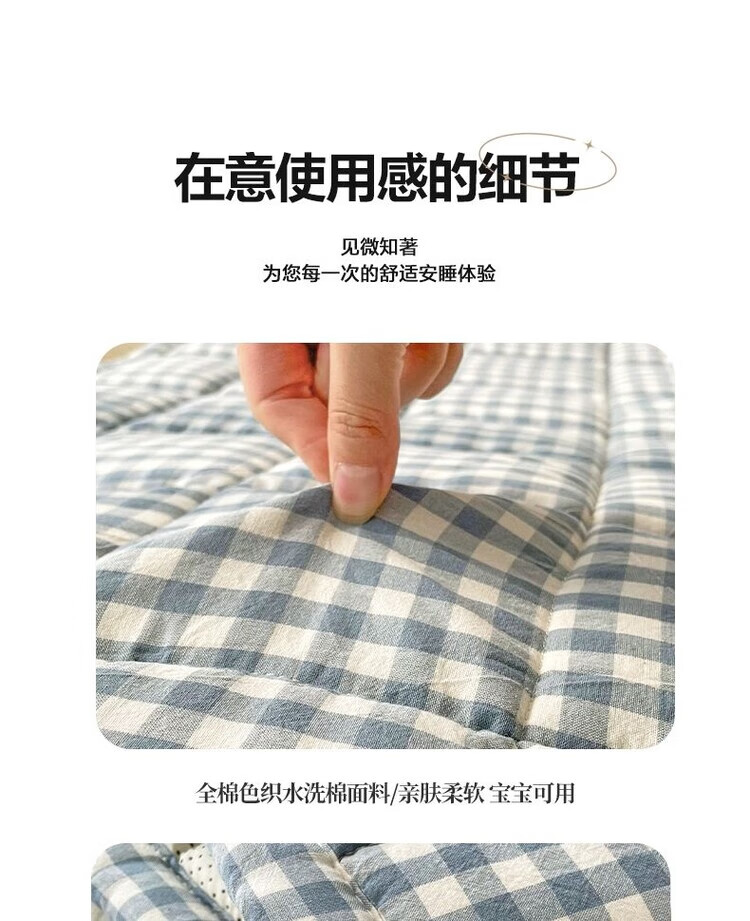Children's soft cotton mattress pad bottom non-slip mattress household mattress single bed protective pad bottom mattress cotton yarn-dyed washed cotton mattress-Lan Xiaoge 90X200
