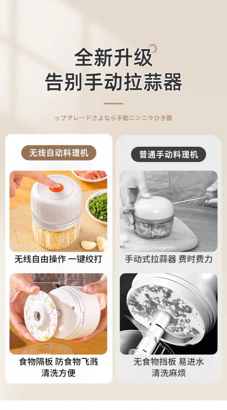 TYZAYR Japanese cordless electric garlic masher, garlic masher, ginger garlic masher, small grinder, garlic cutter, minced meat, simple upgraded model, upgraded Type-C interface 150ml