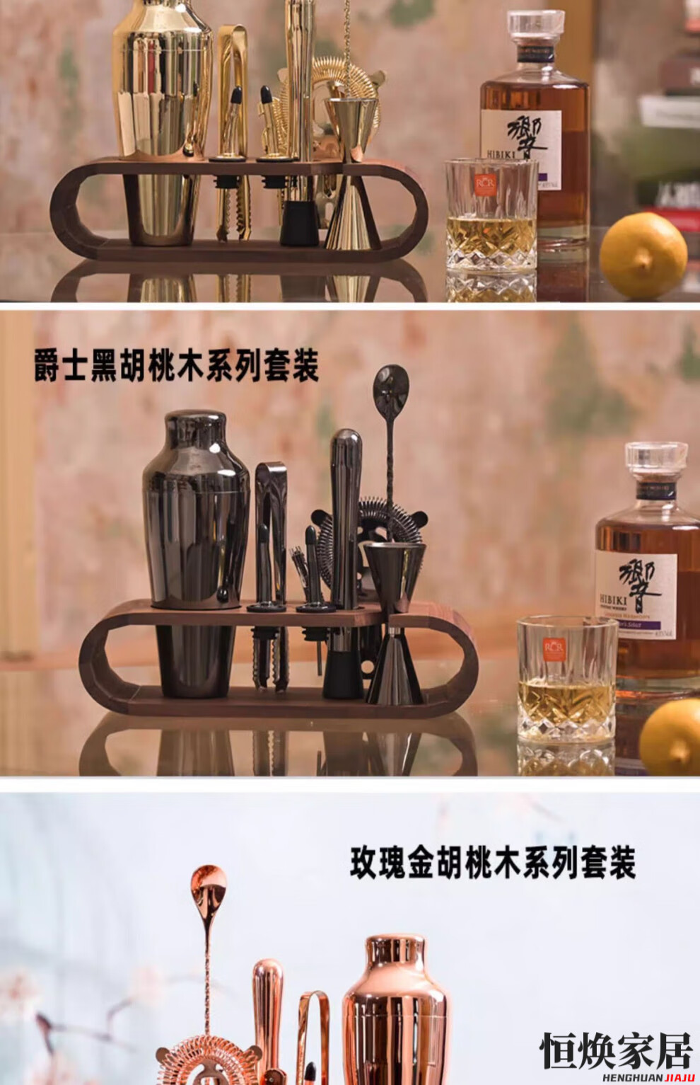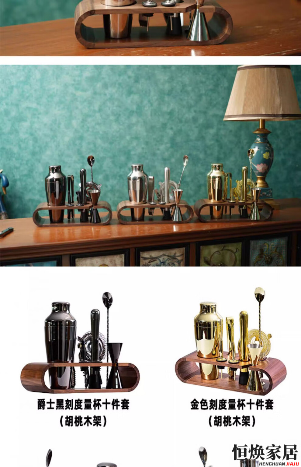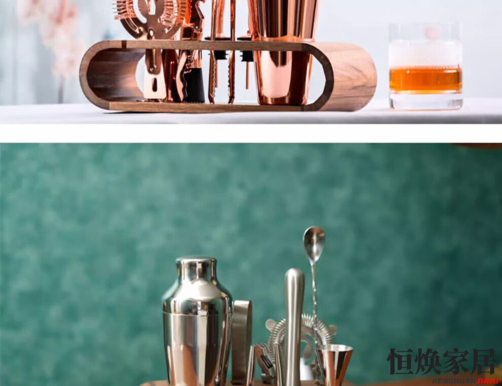 MPPMCK German imported cocktail shaker set Italian French jazz black cocktail shaker set wooden frame bar tool shaker jazz black classic
