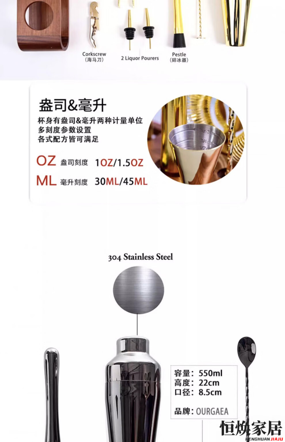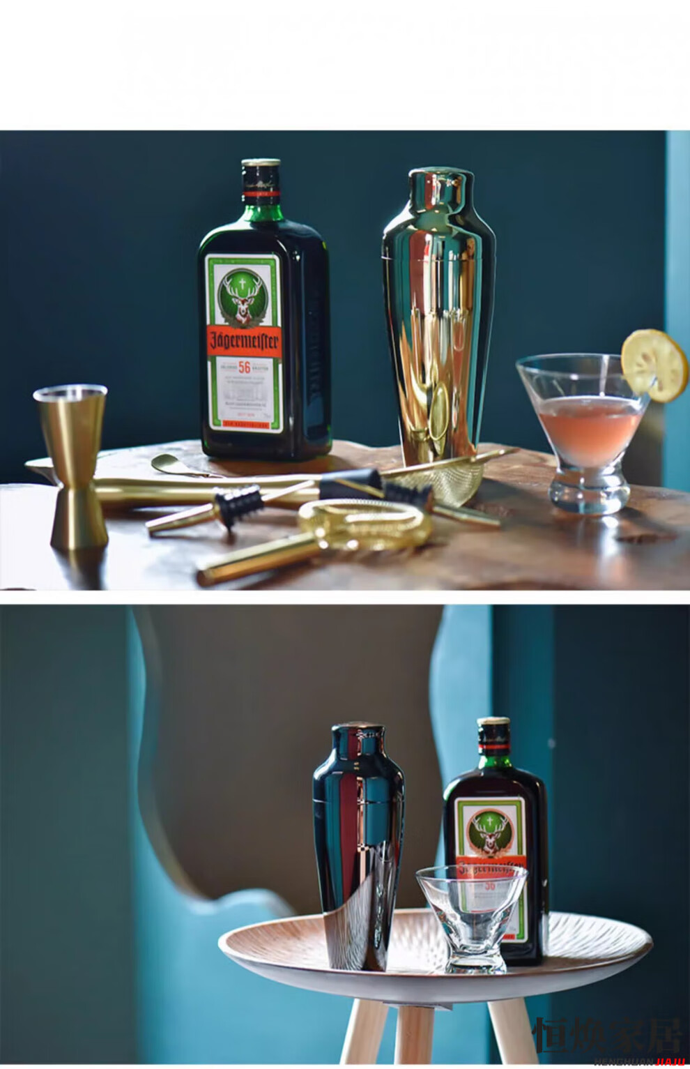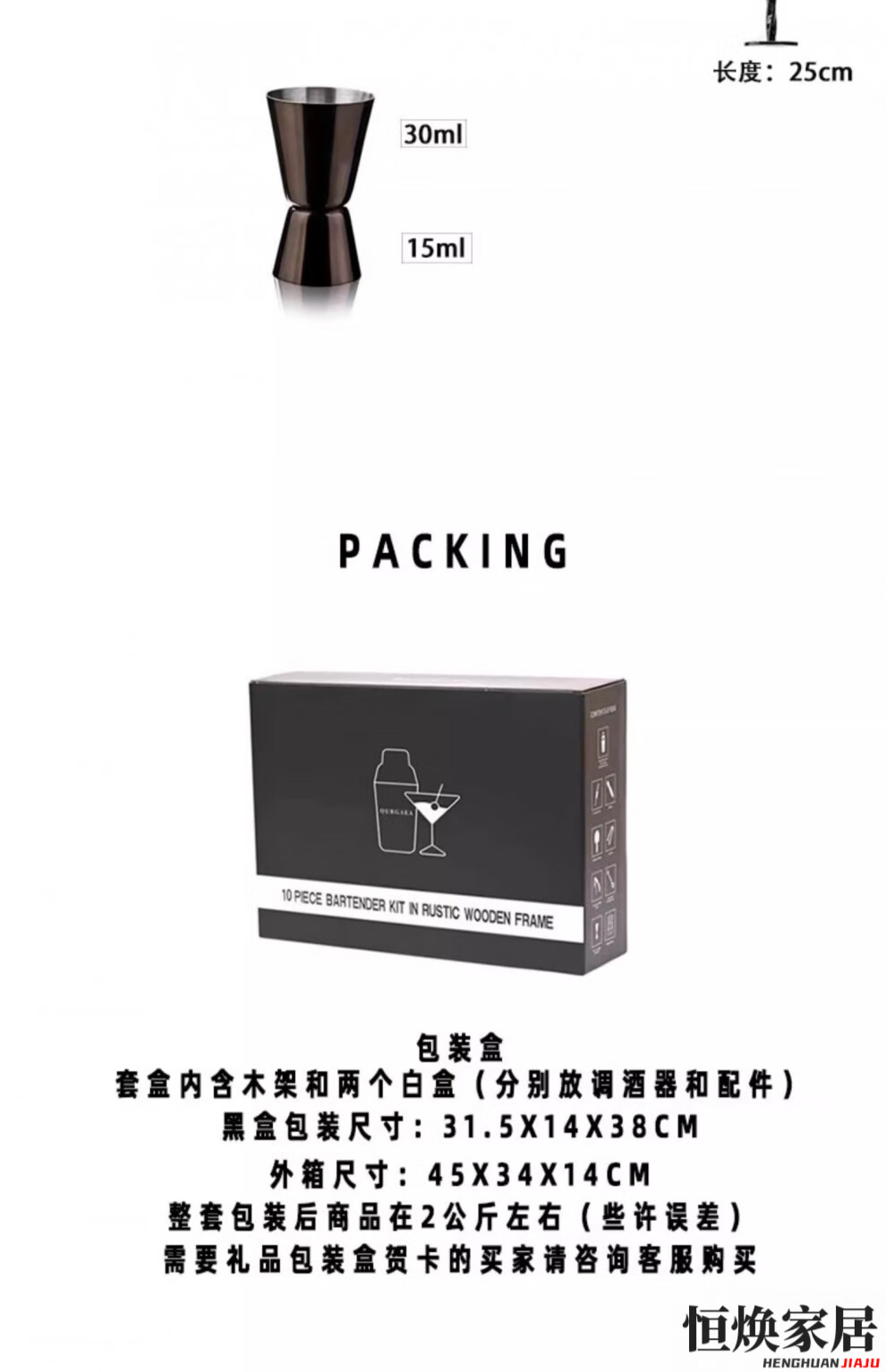 MPPMCK German imported cocktail shaker set Italian French jazz black cocktail shaker set wooden frame bar tool shaker jazz black classic