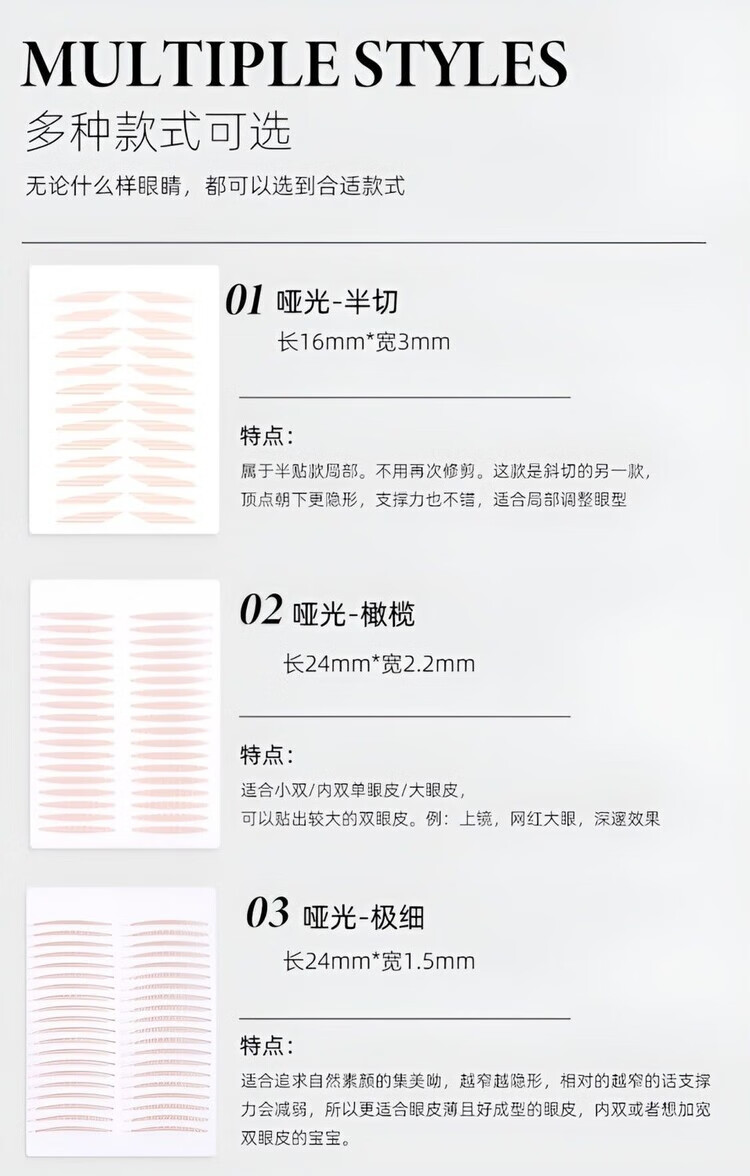 Authentic matte inner double eyelid patch natural invisible olive mixed matte swollen eyelid single eyelid width (suitable for inner double + swollen eyelids) 1 pair 3 sheets (comes with Y fork tool)