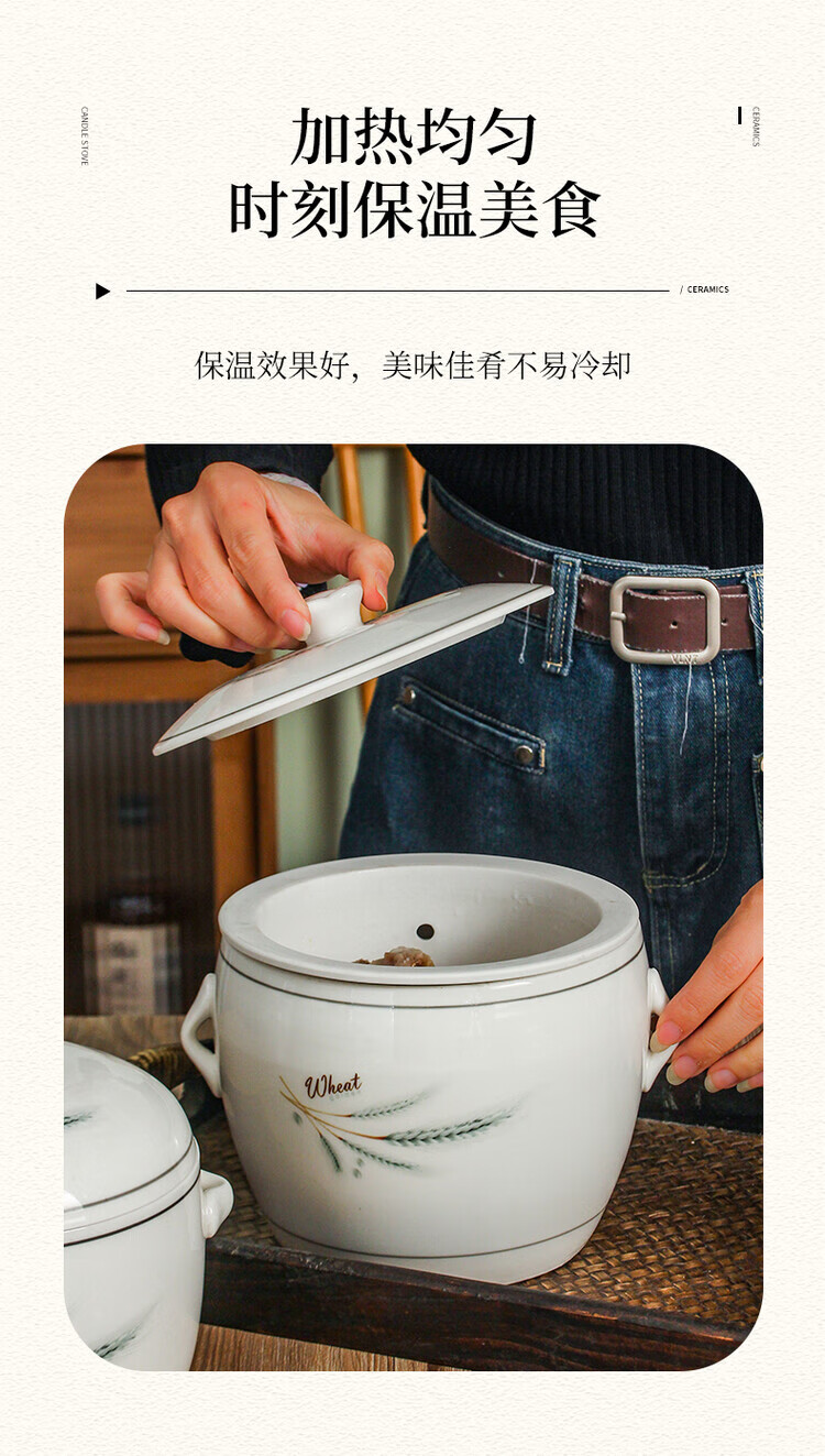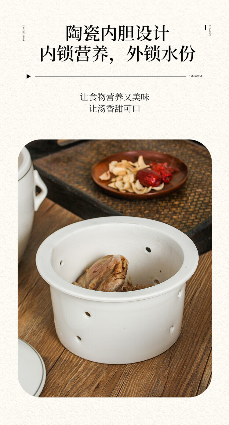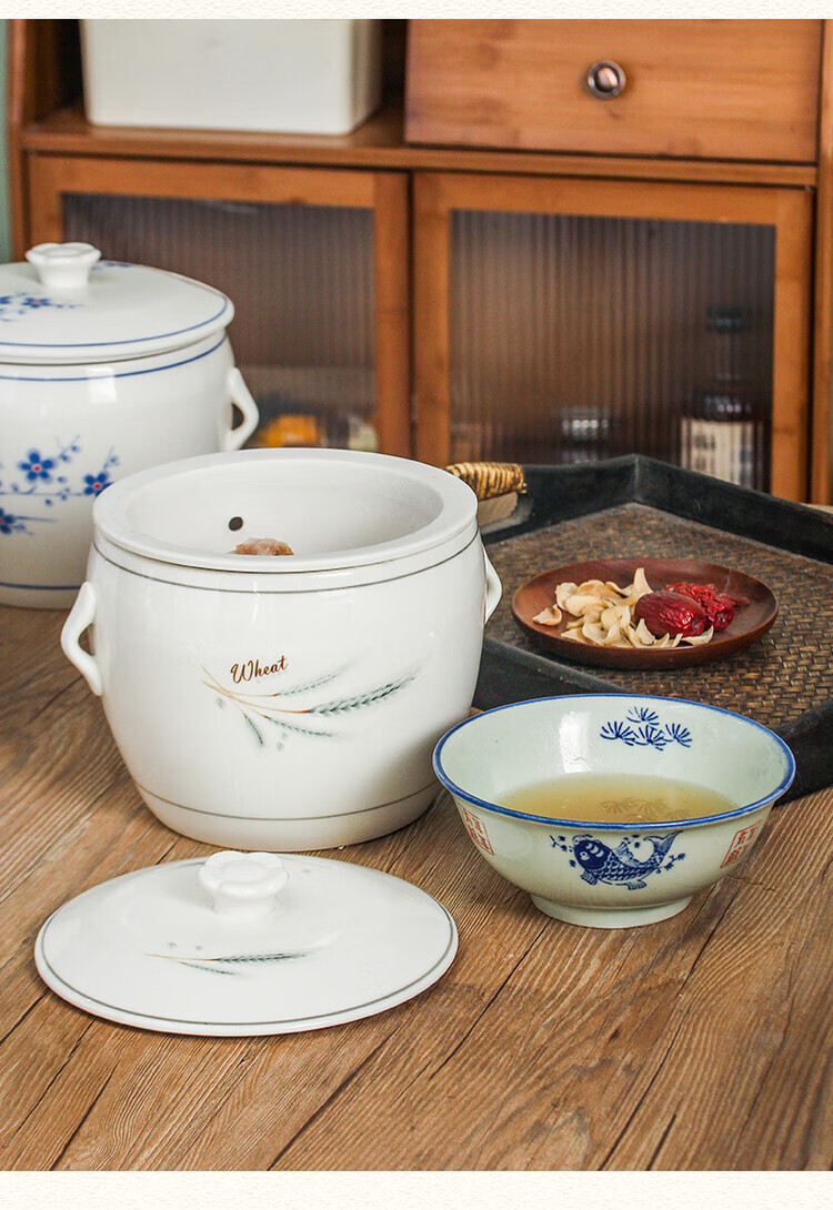 Raf core overflow soup stew pot Fujian Nan Fujian Nan overflow soup stew pot ceramic with liner household broth separation pot with holes for filter-free chicken wheat ear style with liner - 1250 ml