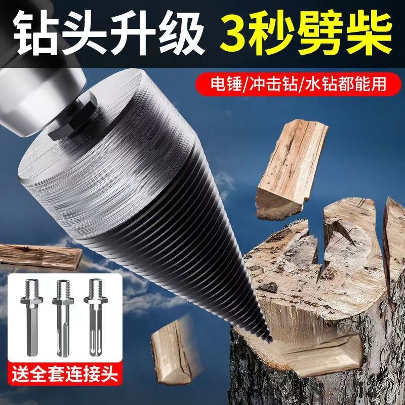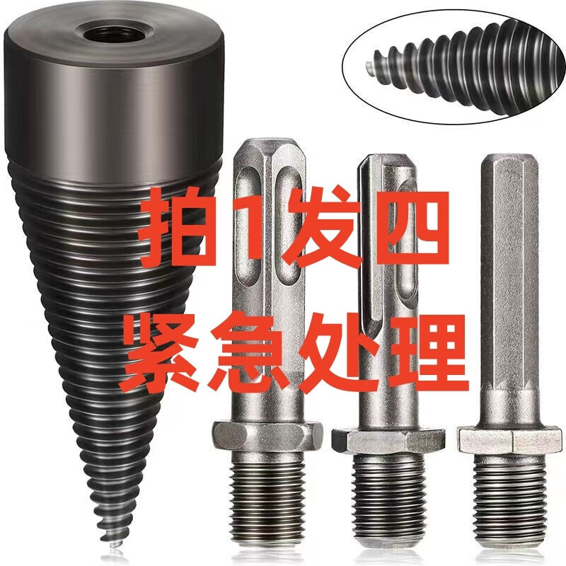 OEMG firewood splitting artifact firewood drill bit household rural small electric hammer splitting cone firewood splitter drill bit efficient impact 50 drill bits come with square handle/round handle/hexagonal