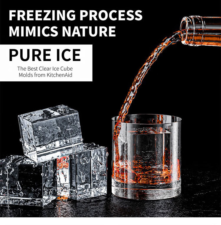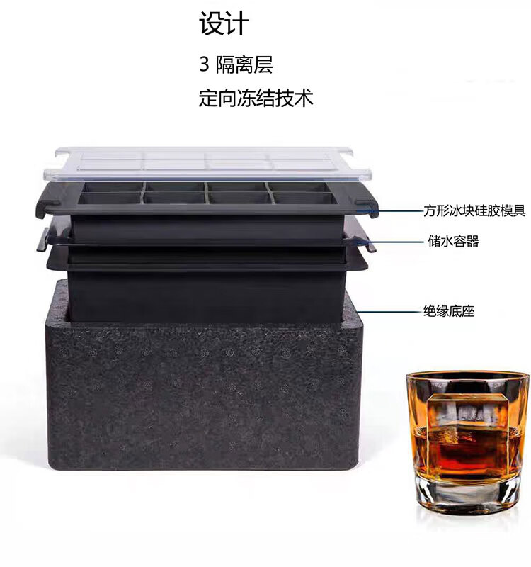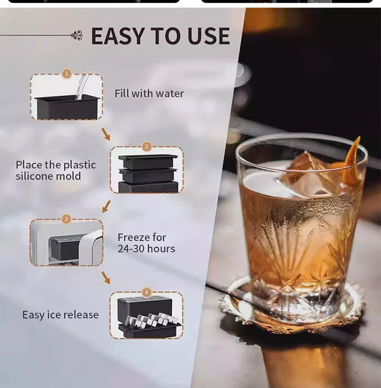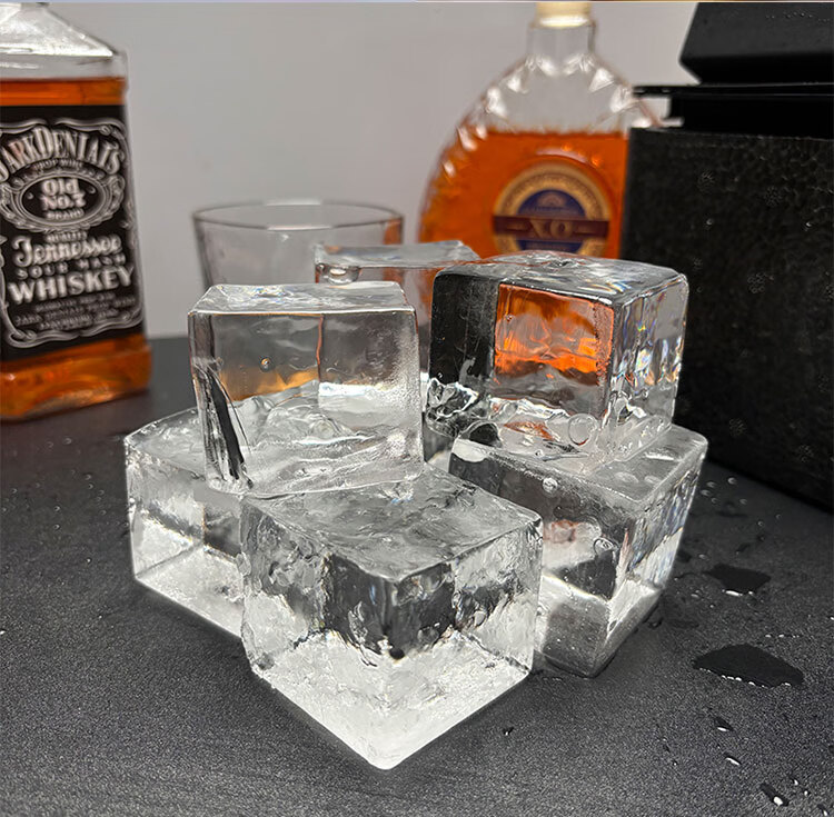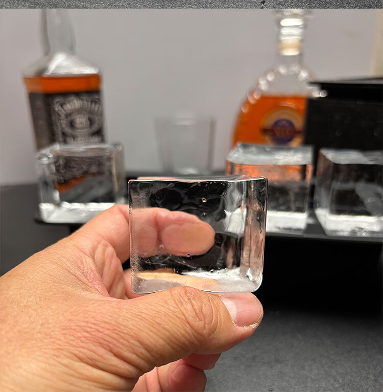 Transparent ice maker silicone large square ice ball mold 1 out of 8 cells whiskey bar bubble-free ice box 4 balls transparent (ice ball 6cm) color box packaging with ice clips
