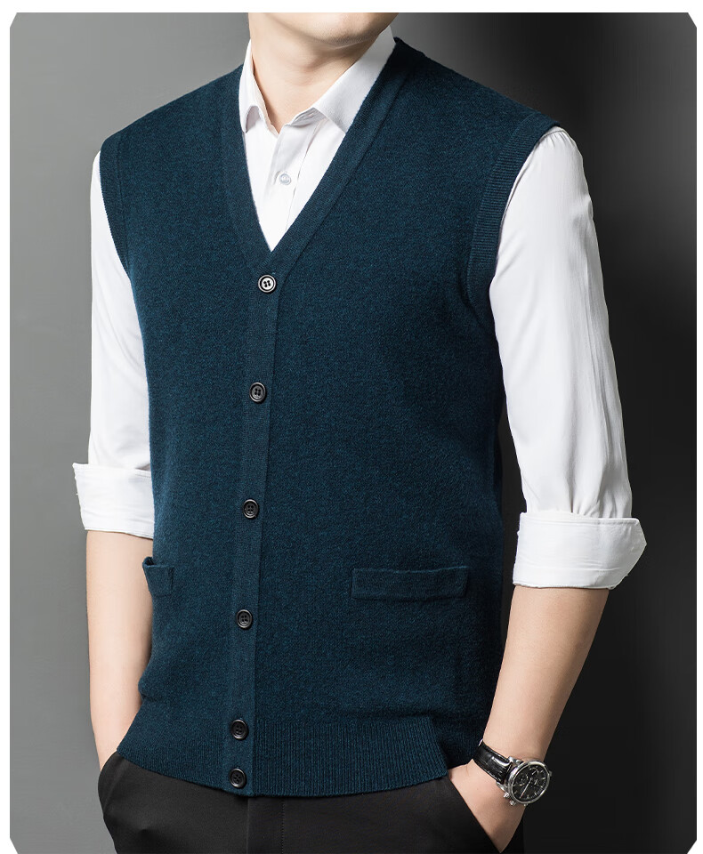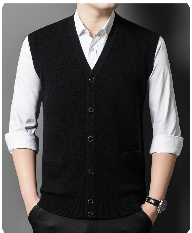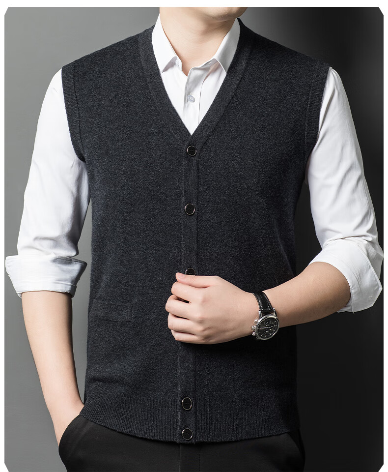International Milan Ordos 100% cashmere sweater men's sleeveless v-neck suit waistcoat casual vest cardigan sheep. Sweater dark gray Ordos/no pilling/super grade/cashmere XL 175 (recommended weight 140-160Jin Jin equals 0.5 kg)